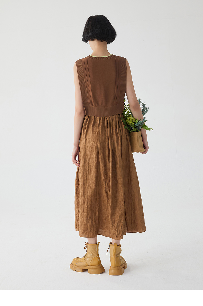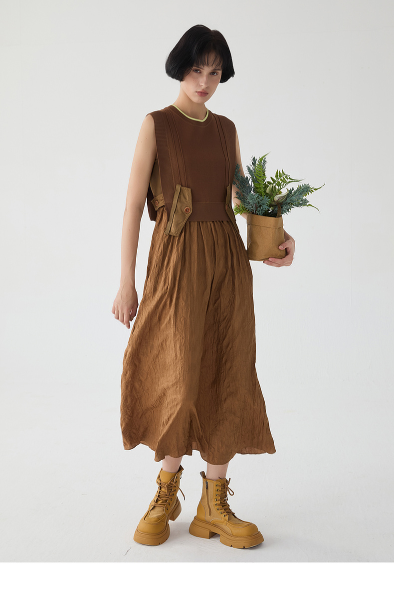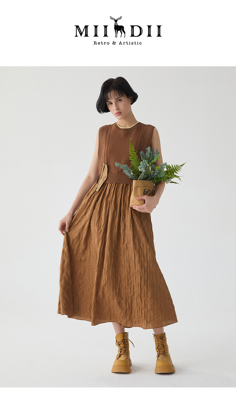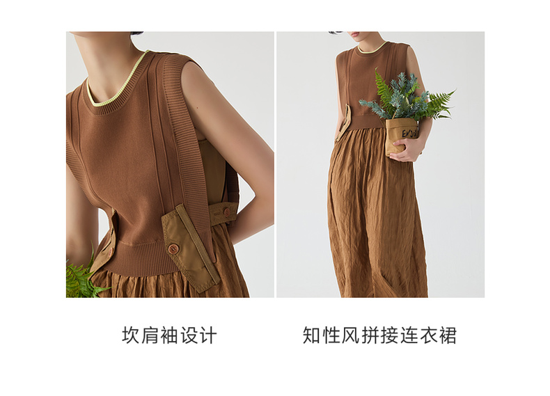 谜底毛织拼接连衣裙无袖2025春季新品文艺风设计感长裙251ML0086