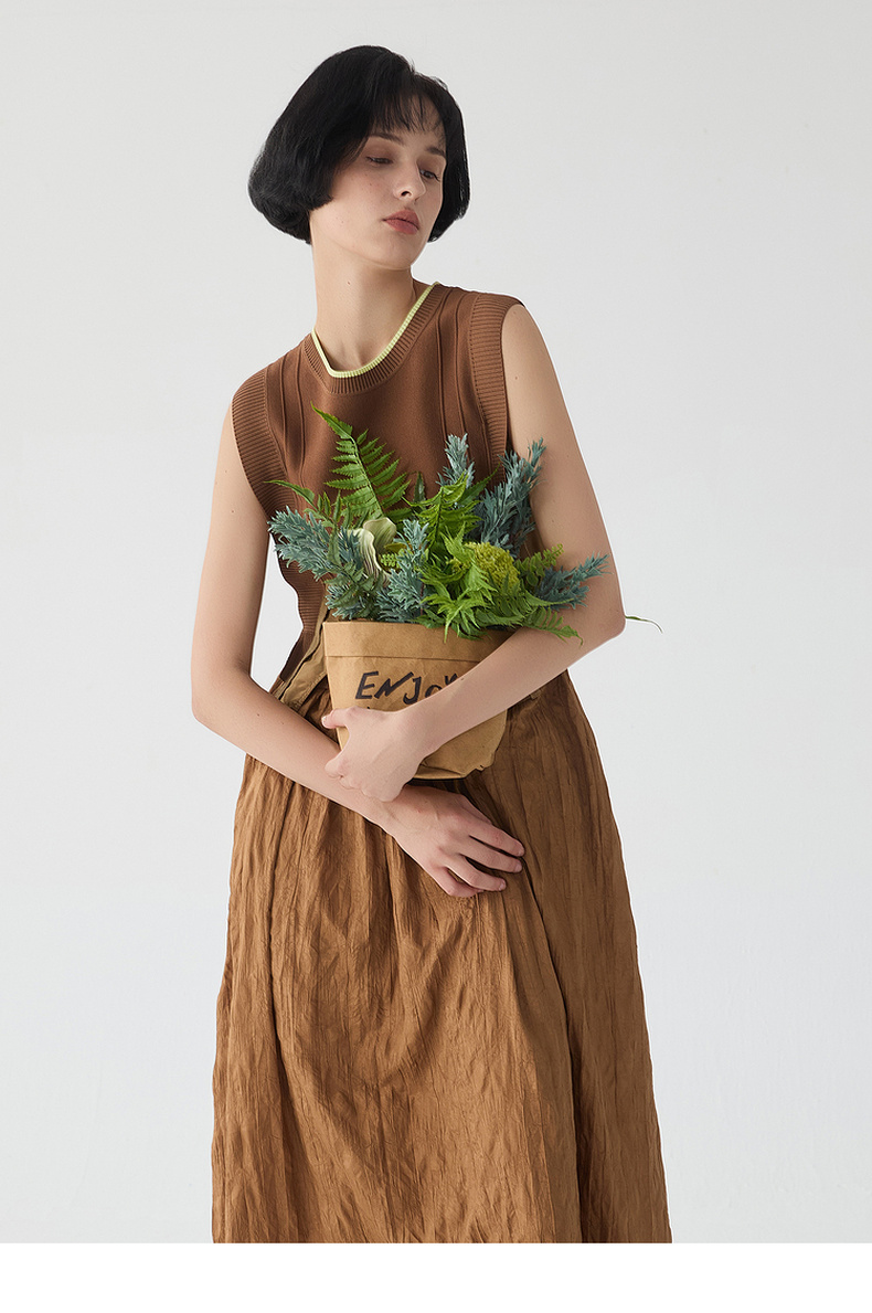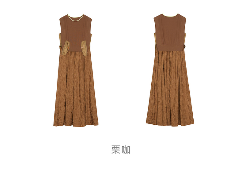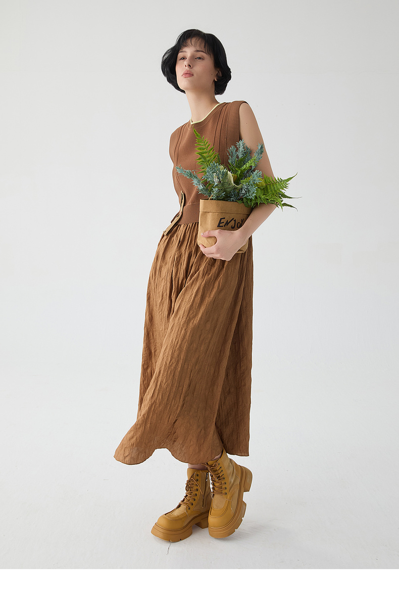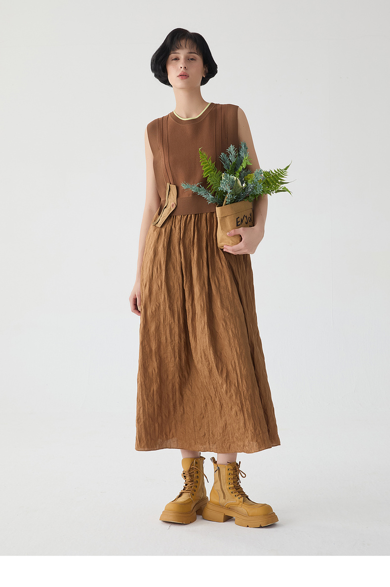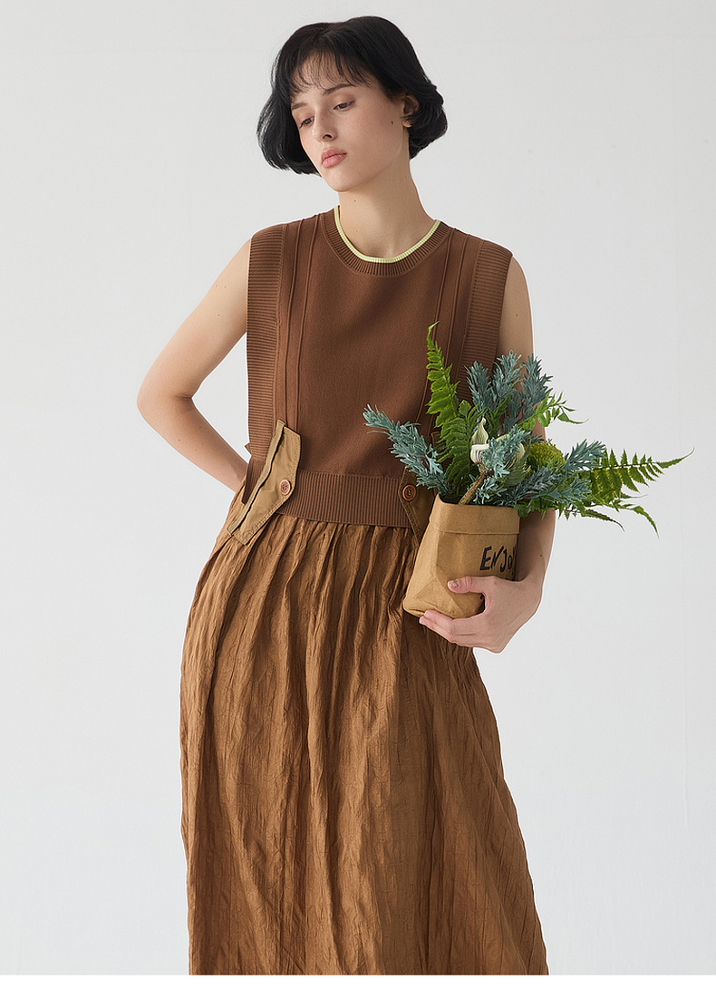 谜底毛织拼接连衣裙无袖2025春季新品文艺风设计感长裙251ML0086