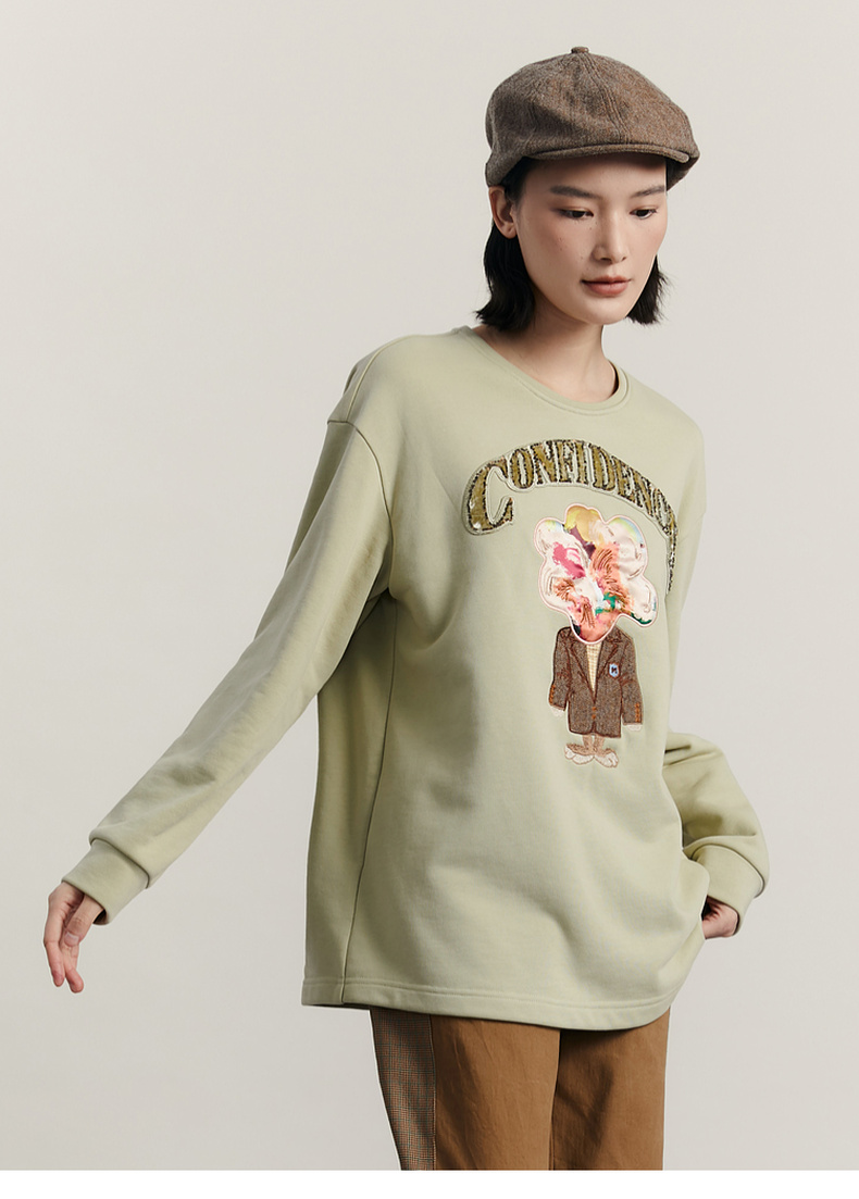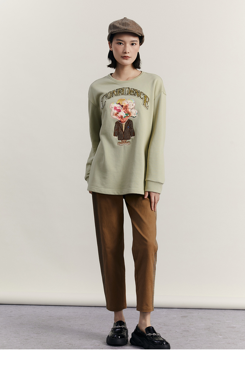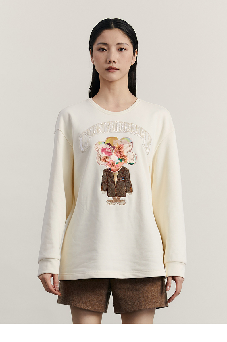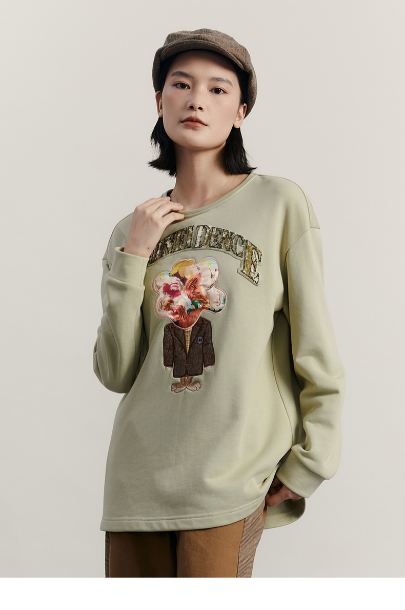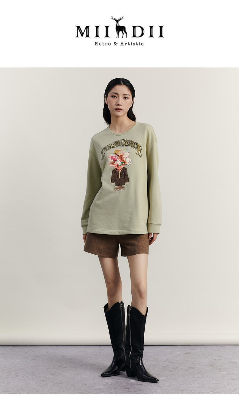 谜底中长款卫衣女2023冬新品复古特色绣花圆领宽松套头234MV1550
