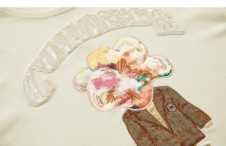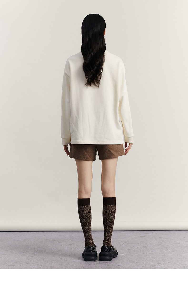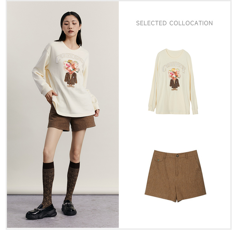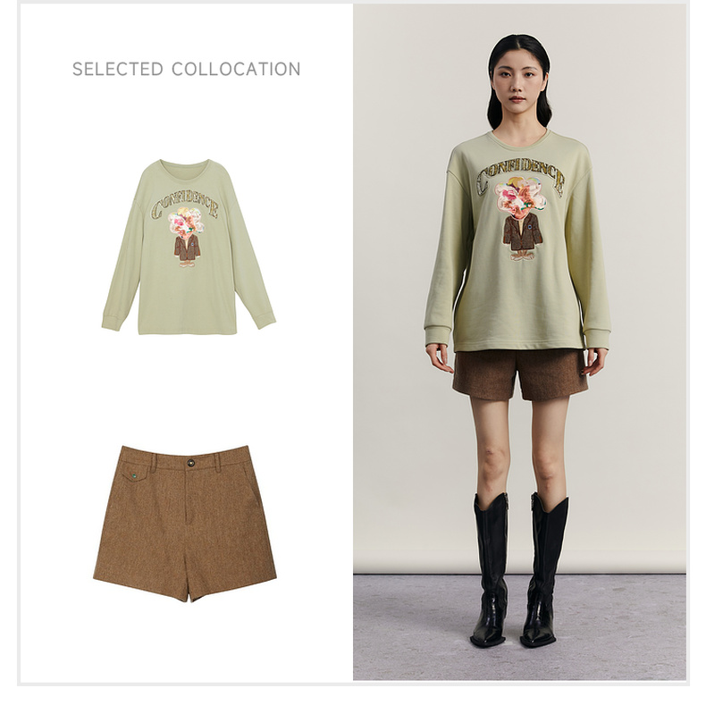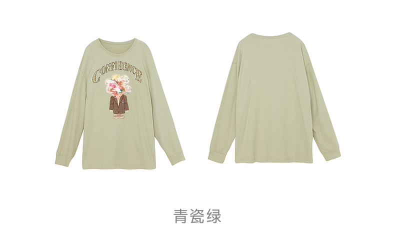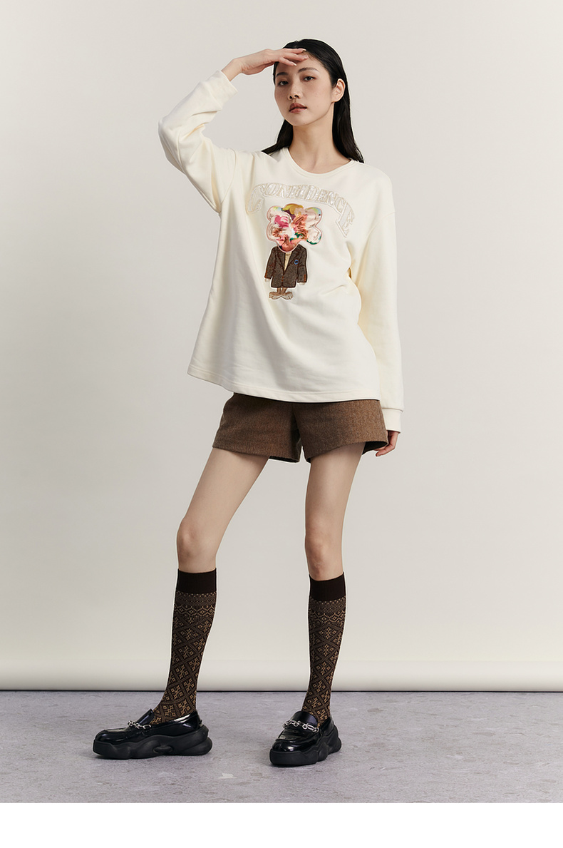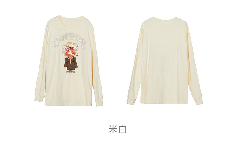 谜底中长款卫衣女2023冬新品复古特色绣花圆领宽松套头234MV1550
