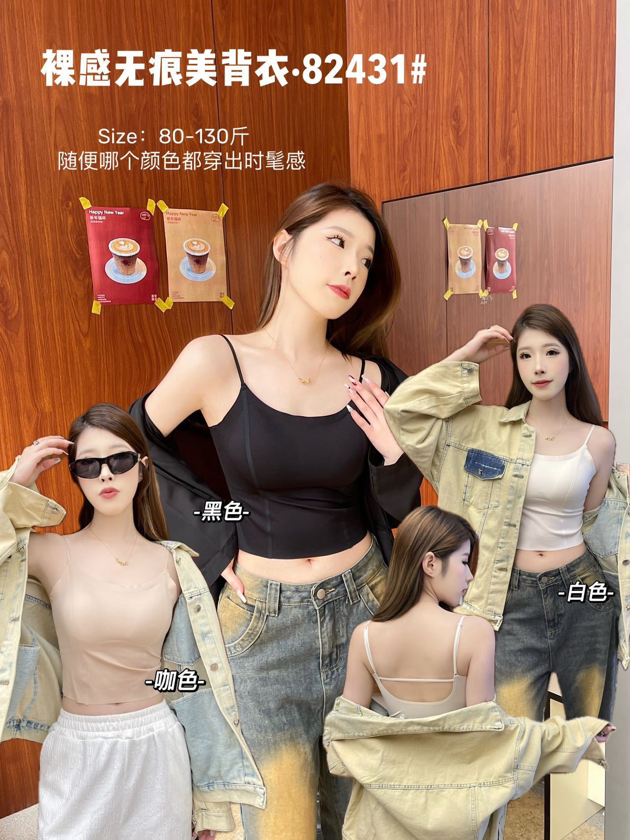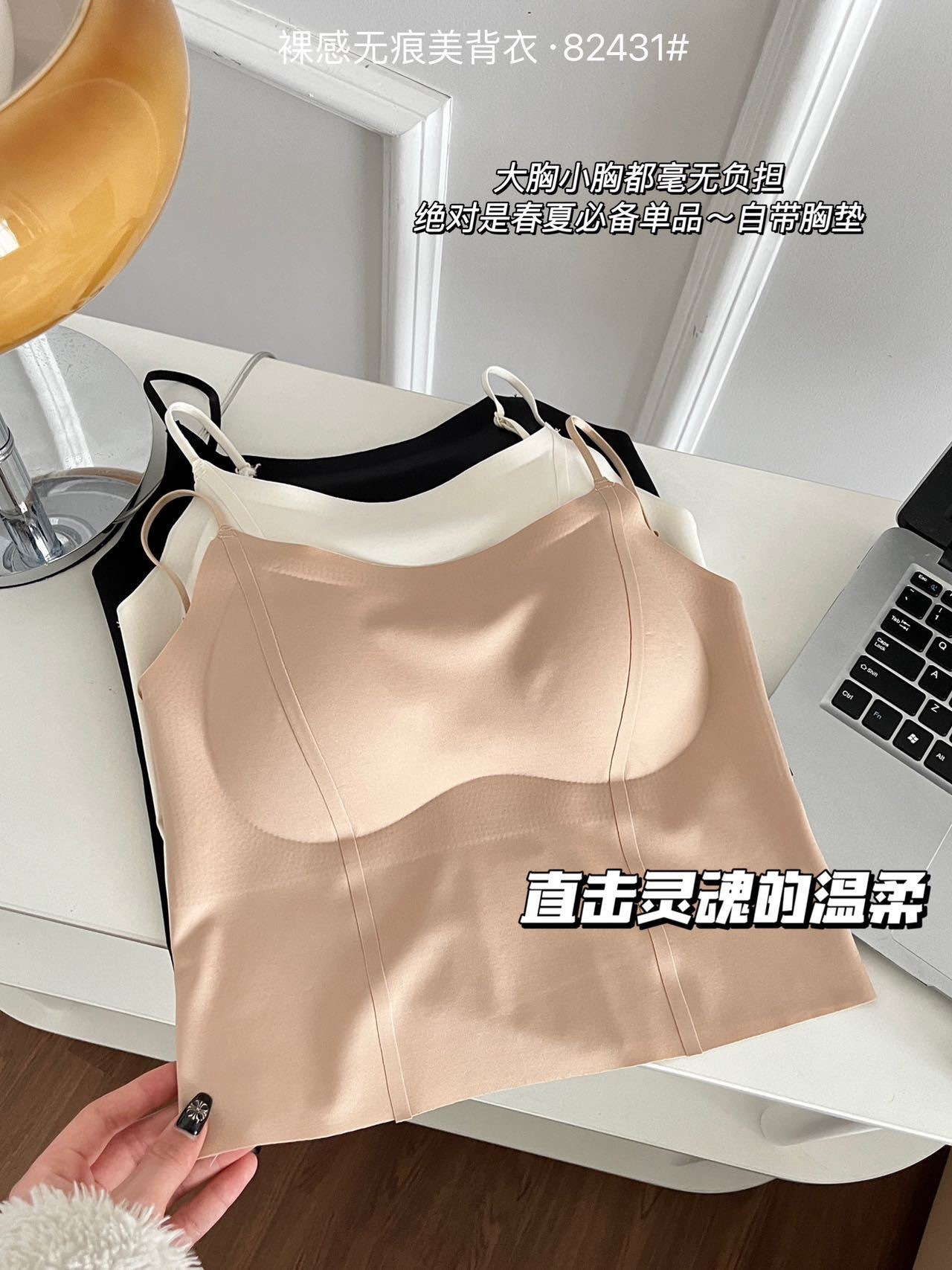 买一送一吊带背心固定带胸垫美背装文胸可外穿辣妹无痕内搭上衣冰丝女内衣一体式内衣小红书同款