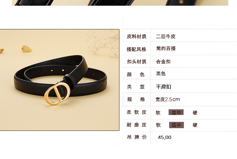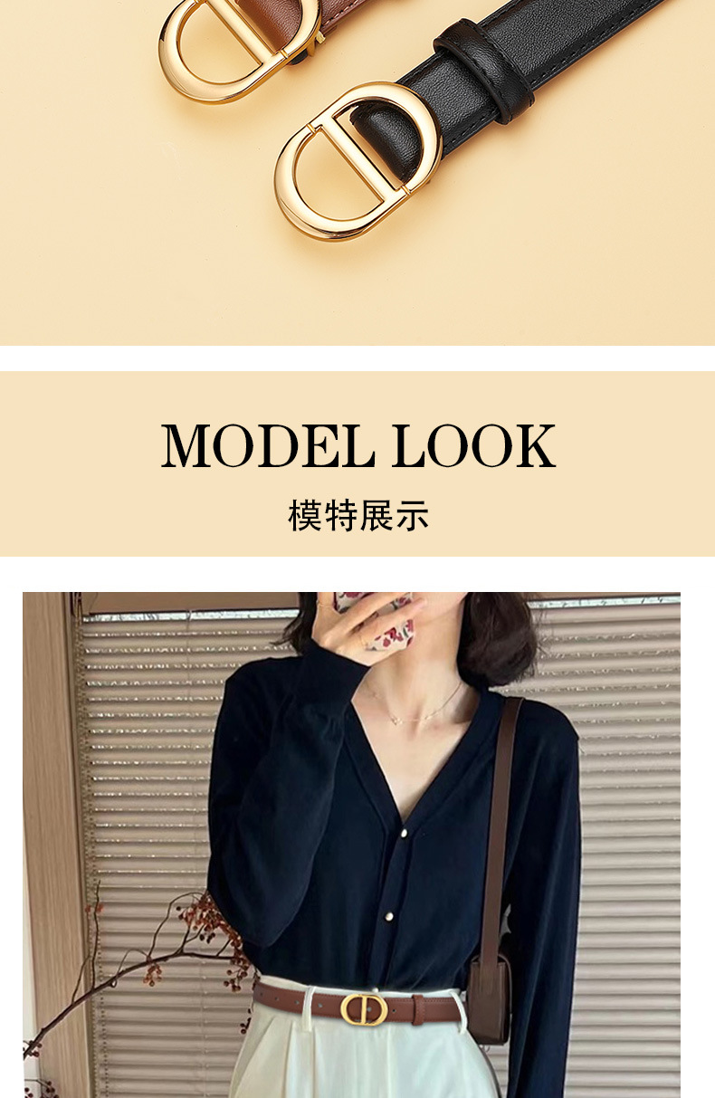 2025新款女士皮带时尚简约百搭腰带女装饰ins风真皮牛仔裤带黑色