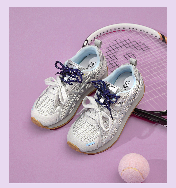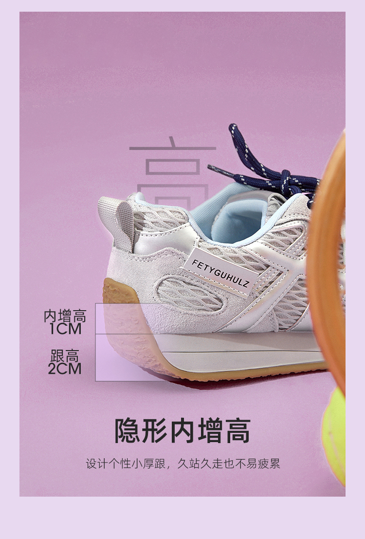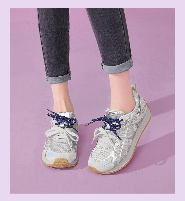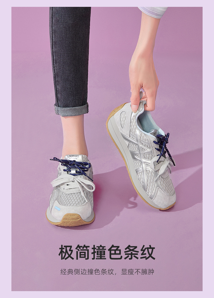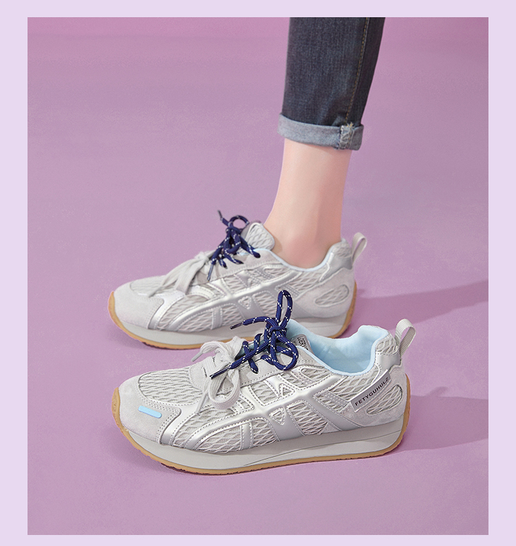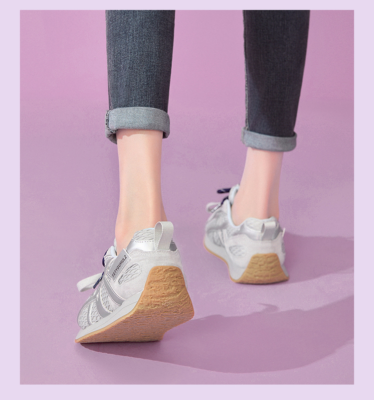 西遇德训鞋女新款秋季百搭透气网面慢跑休闲鞋厚底银色运动鞋V1656989