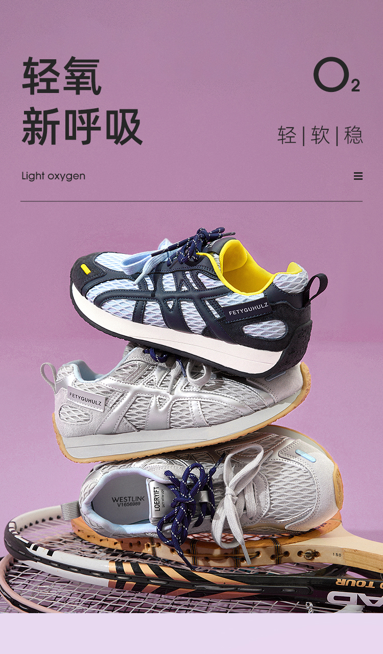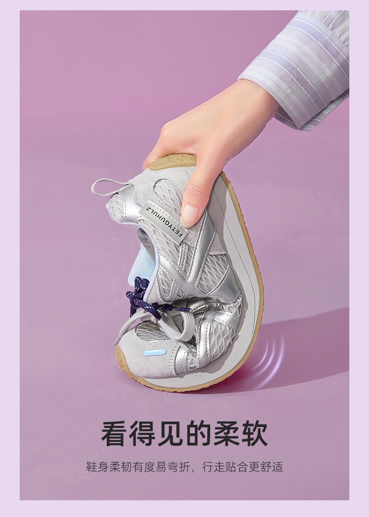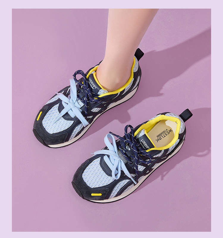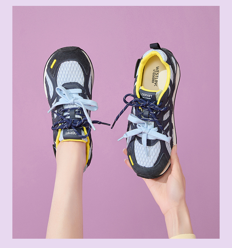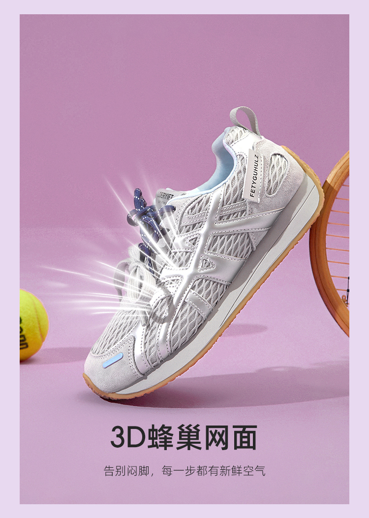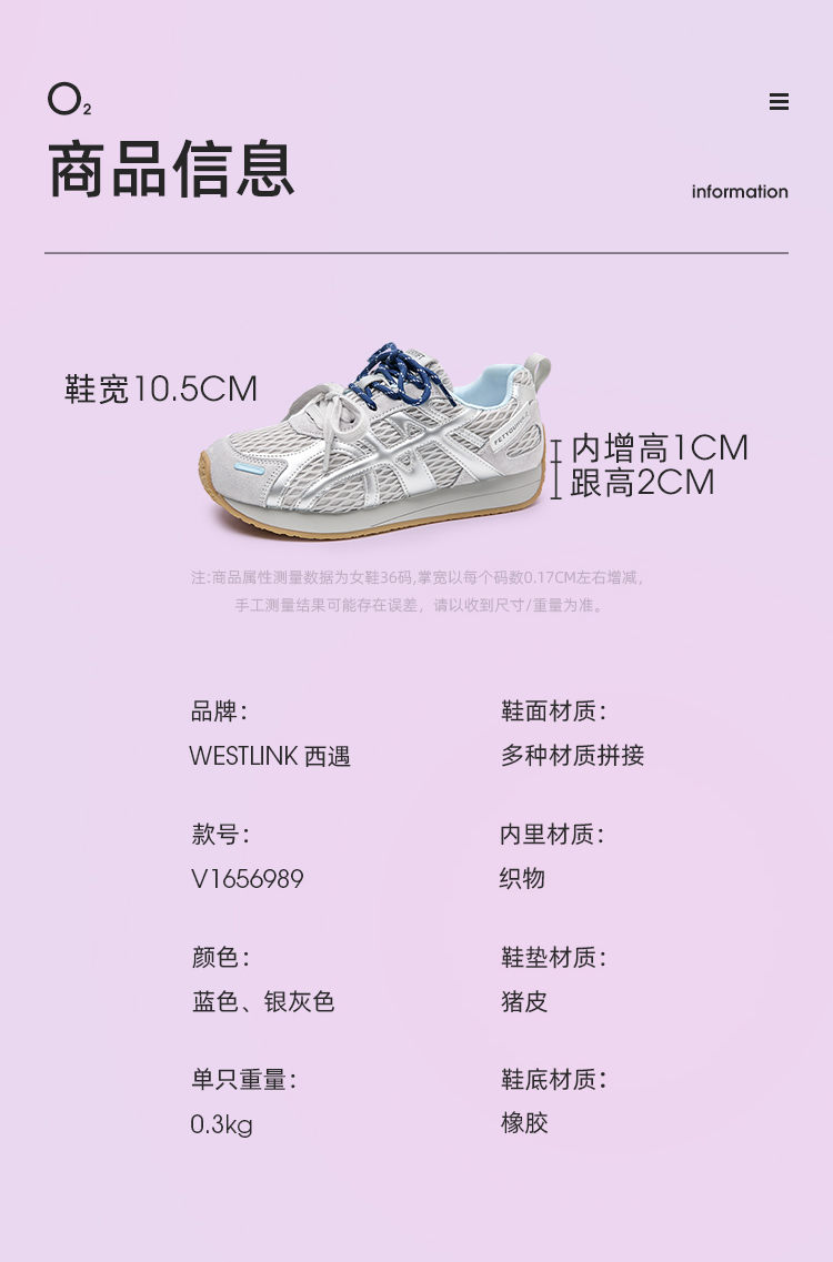 西遇德训鞋女新款秋季百搭透气网面慢跑休闲鞋厚底银色运动鞋V1656989