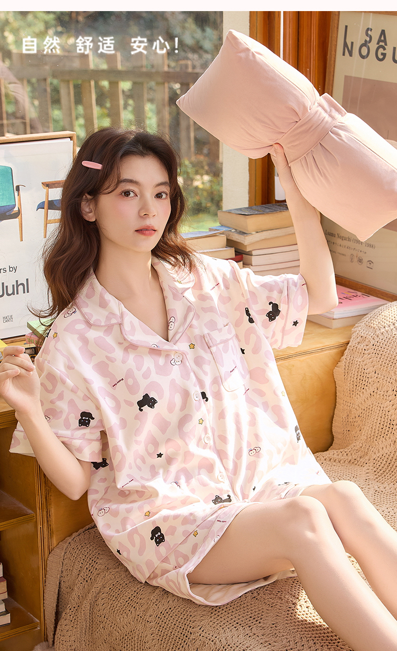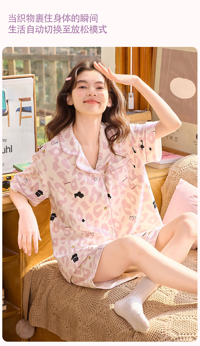 【初夏焕新】自然醒软眠女士家居服100%棉短袖开衫睡衣QH