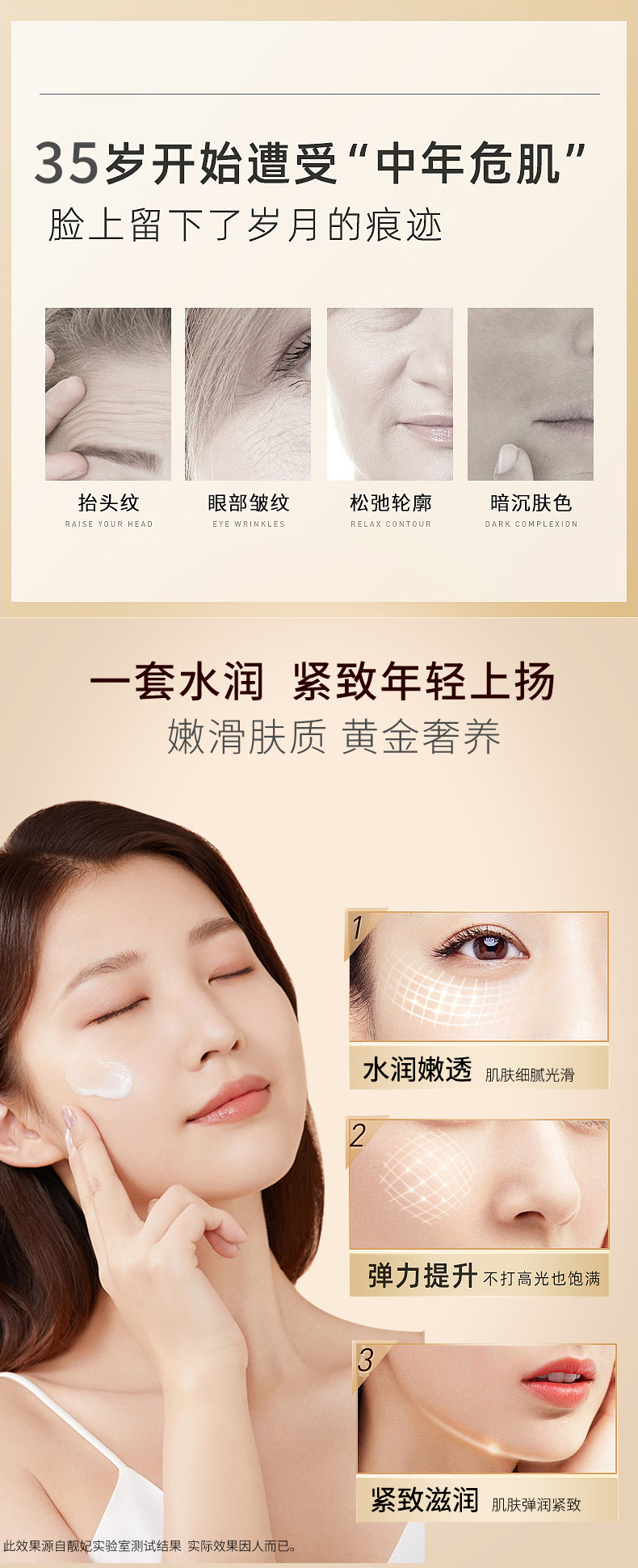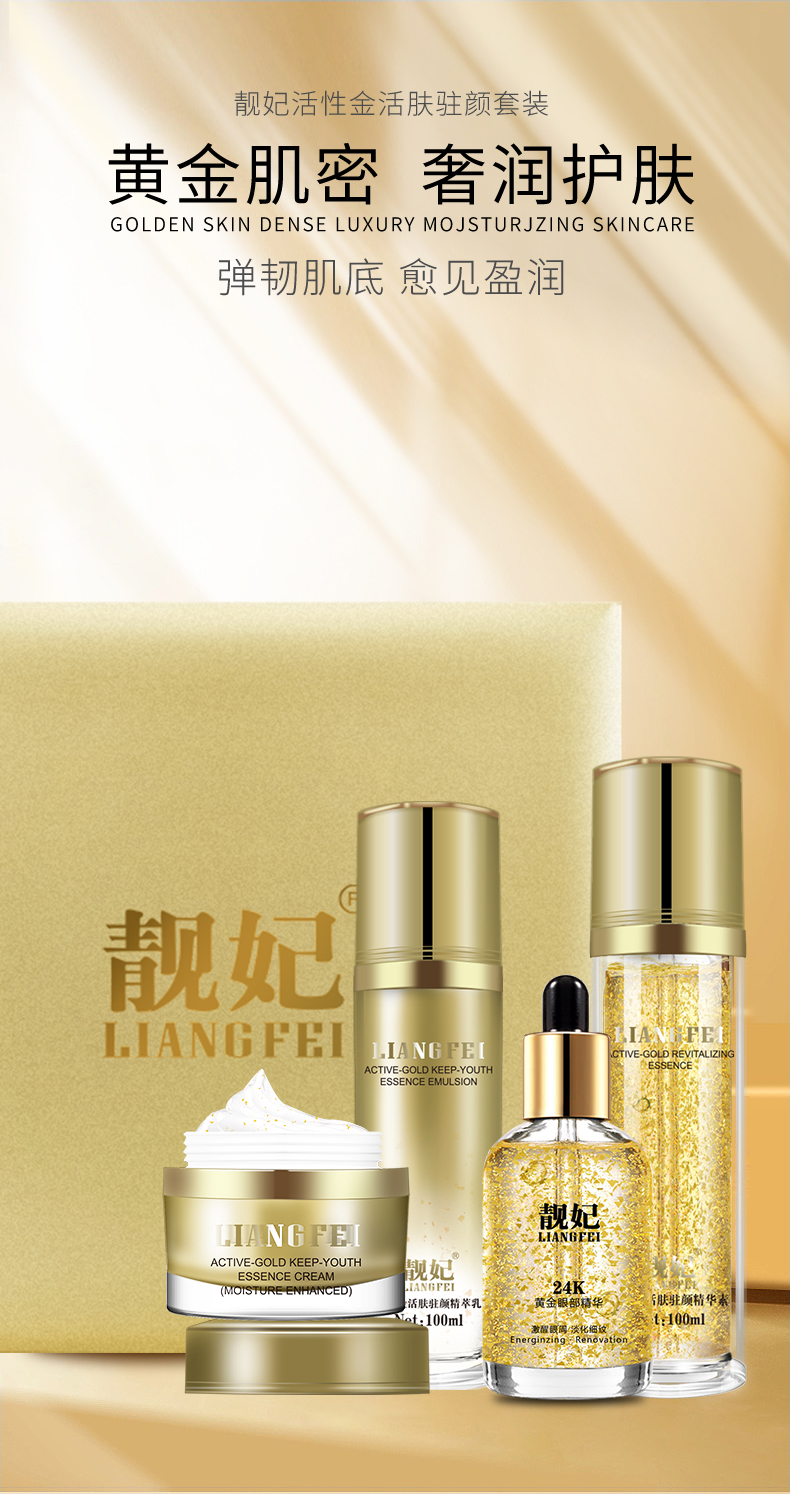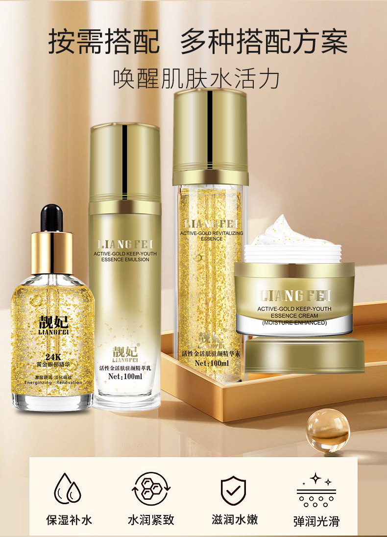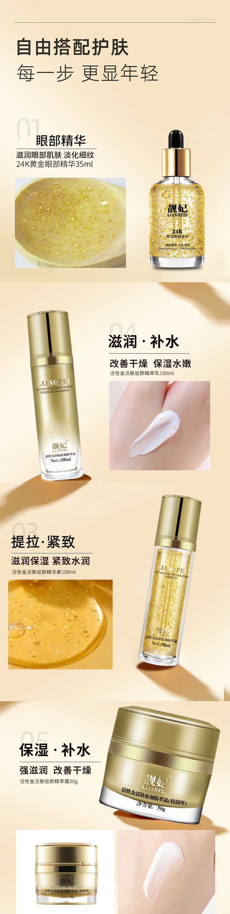 【自营】靓妃活性金水润紧致套装 活肤驻颜精粹乳 活肤驻颜精华素 24K黄金塑颜眼部精华 活性金精粹霜