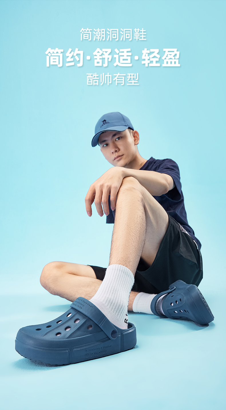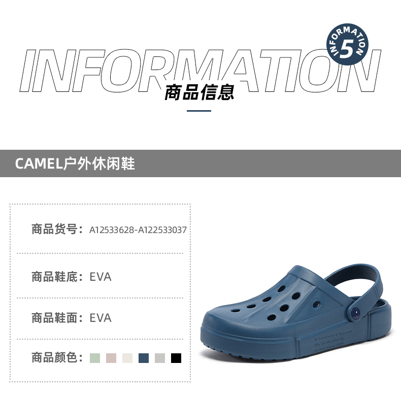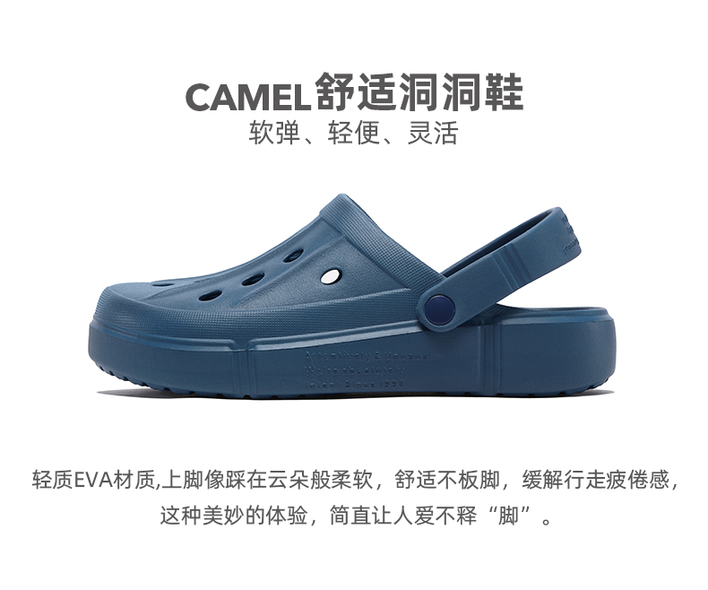 骆驼洞洞鞋夏季沙滩鞋女士2024新款软底防滑透气户外包头凉拖鞋男 A12533628_A122533037