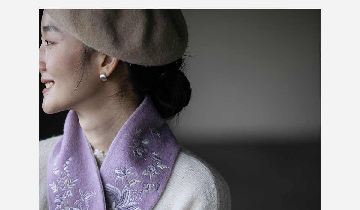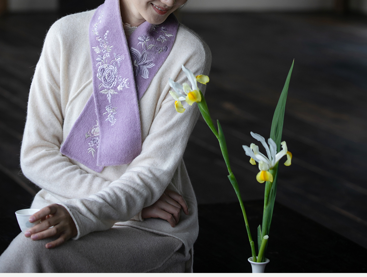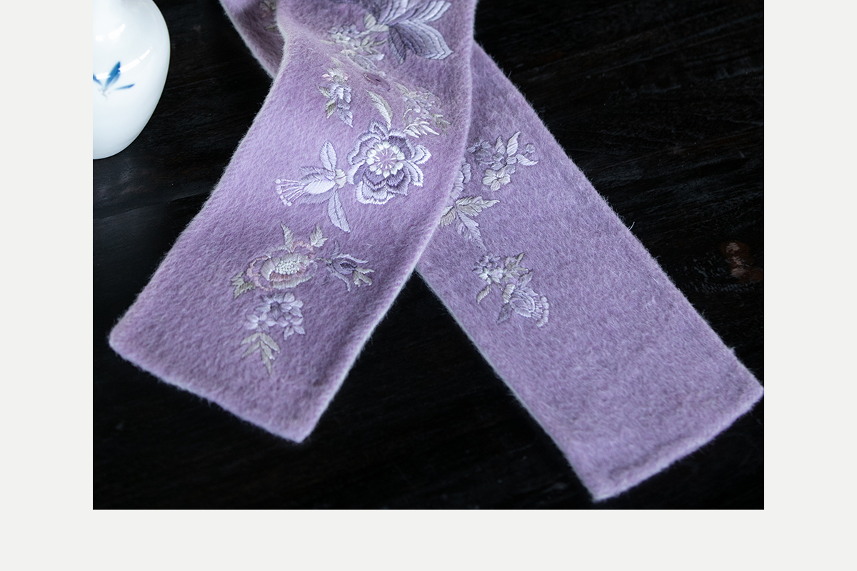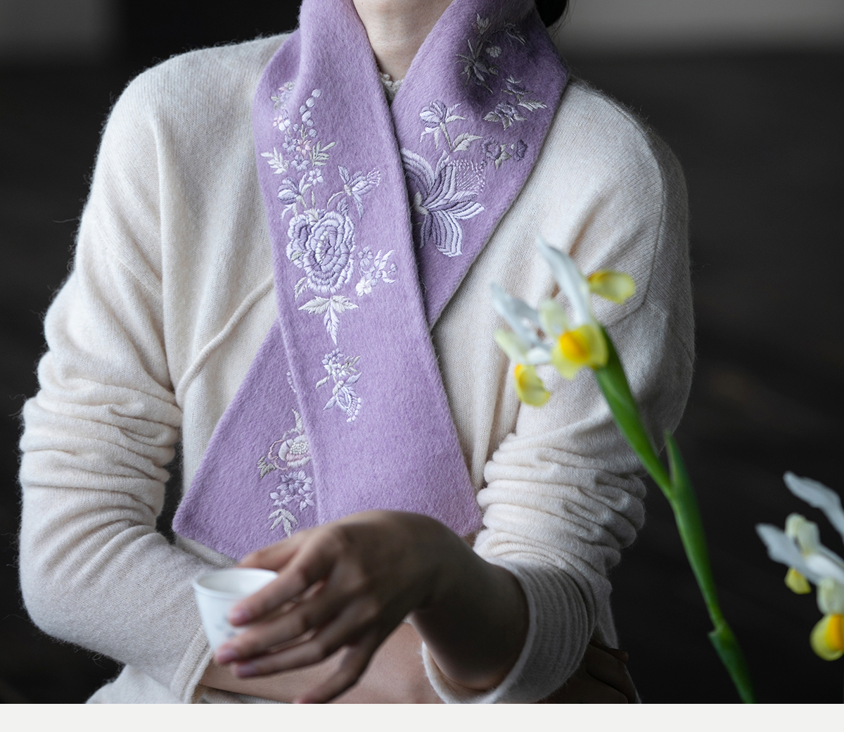 牧衣游 手工刺绣澳毛毛呢围巾双面呢保暖 花至【不支持会员折】