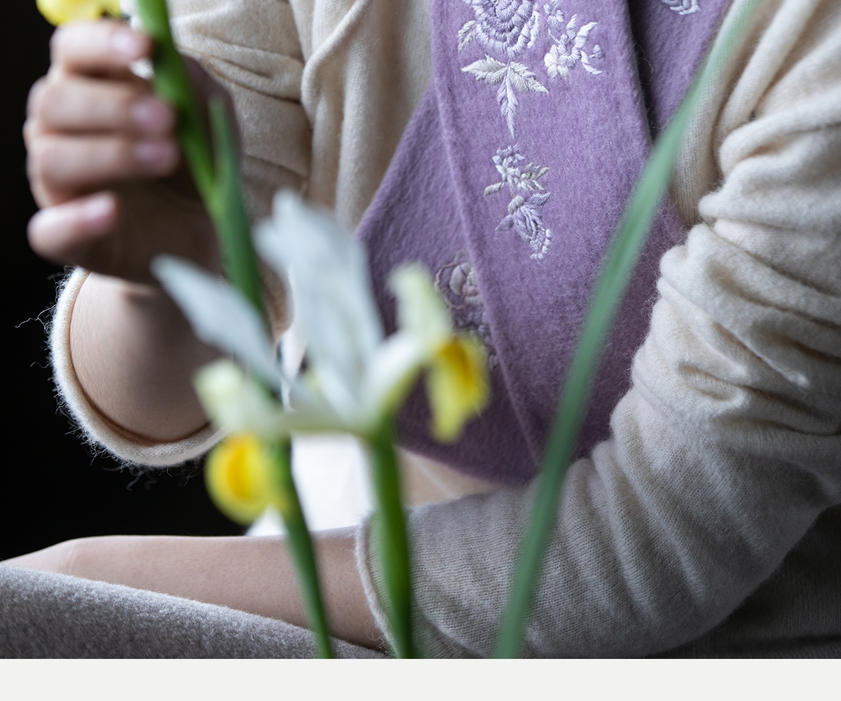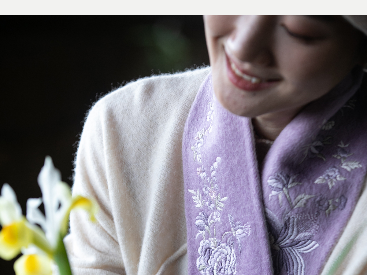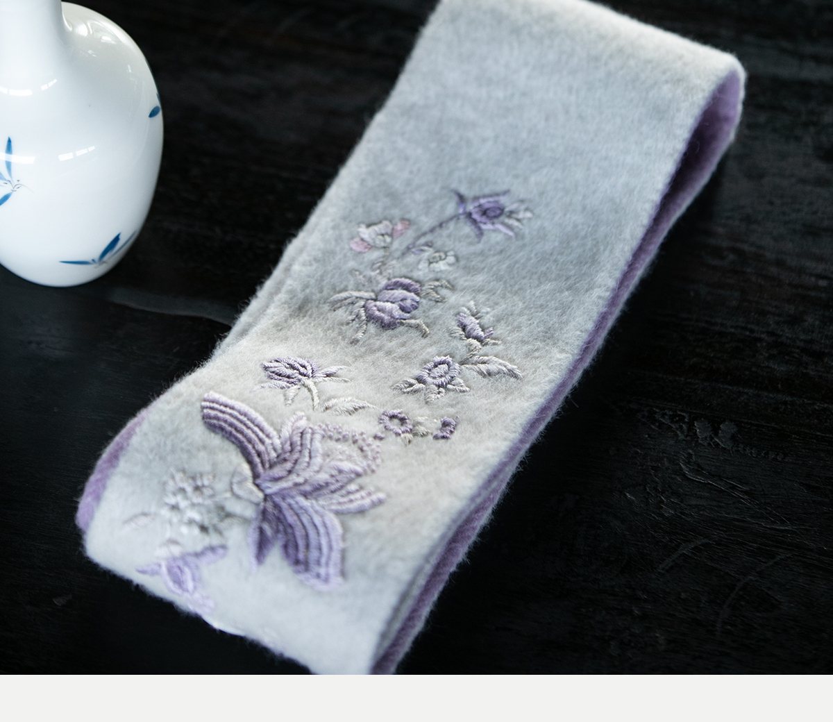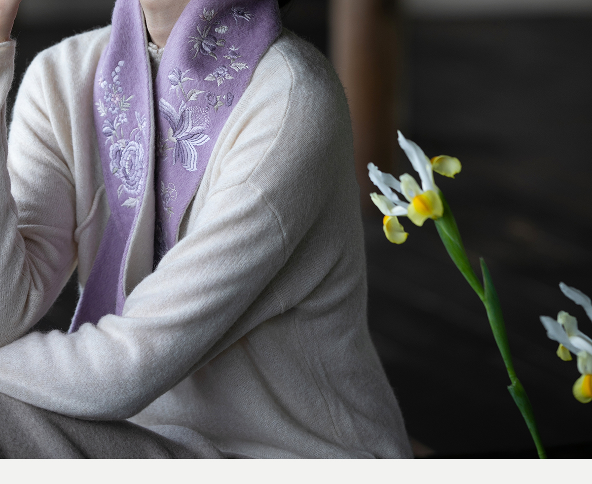 牧衣游 手工刺绣澳毛毛呢围巾双面呢保暖 花至【不支持会员折】