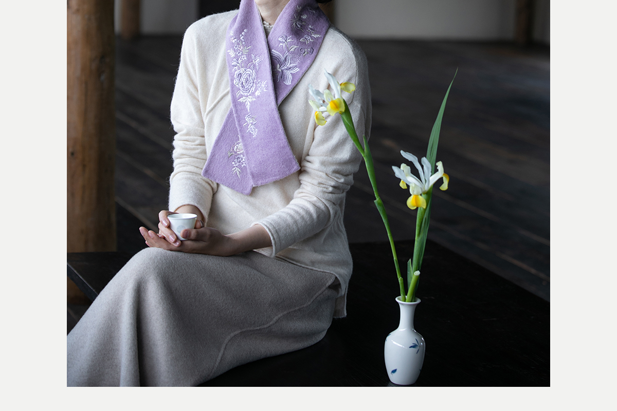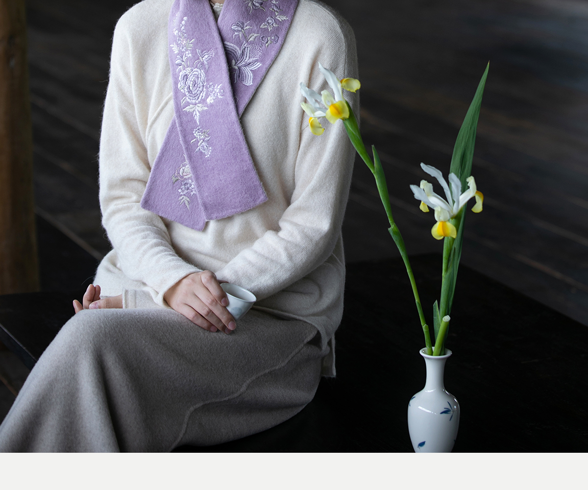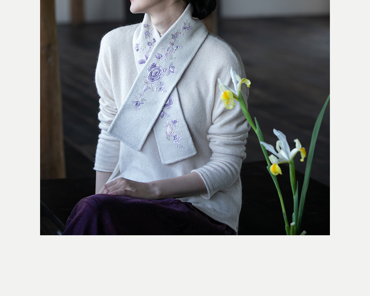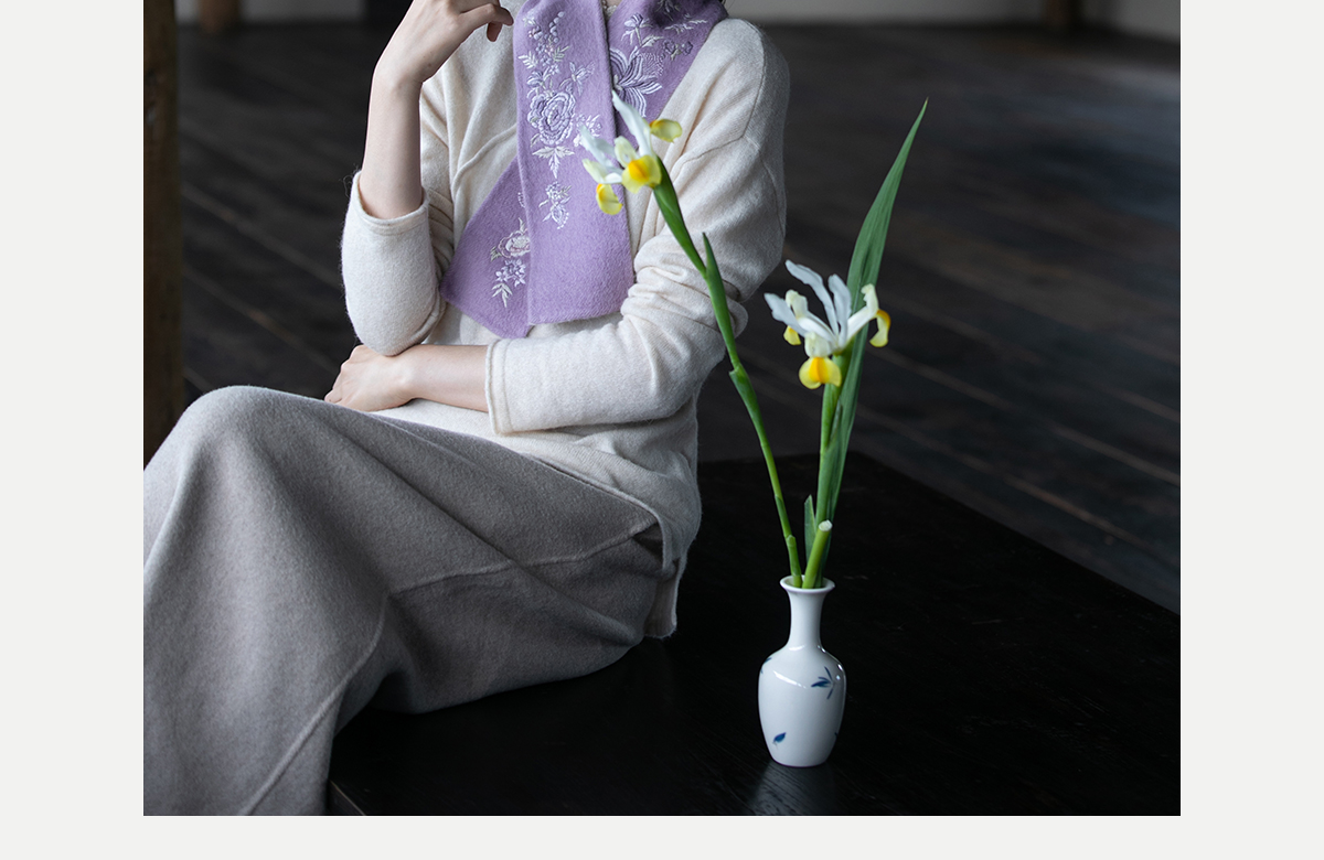 牧衣游 手工刺绣澳毛毛呢围巾双面呢保暖 花至【不支持会员折】