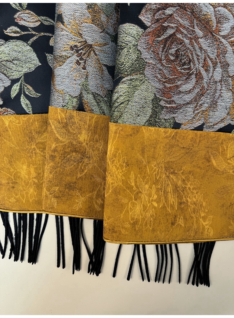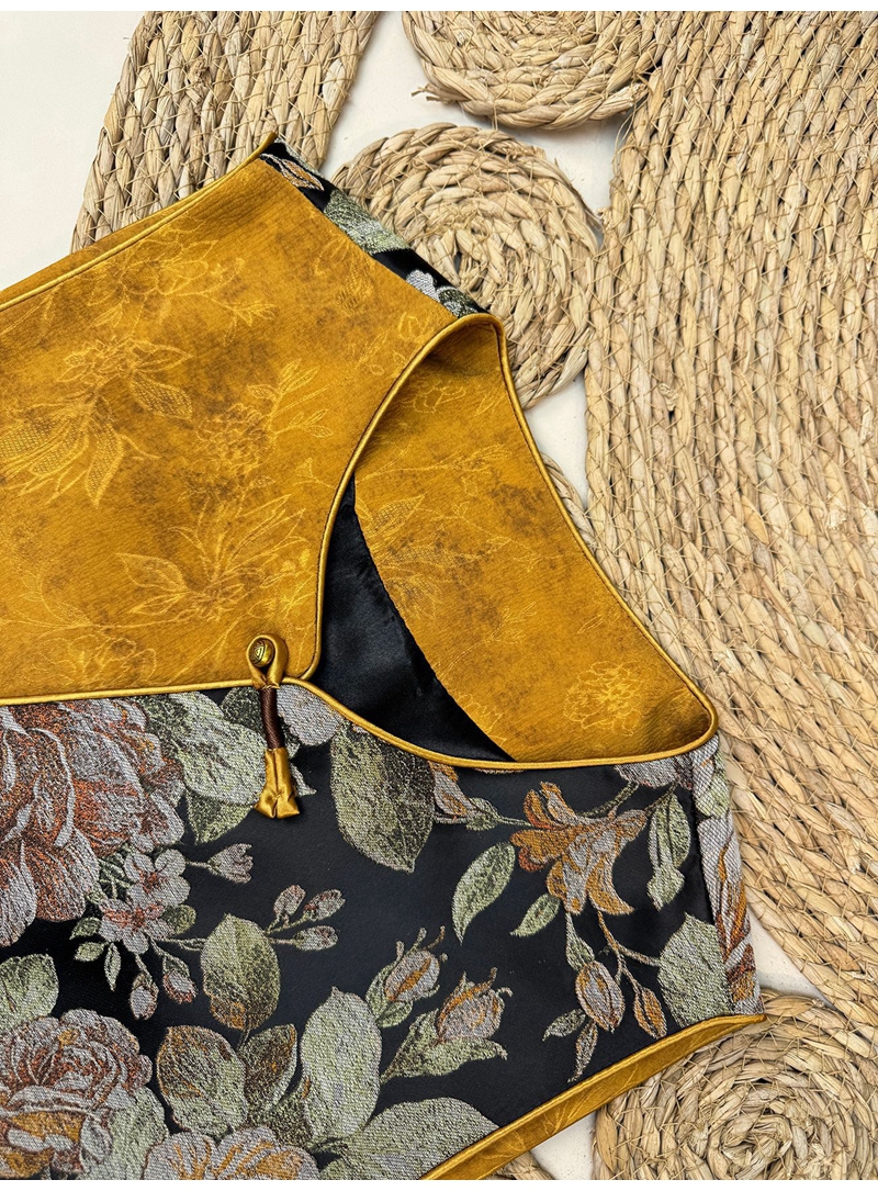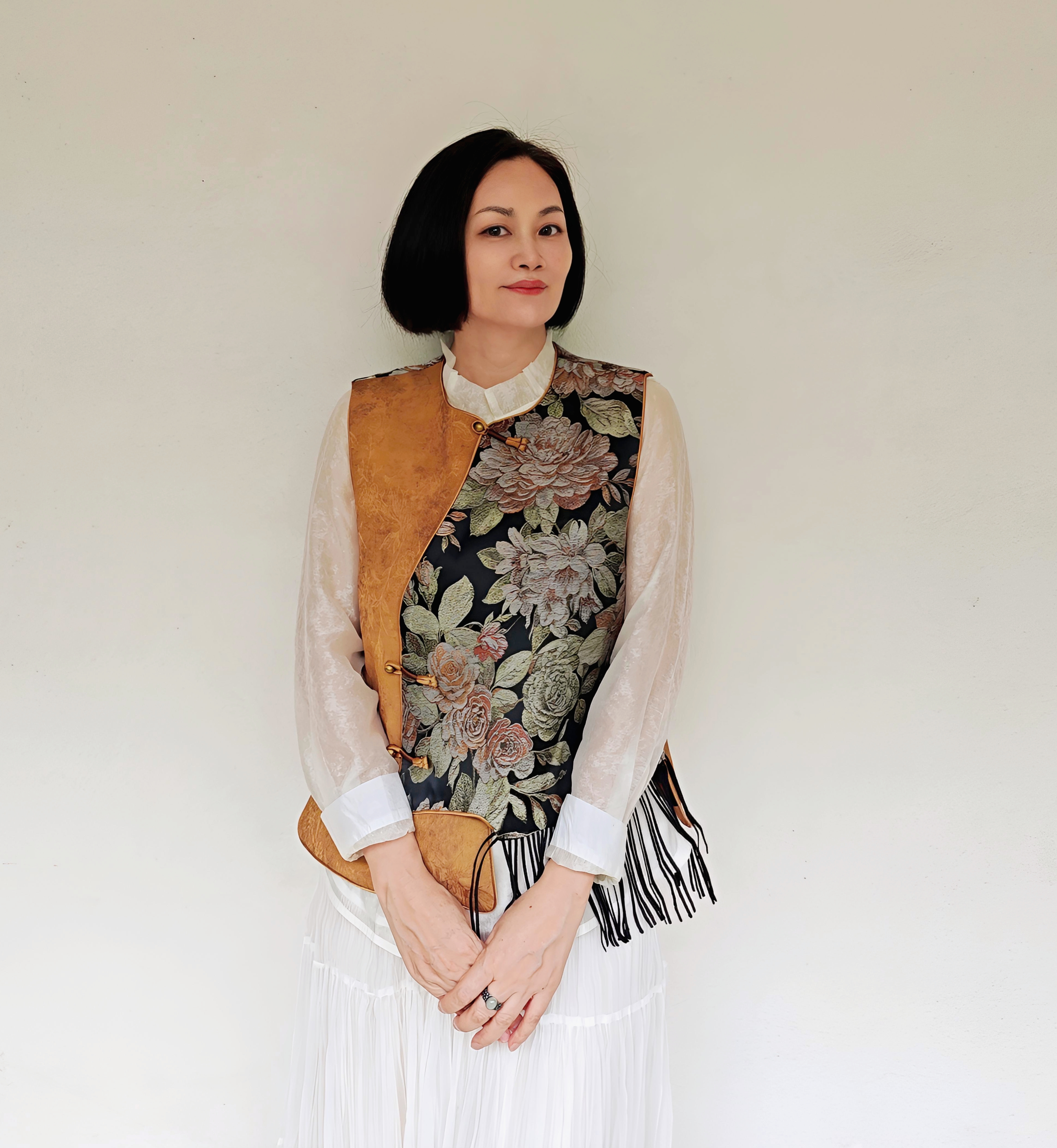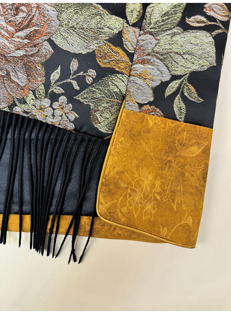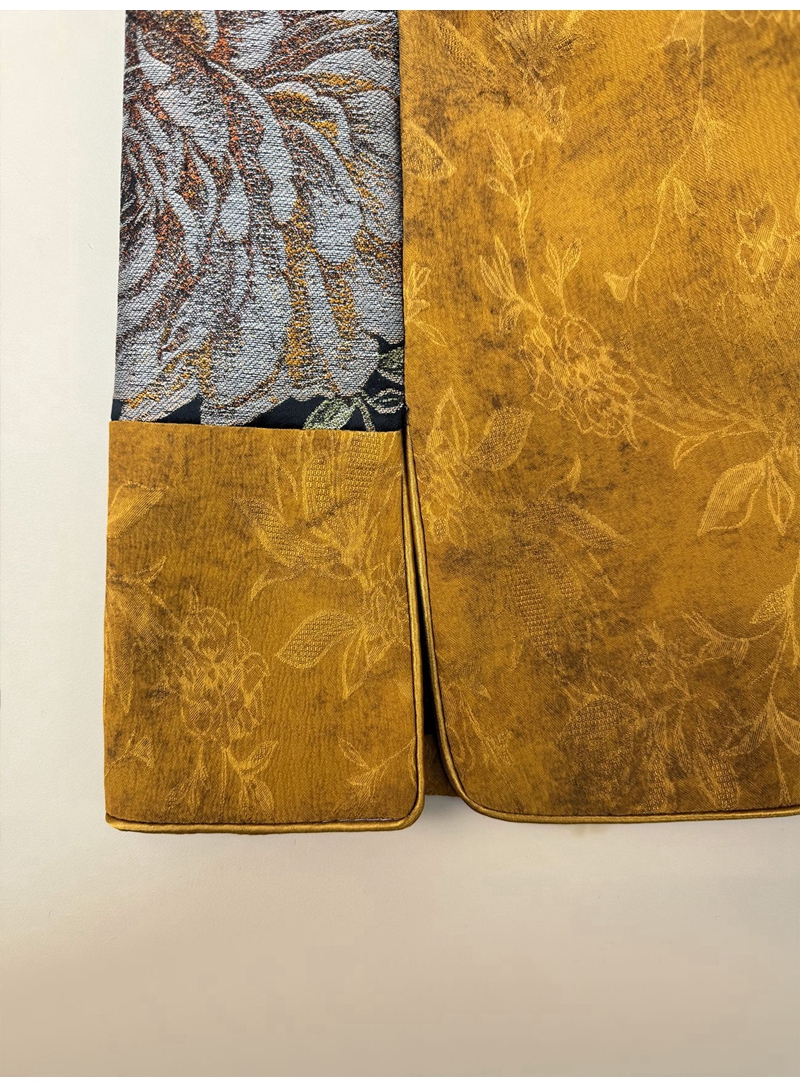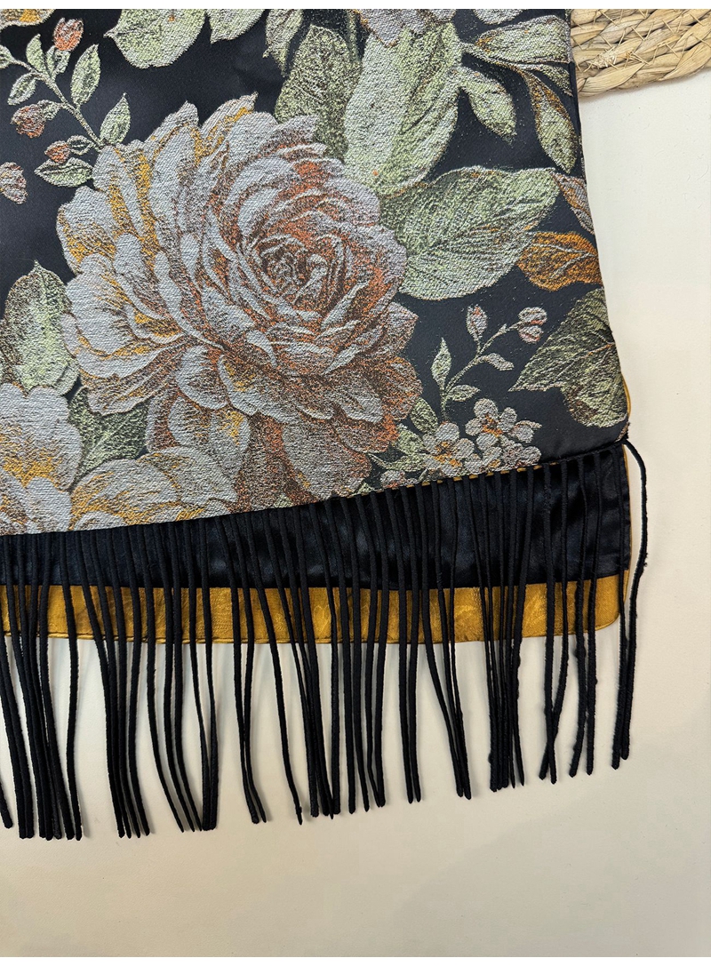 新中式撞色牡丹提花流苏圆领单排扣马甲
