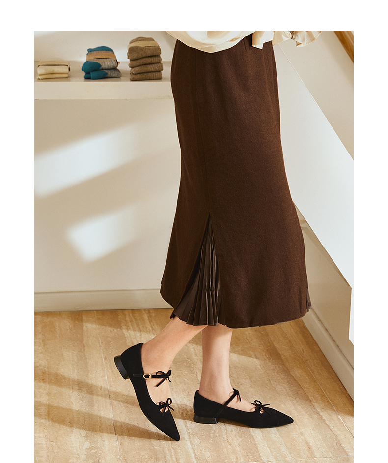 【静音系列】千百度羊皮低跟玛丽珍鞋女褶皱浅口单鞋A25485124