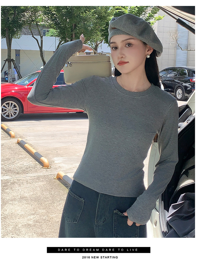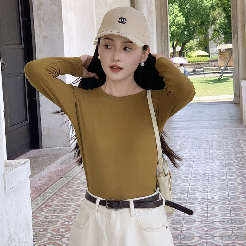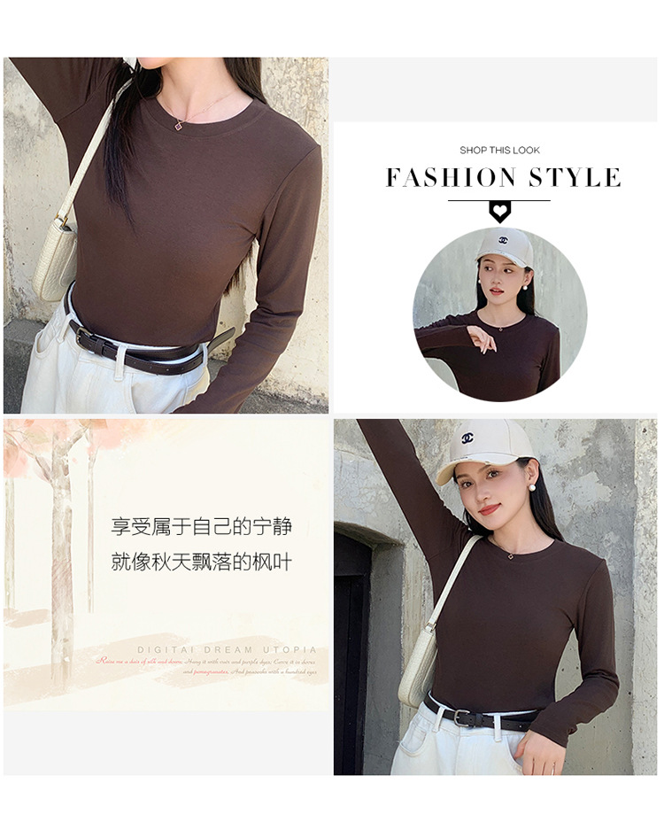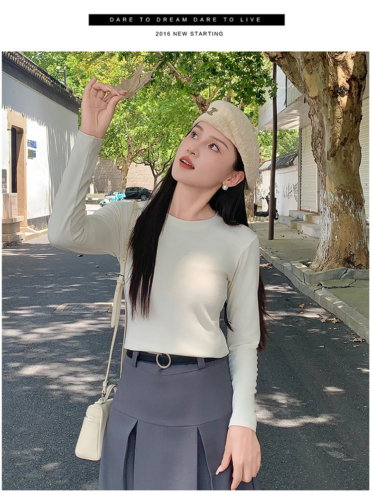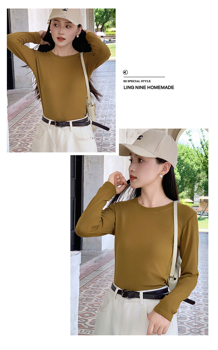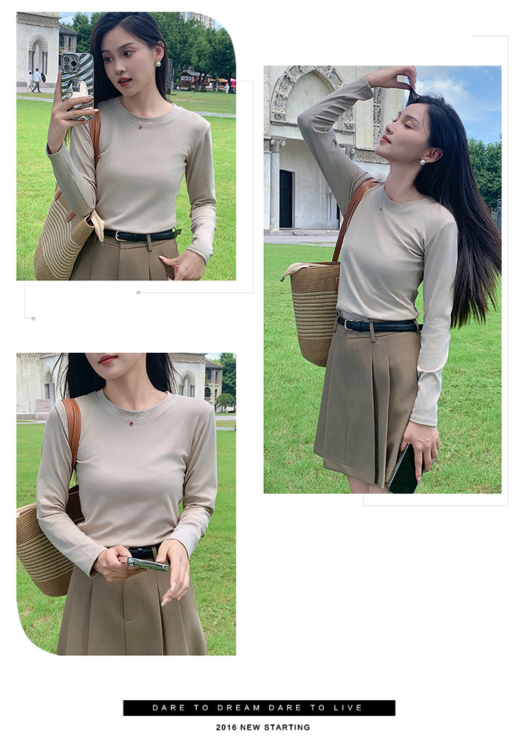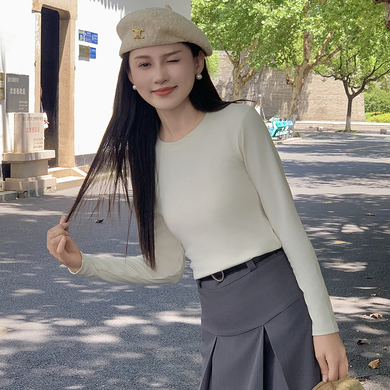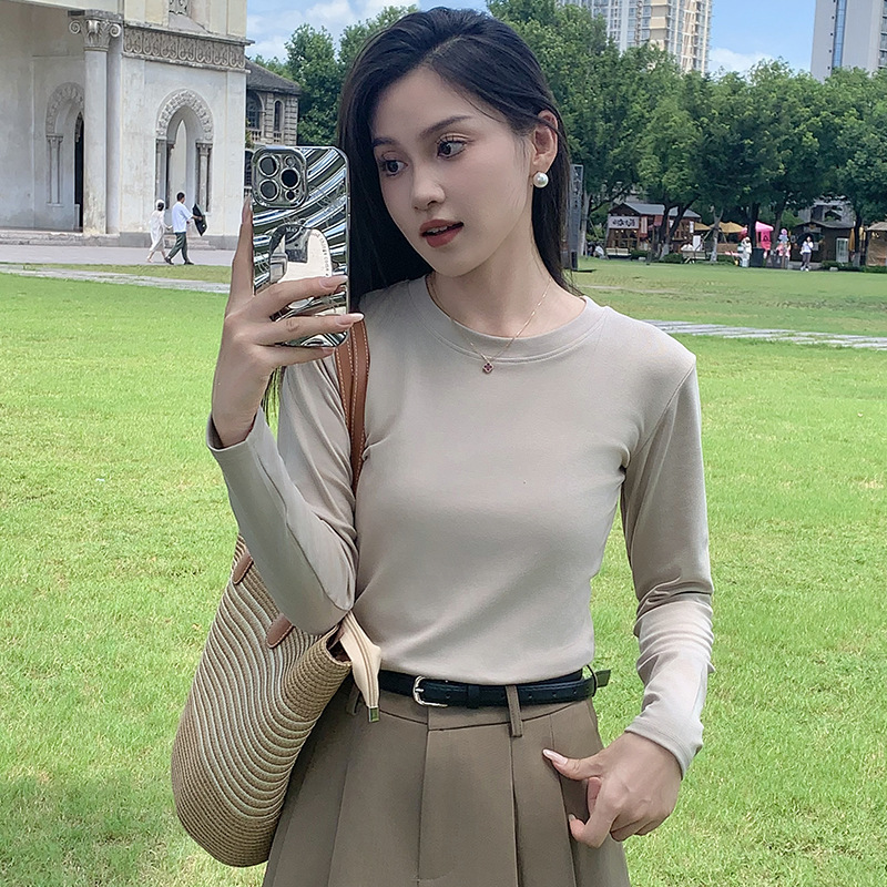 秋冬季新款保暖圆领打底衫女洋气百搭纯色长袖t恤女上衣外穿针织衫内搭