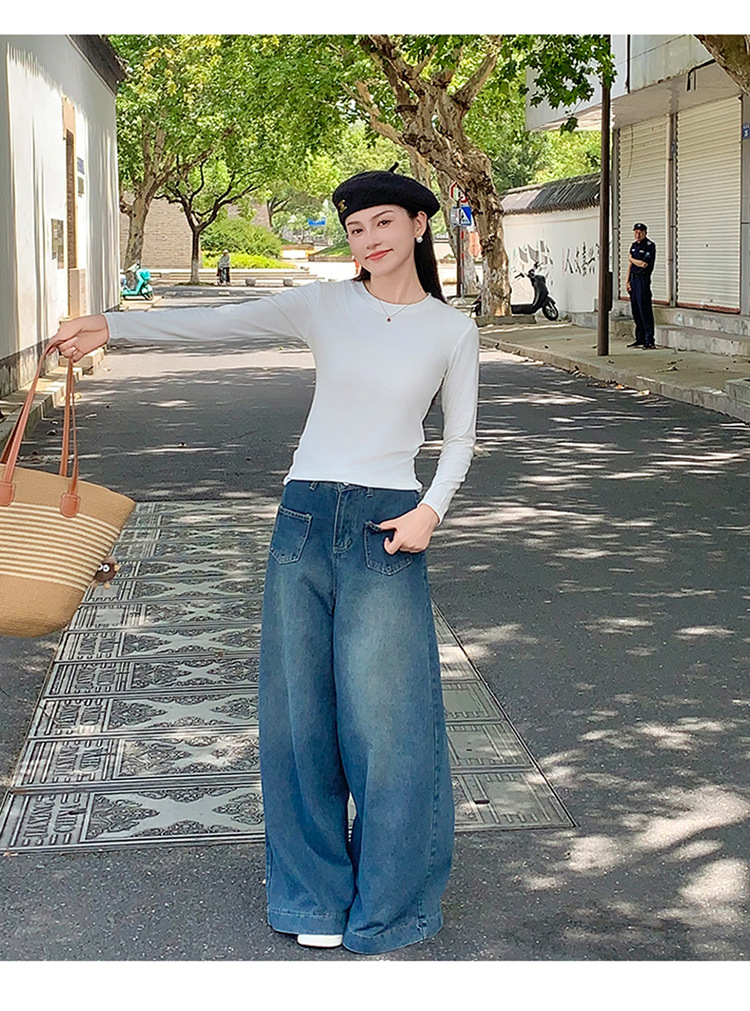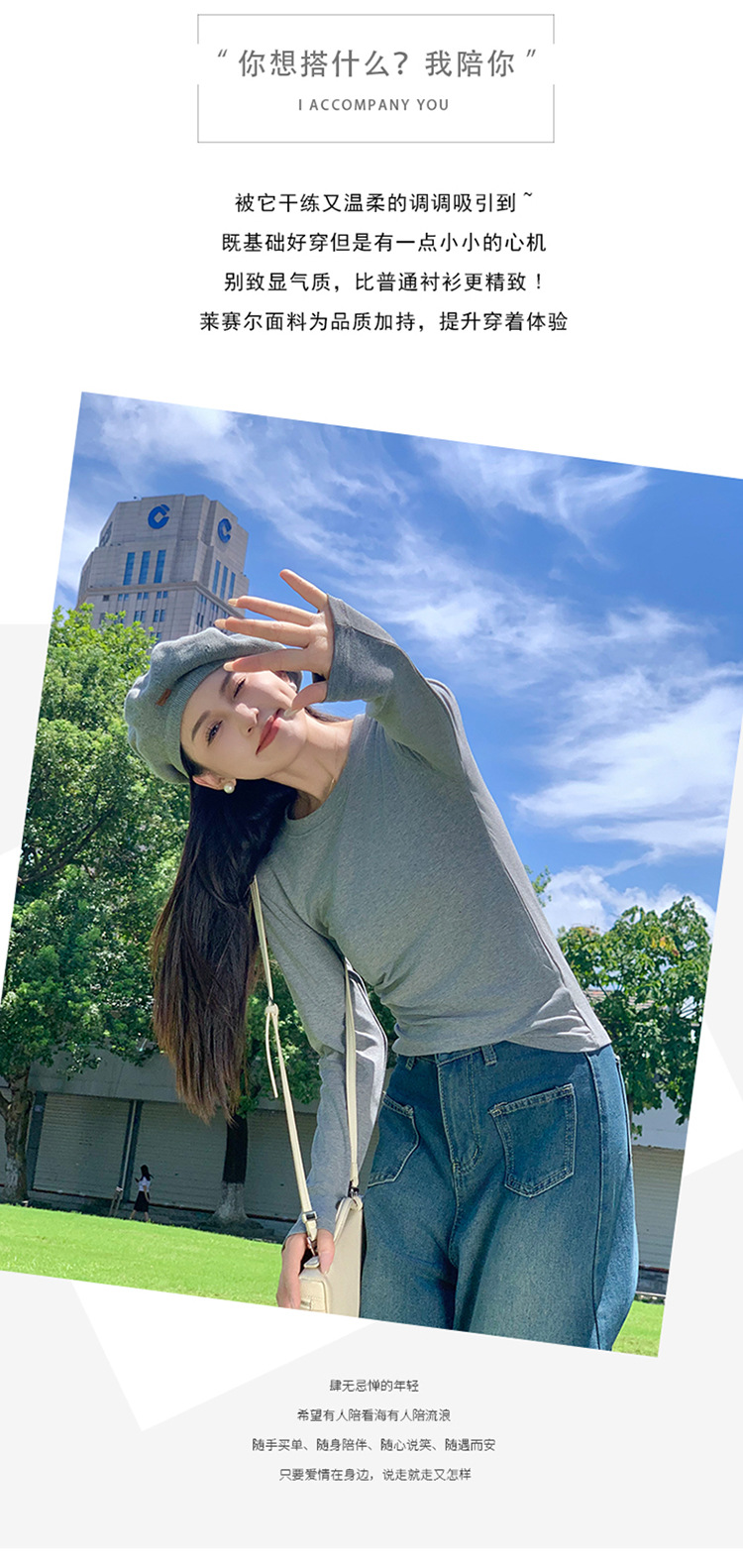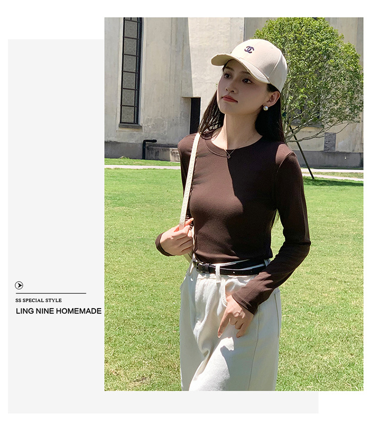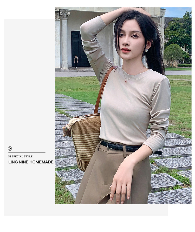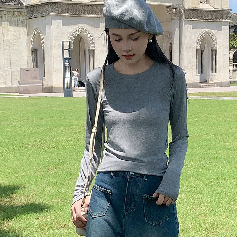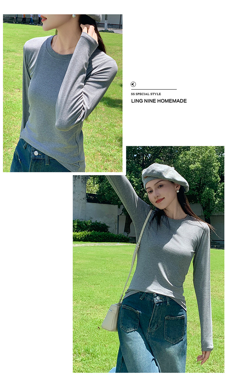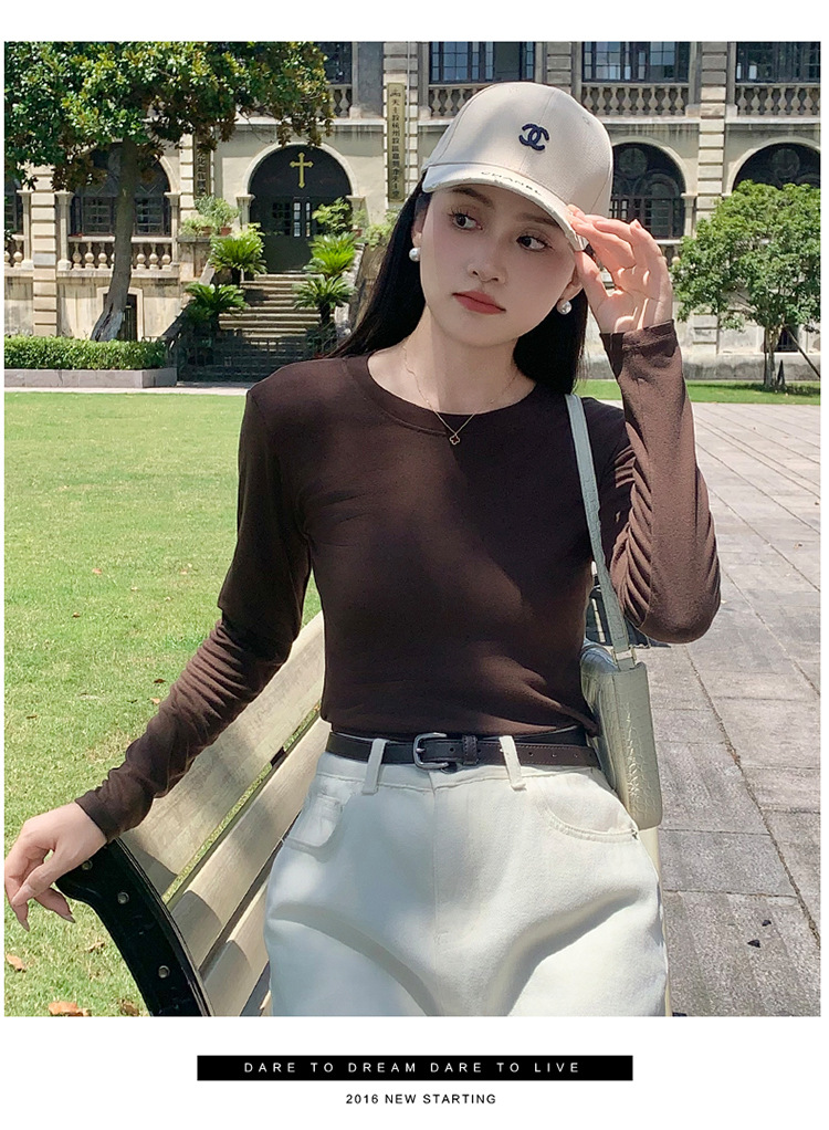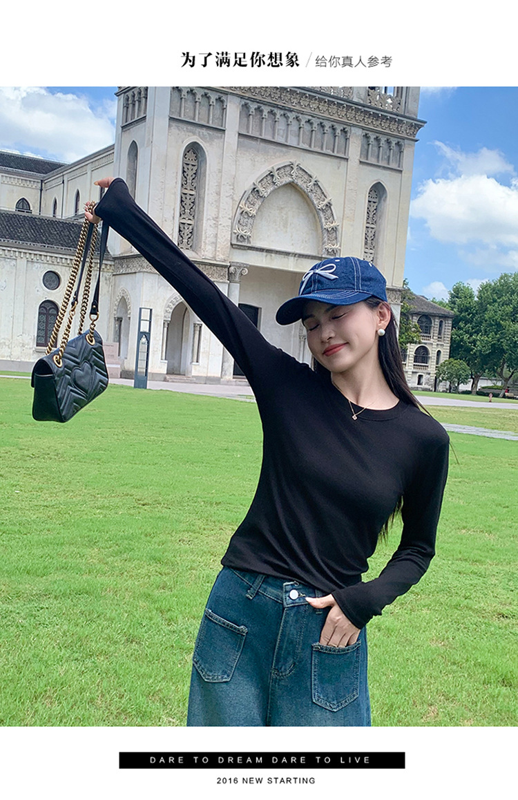 秋冬季新款保暖圆领打底衫女洋气百搭纯色长袖t恤女上衣外穿针织衫内搭
