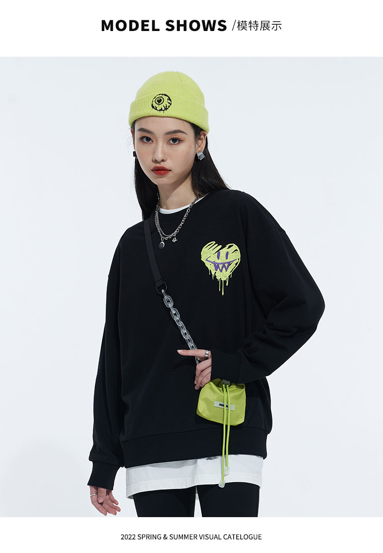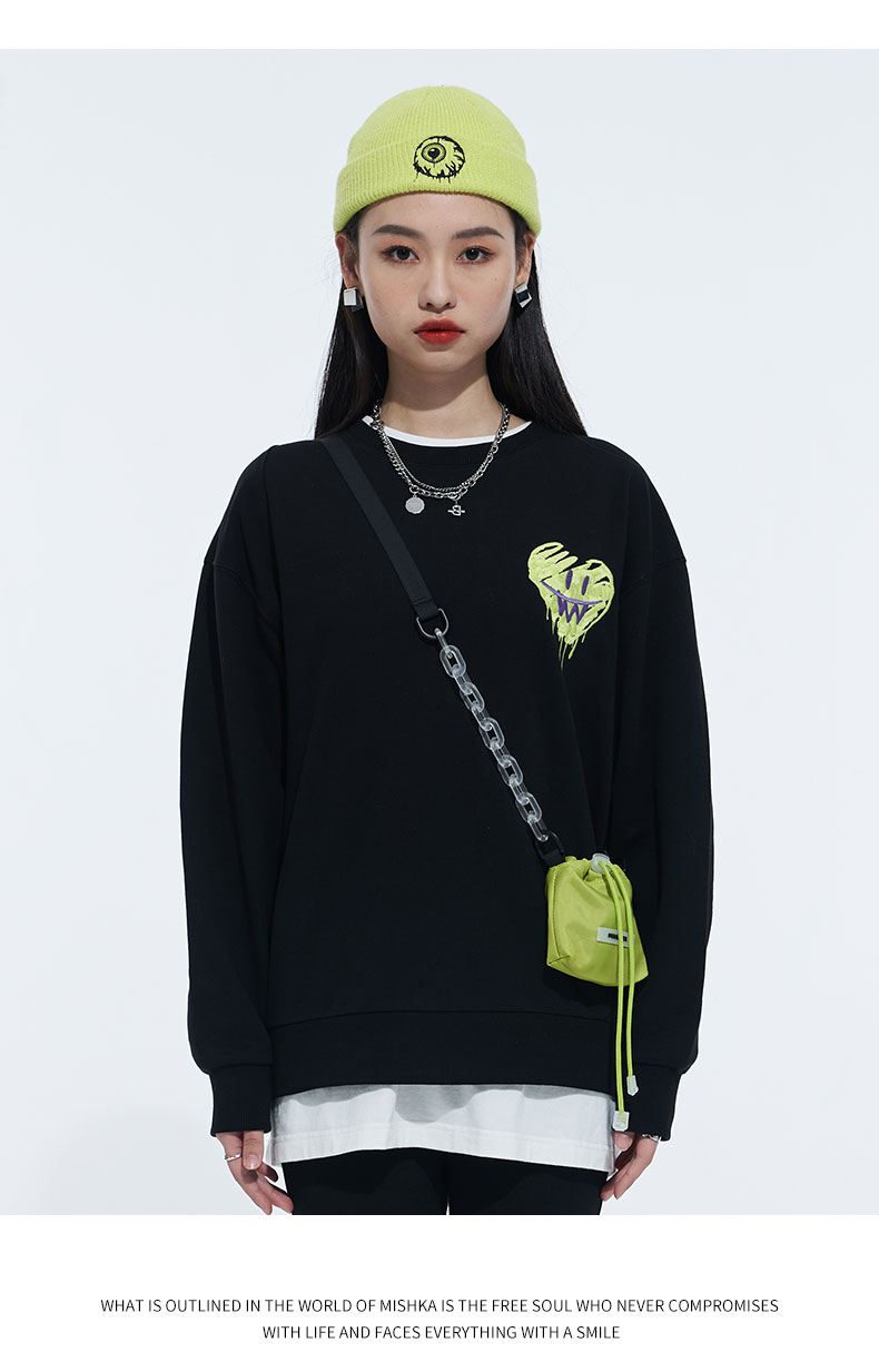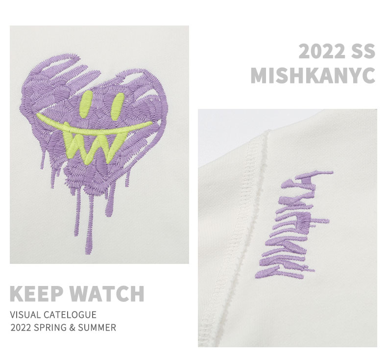 Mishka大眼球潮牌2022春夏新品 满印爱心印花圆领短袖T恤男女同款M21100026M