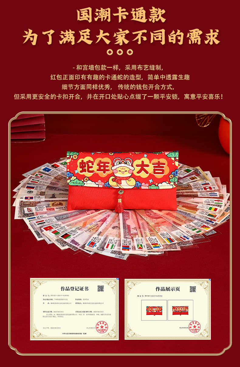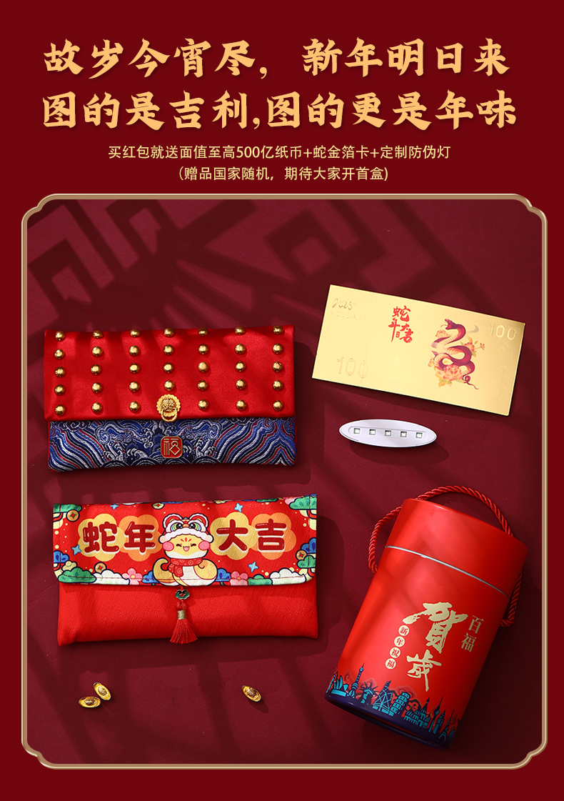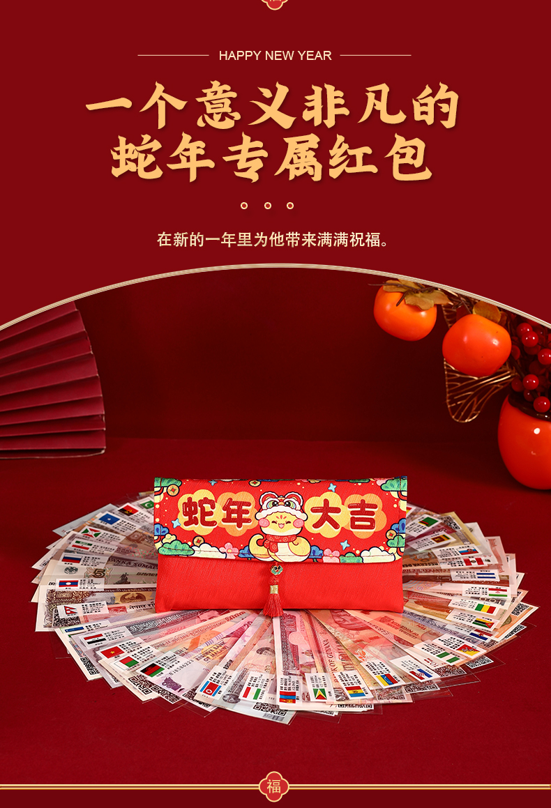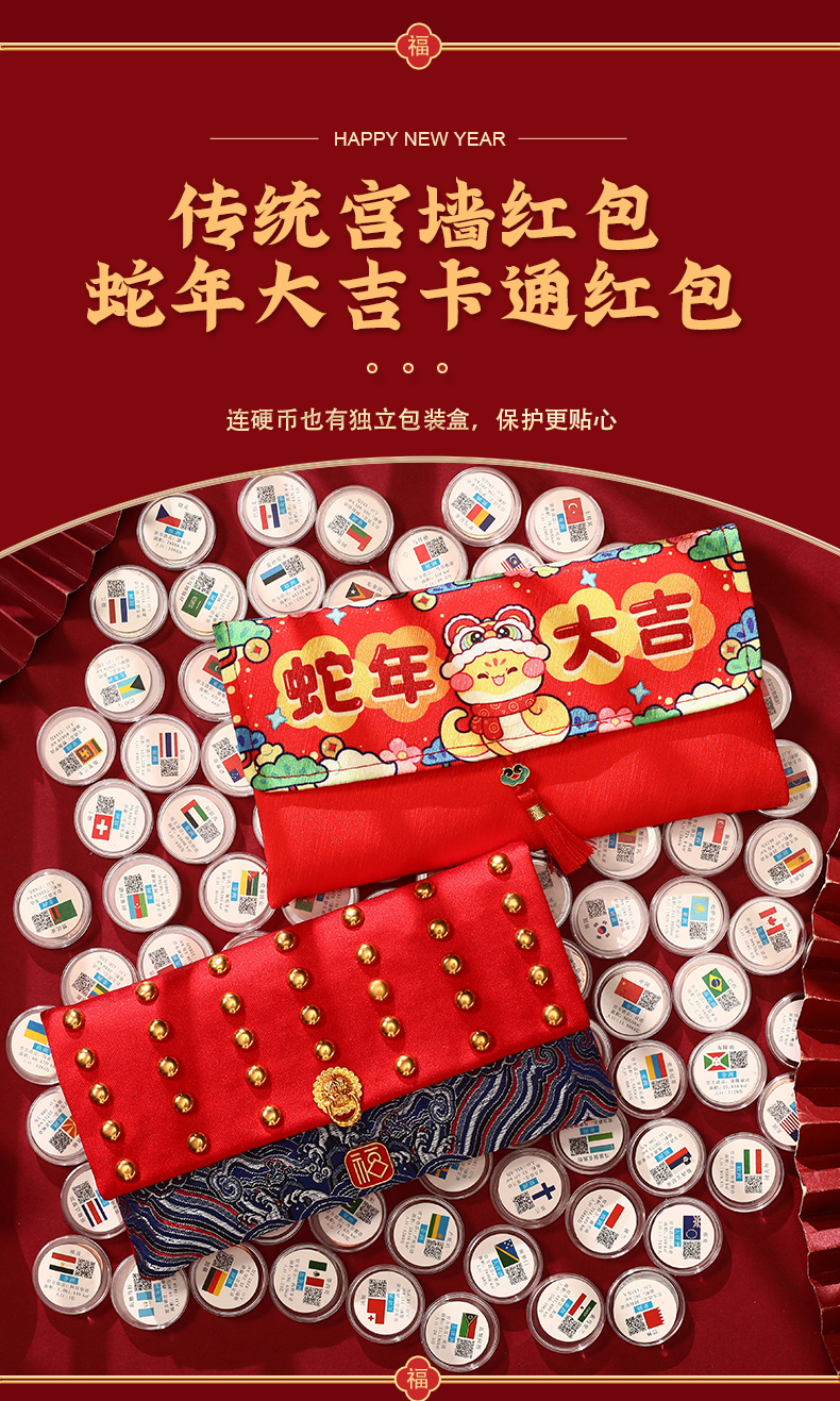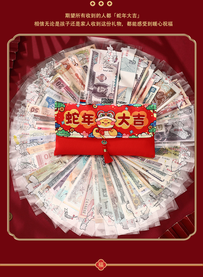 2025年金蛇衔财新年红包 | 精美布艺福袋红包,来自118国家和地区的祝福【G】