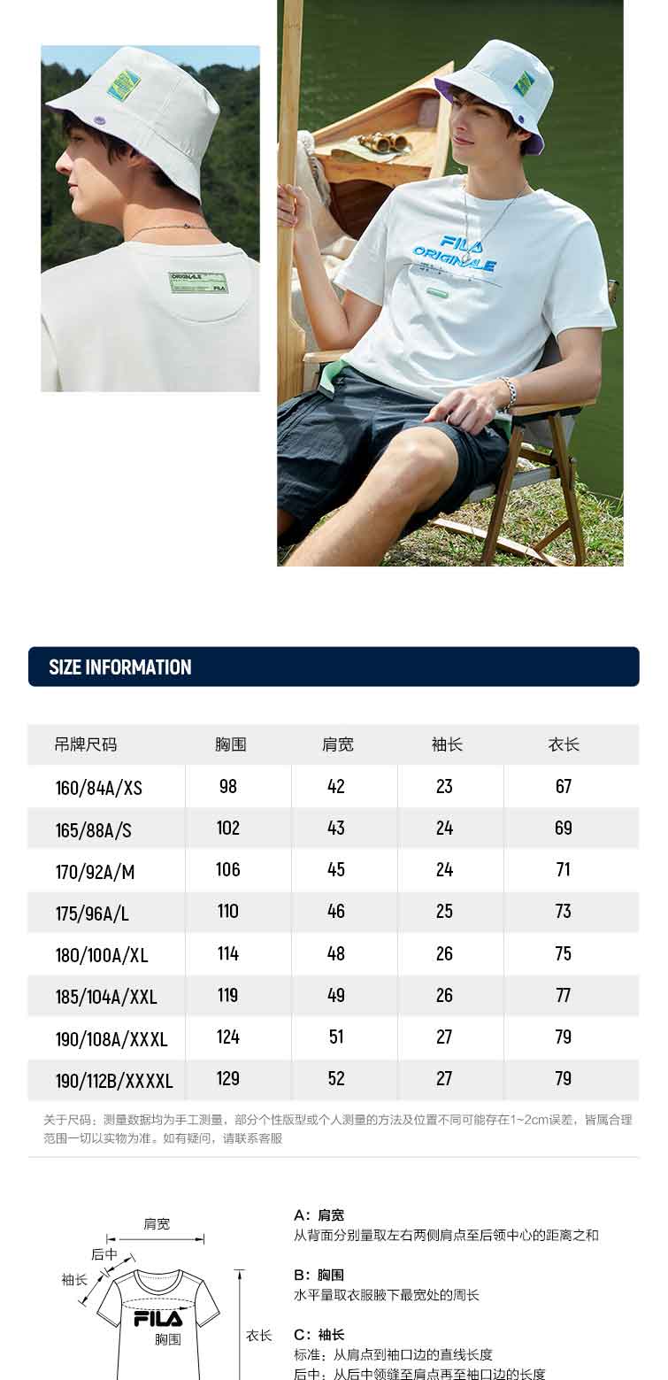 FILA斐乐【蔡徐坤同款】男士短袖2022年夏季新款运动舒适T恤F11M229111F