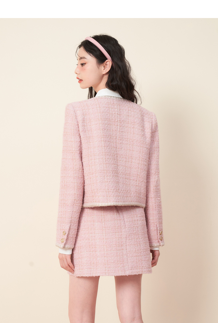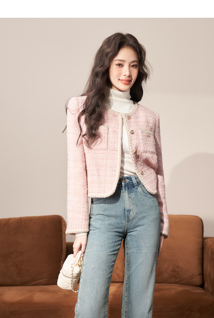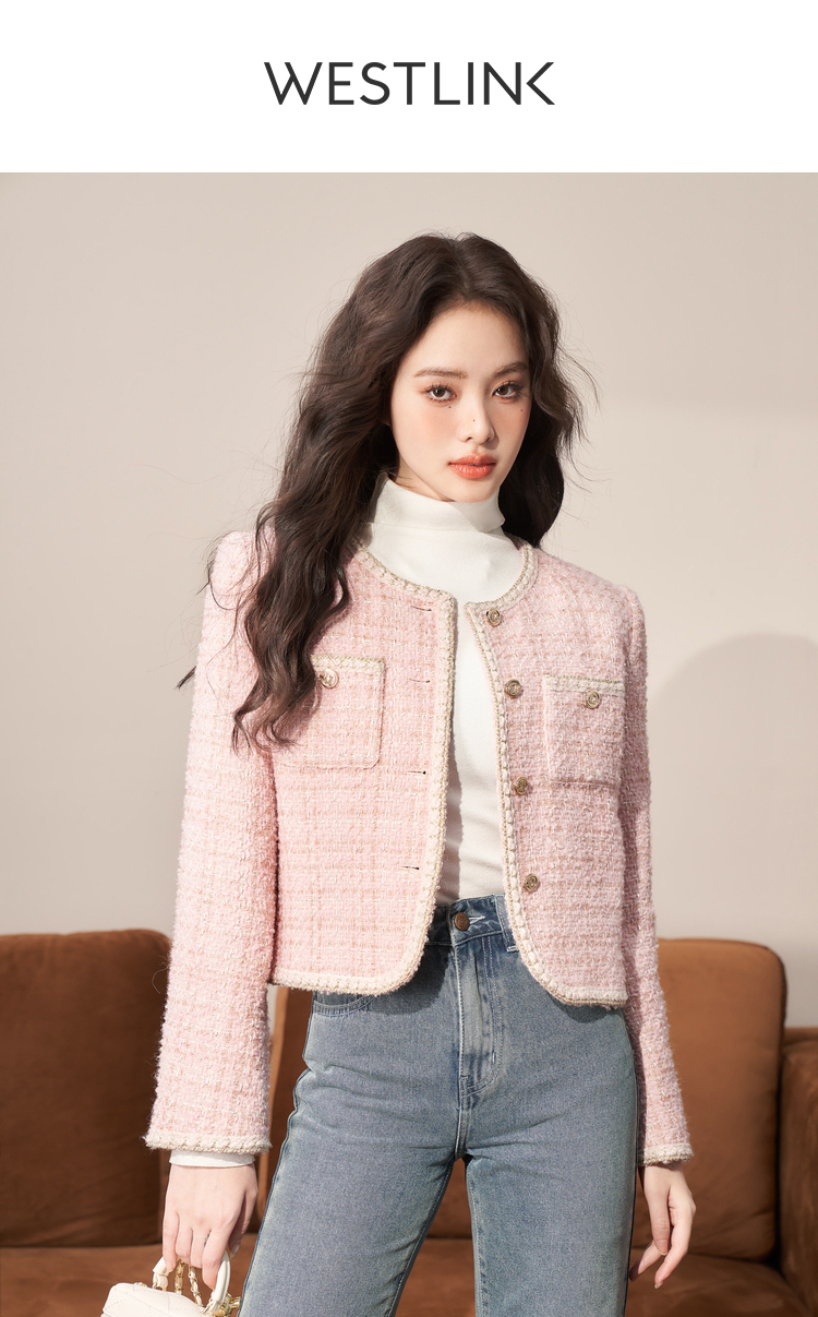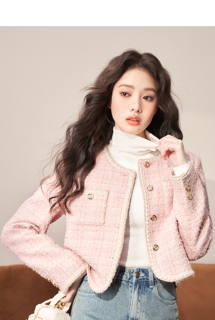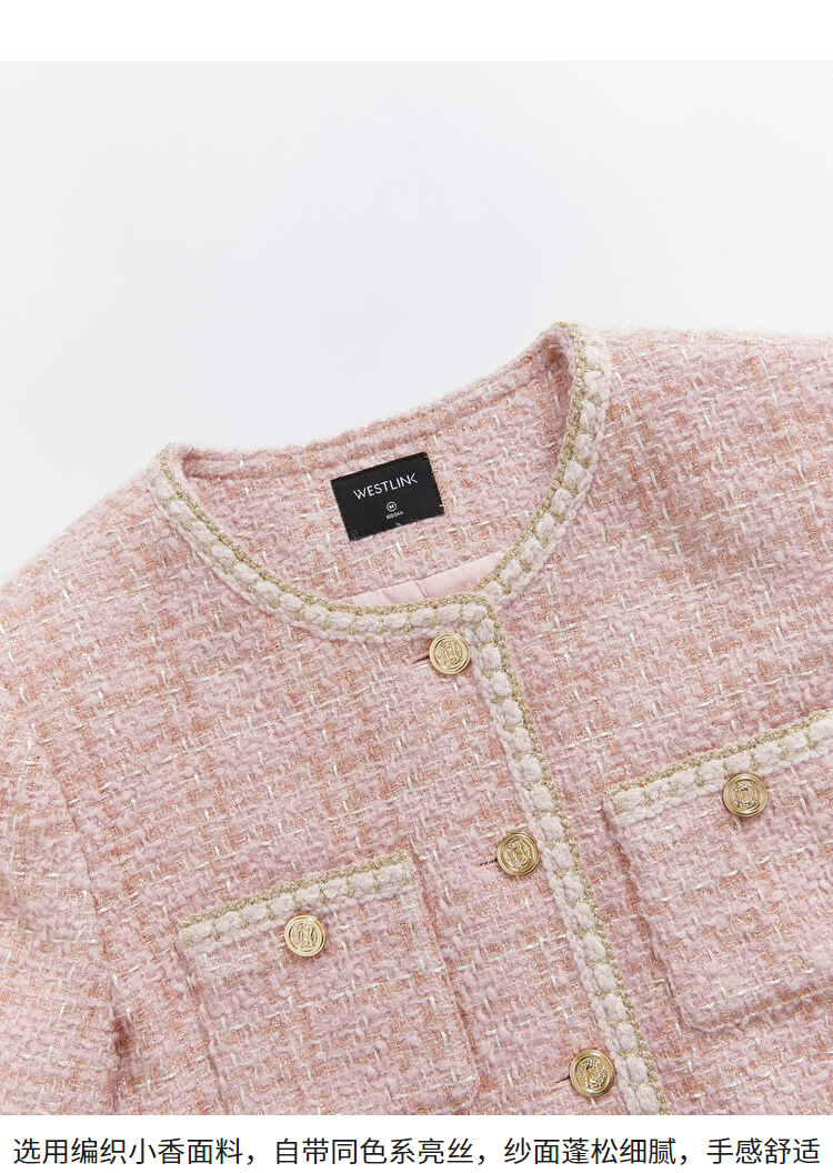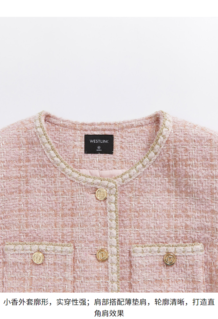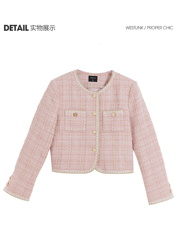 西遇粉色小香风外套女新款法式名媛风气质短款开衫上衣11721384