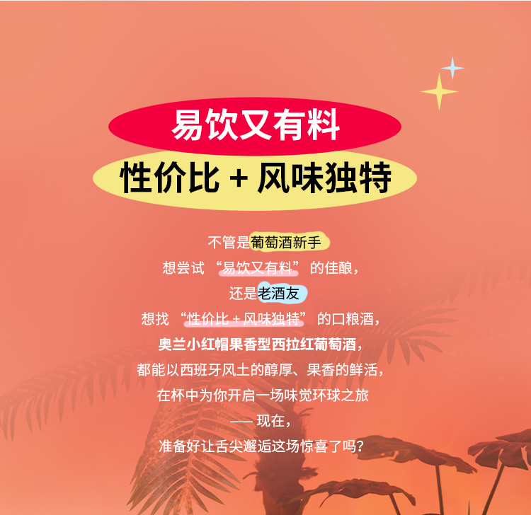 【新品】西班牙进口 奥兰小红帽果香型西拉半干型红葡萄酒(AI130) 13度750ml 新手优选 甜美优雅