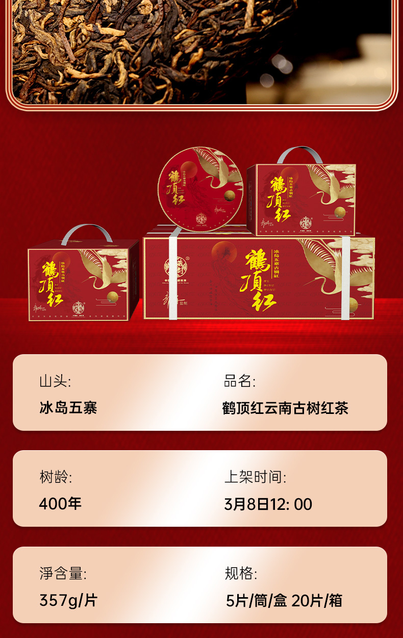 2022年冰岛鹤顶红 5A级云南滇红茶 357克 购买5片赠1片!