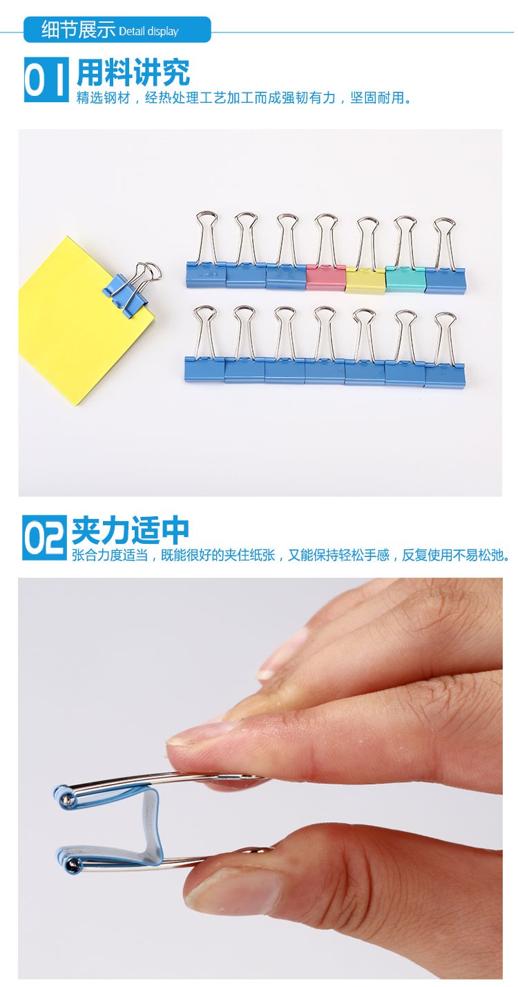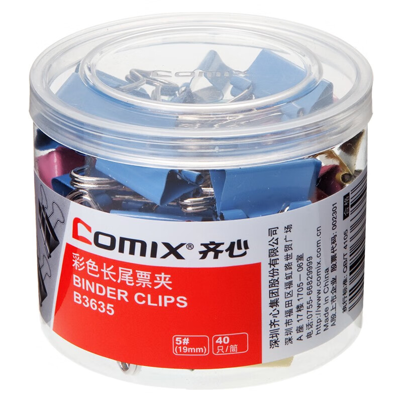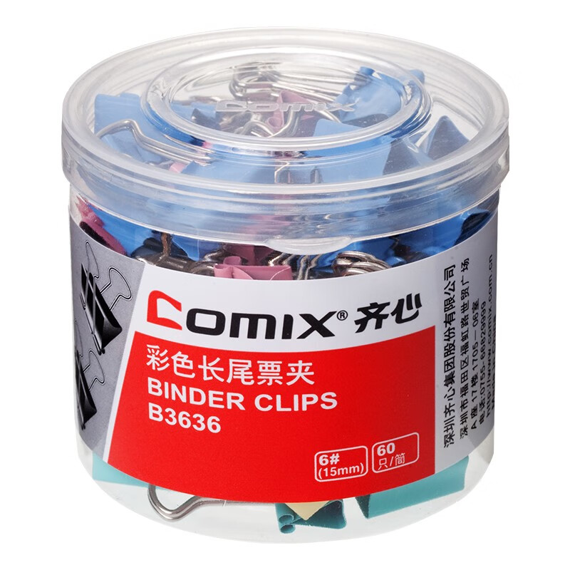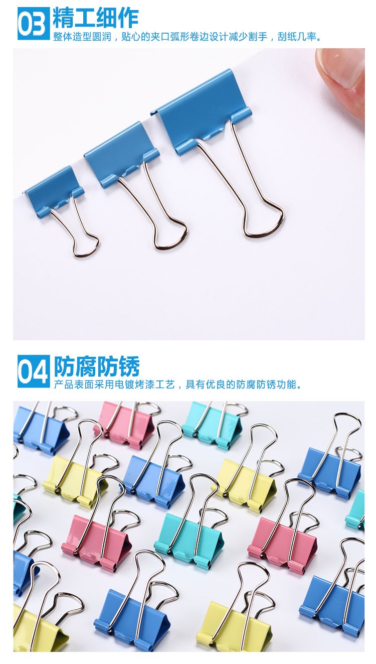 齐心 B3632 彩色易分类长尾票夹(2# 41mm 24pcs/筒)