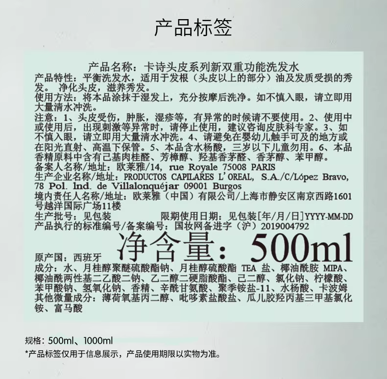 卡诗双重功能洗发水500ml/1000ml