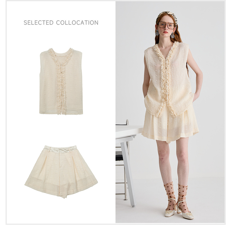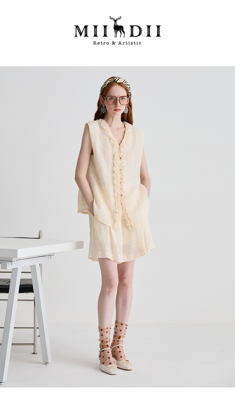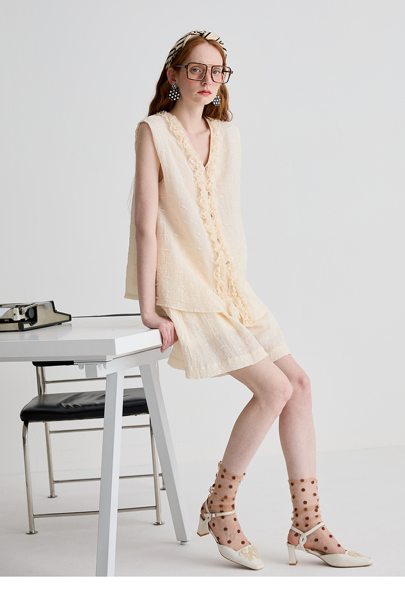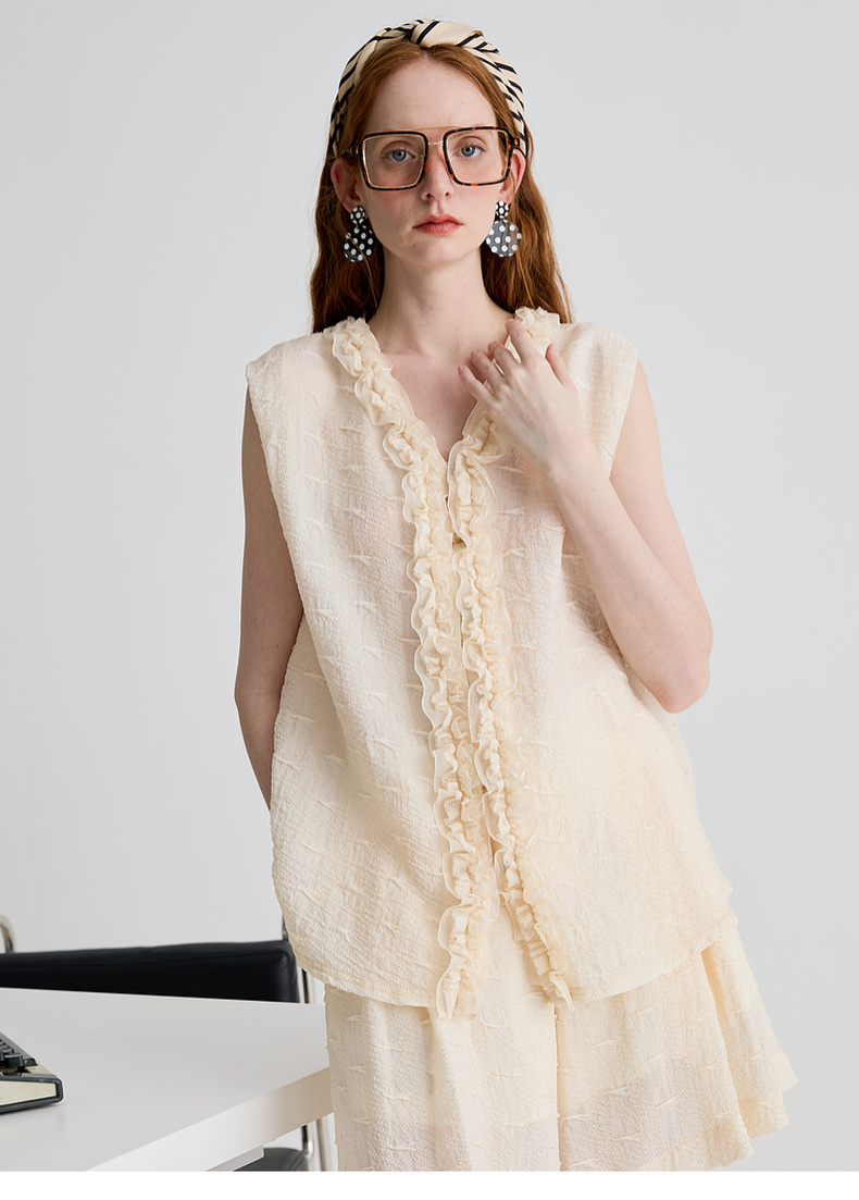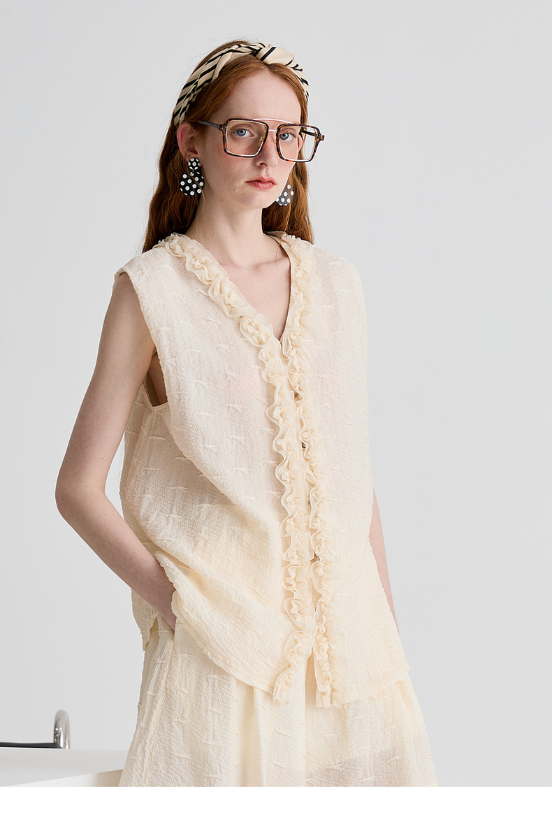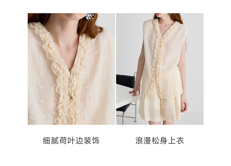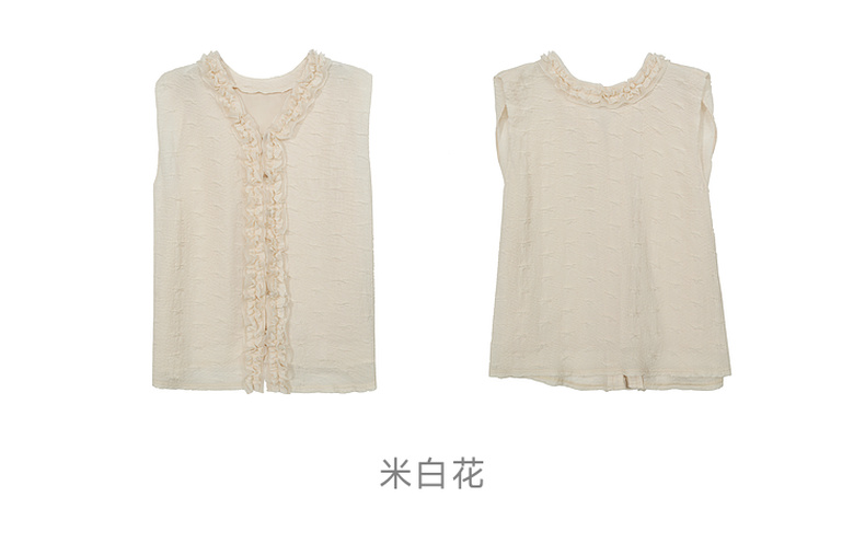谜底衬衫无袖女2025夏季新品通勤褶皱荷叶边宽松A型上衣252MS0654