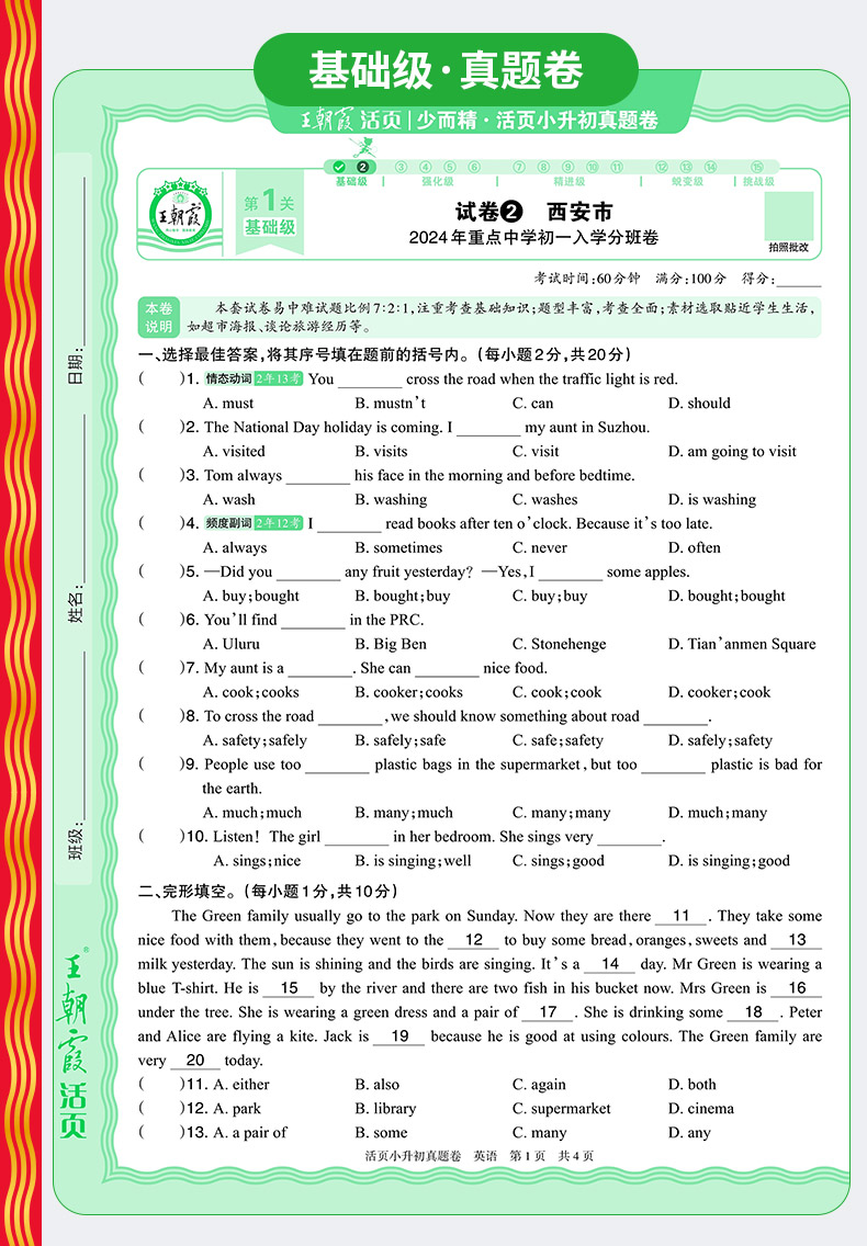 2025王朝霞活页小升初真题卷/模拟卷语文数学英语(全国通用适用备战小升初)