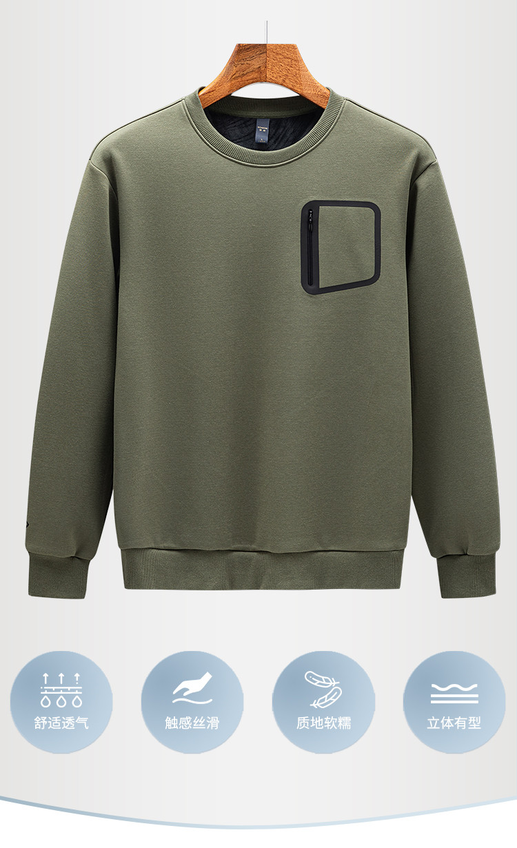【加绒加厚 蚕丝混纺】罗蒙秋冬男装卫衣口袋款户外运动加绒卫衣男秋冬款加绒保暖男卫衣