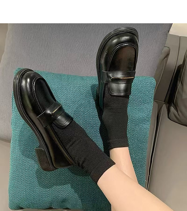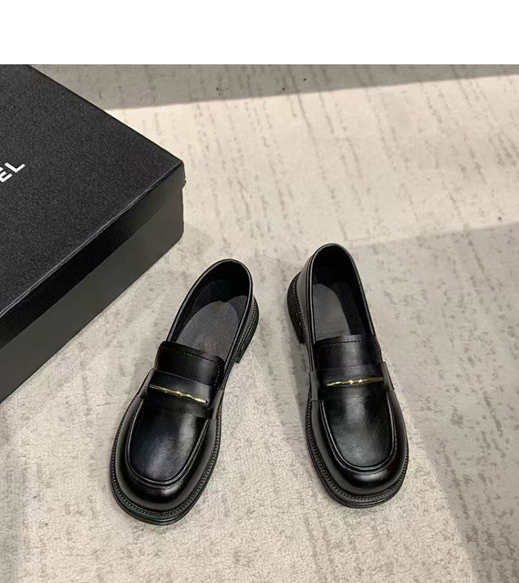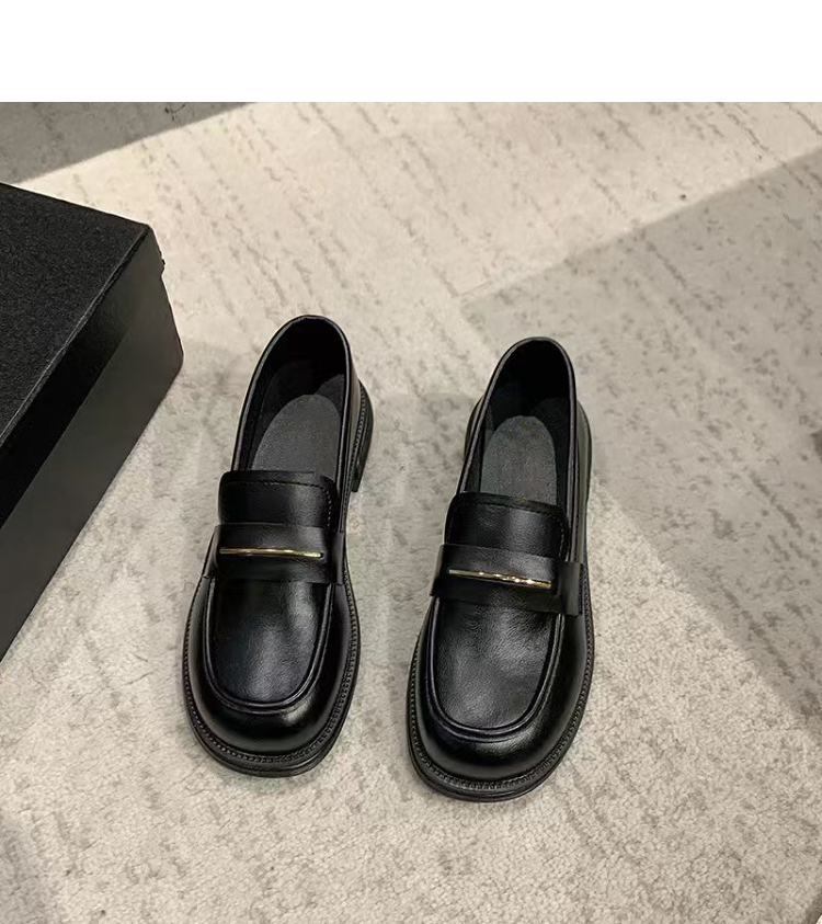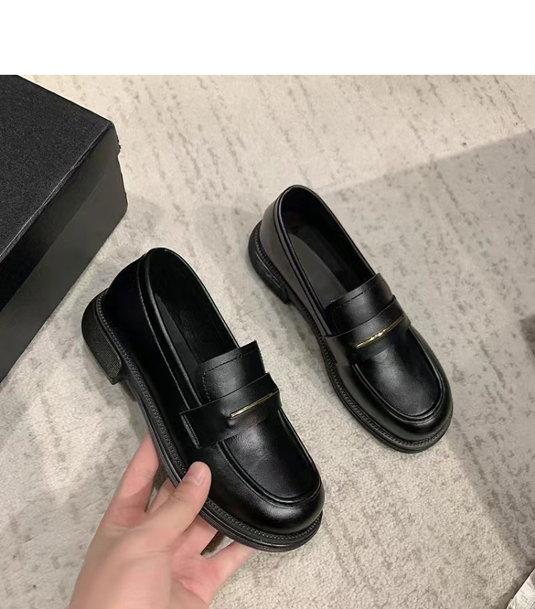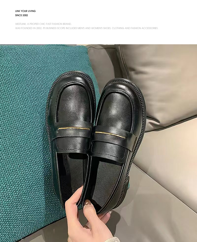 【限时秒杀】西遇低跟乐福鞋女新款简约法式一脚蹬小皮鞋通勤黑色单鞋P0047511