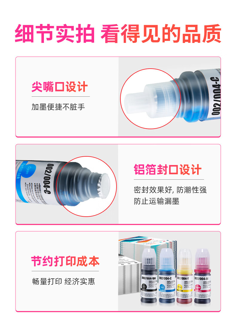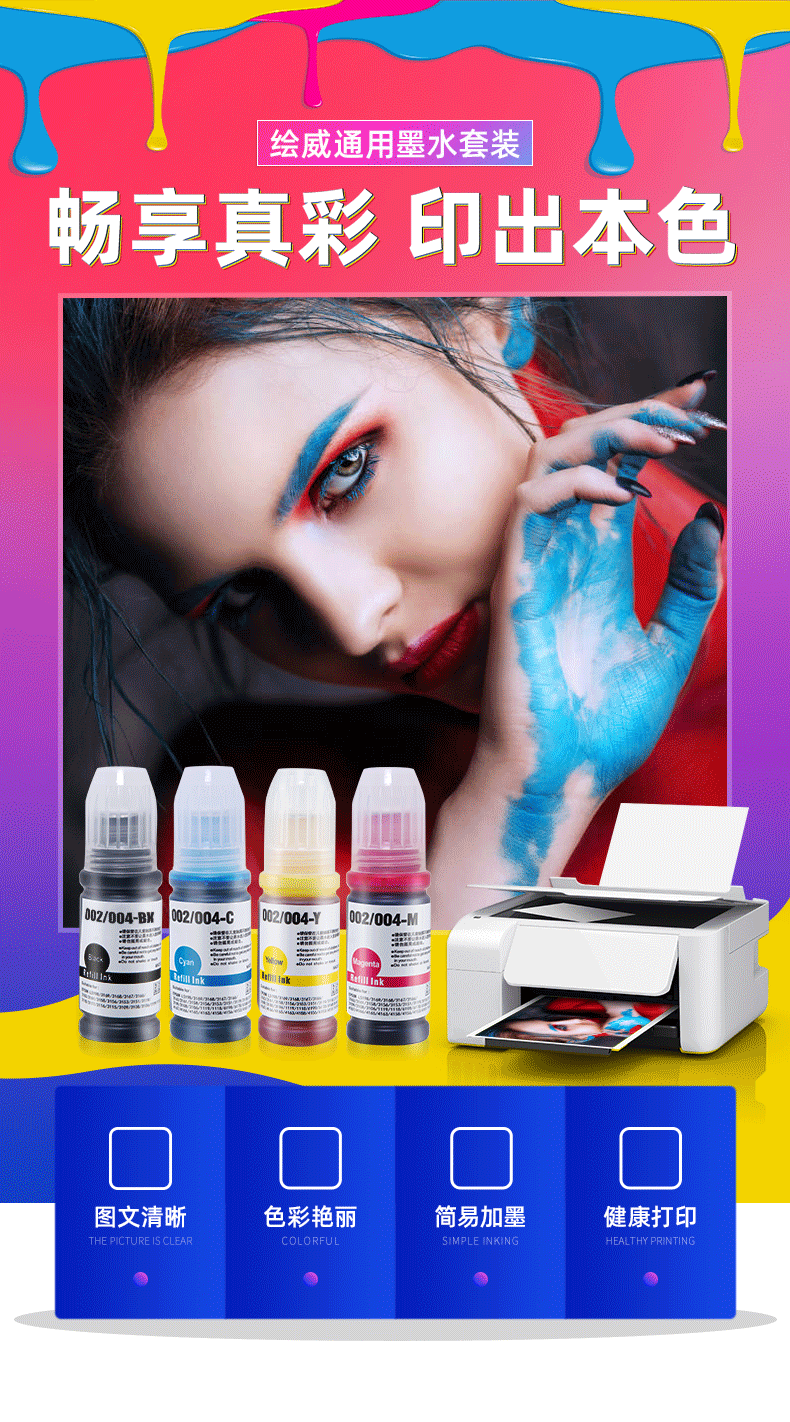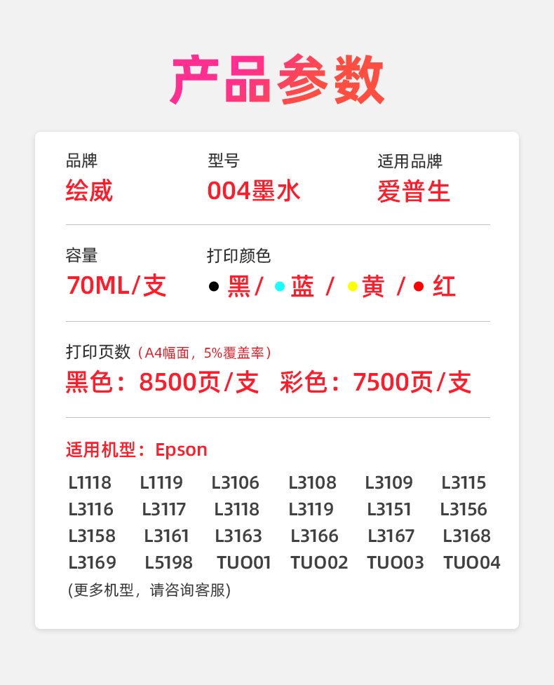 绘威臻享版 004墨水 四色 适用爱普生L1118 L1119 L3118 L3119 L3151 L3153 L3158 L3163 L3168 L3169 L5198