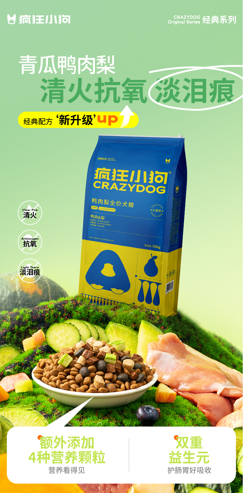 疯狂小狗青瓜鸭肉梨狗粮淡泪痕成幼犬通用10kg