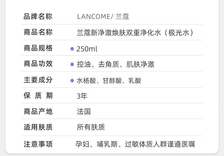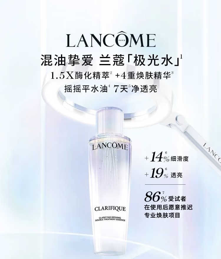 Lancome/兰蔻净澈焕肤双重精华极光水精华水250ml+精华水50mlX5组合补水保湿