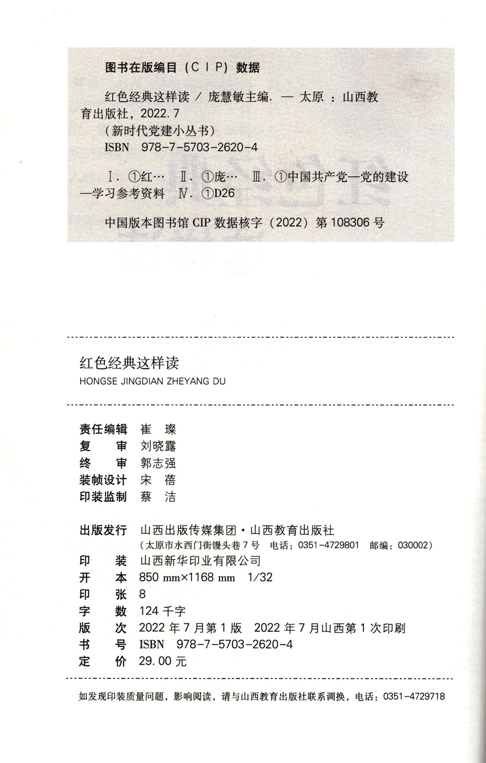 正版 新时代党建小丛书 红色经典这样读 党的建设学习参考资料 庞慧敏主编 山西教育出版社出版
