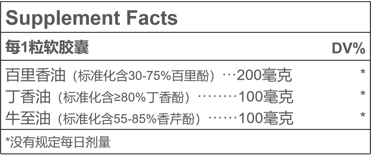 MicroBalance提供牛至、百里香、丁香精油,以支持肠道菌群健康和肠道舒缓。