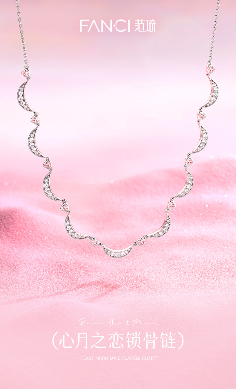 【心月之恋锁骨链 粉银款】Fanci银饰 幻梦心月系列 礼物送女友