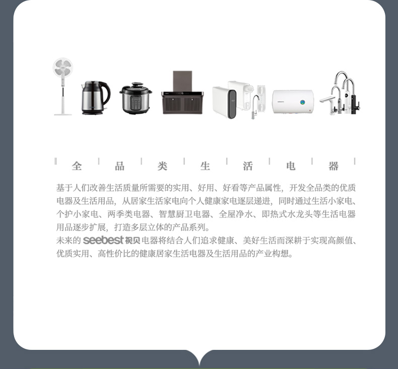 厦门视贝科技有限公司是集产品自主设计,研发,生产,销售于一体的高科技企业。拥有80000平方米的制造厂房,核心员工2000多人。产品线涵盖照明、电工,卫浴,线路,集成风暖等领域。