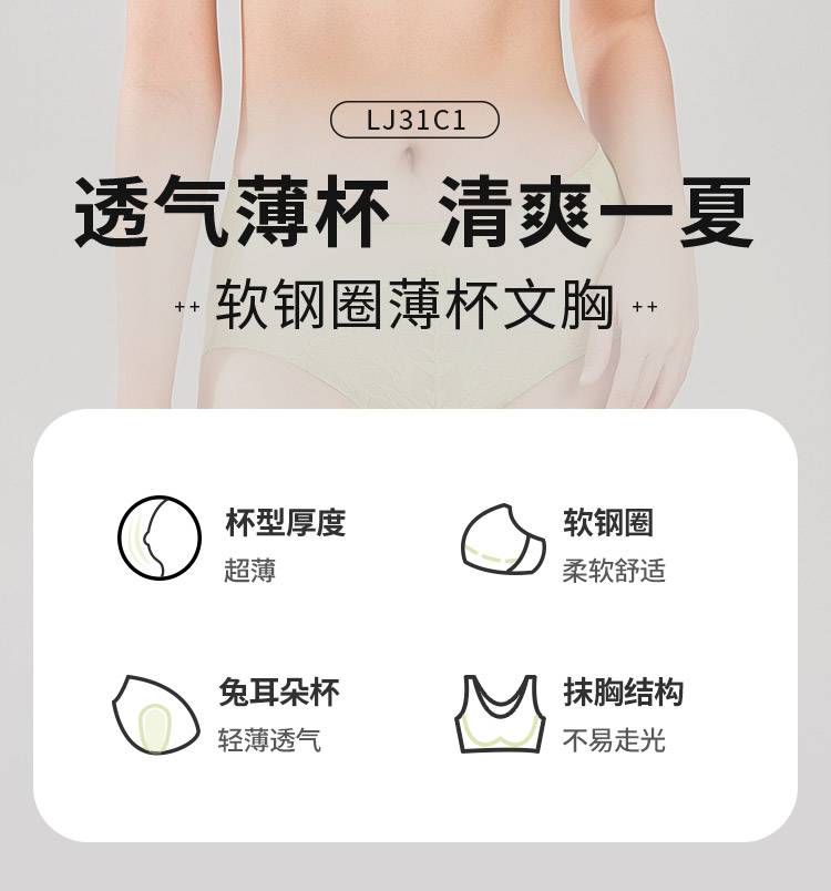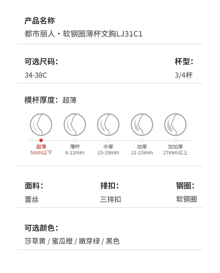 都市丽人舒软挺塑调整型内衣超薄3/4杯蕾丝塑身系列三排软钢圈LJ31C1