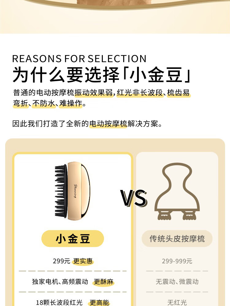 【多样屋专柜】己可小金豆【按摩梳】含便携包礼盒装 头部按摩神器红光梳子按摩头皮spa