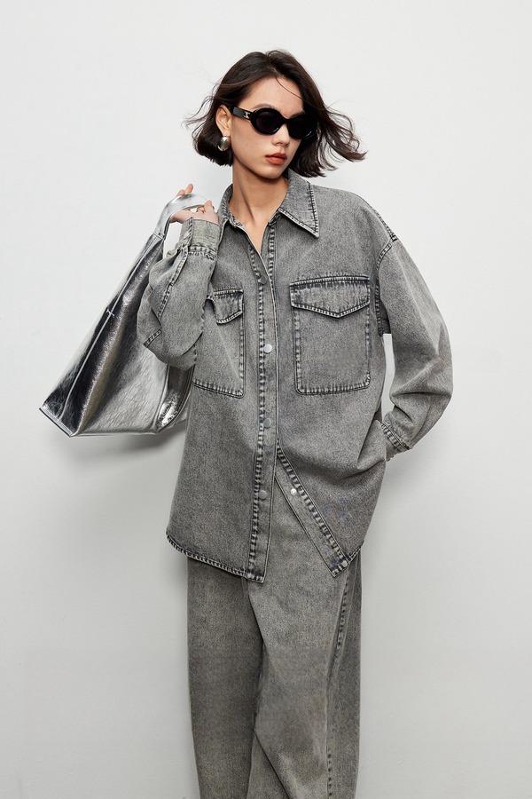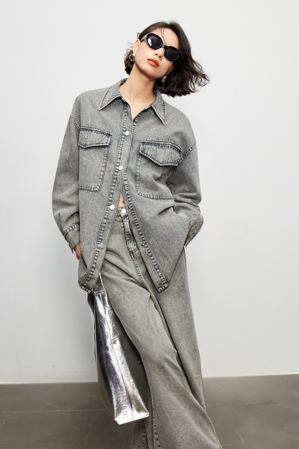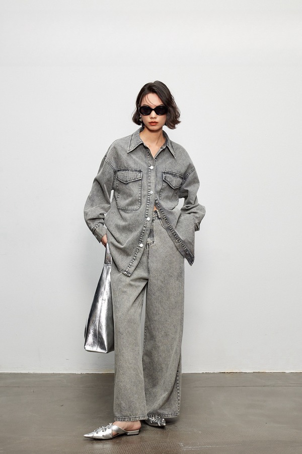 Kai & Kiera 水洗做旧牛仔衬衣长裤套装 19266