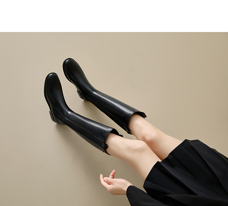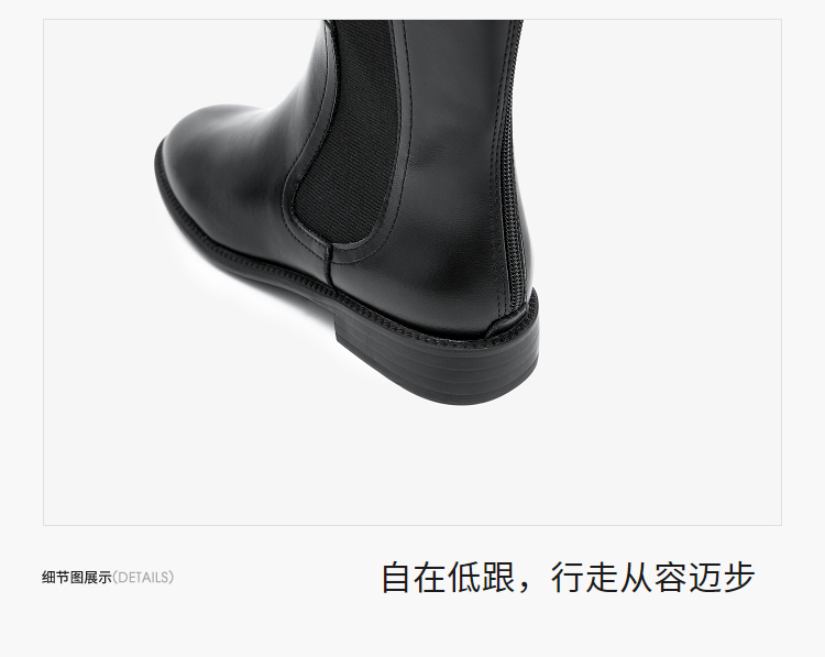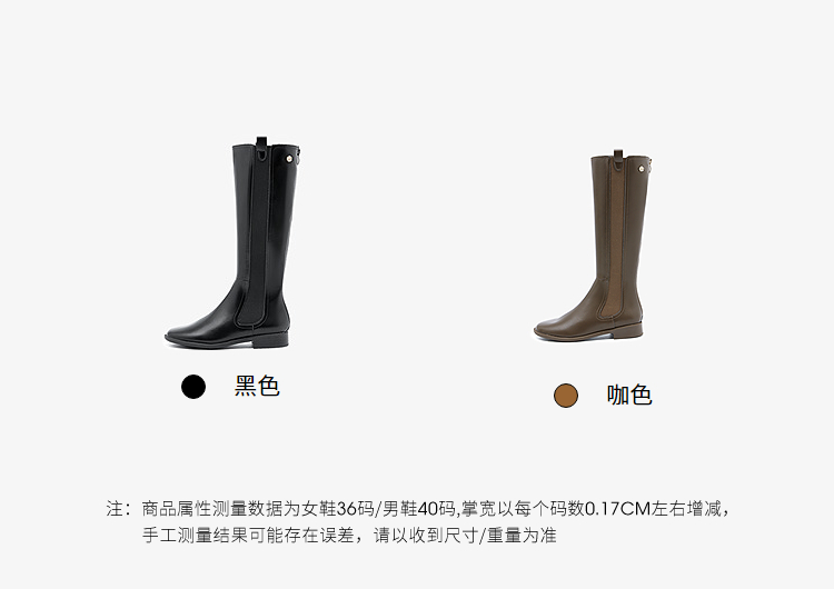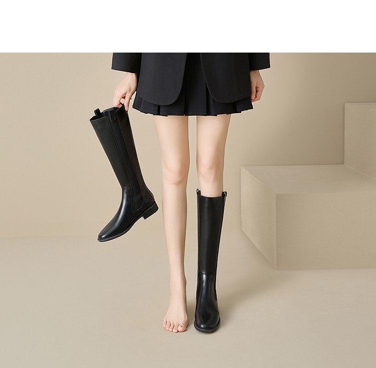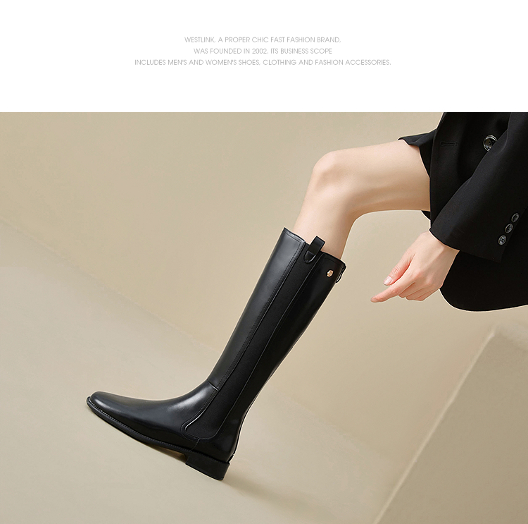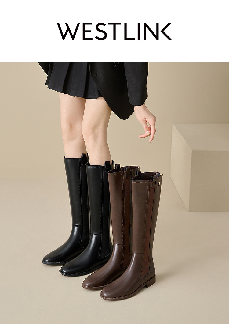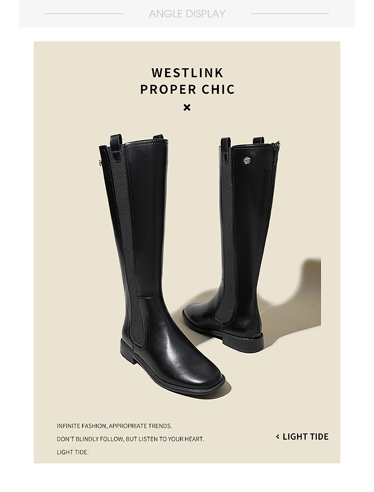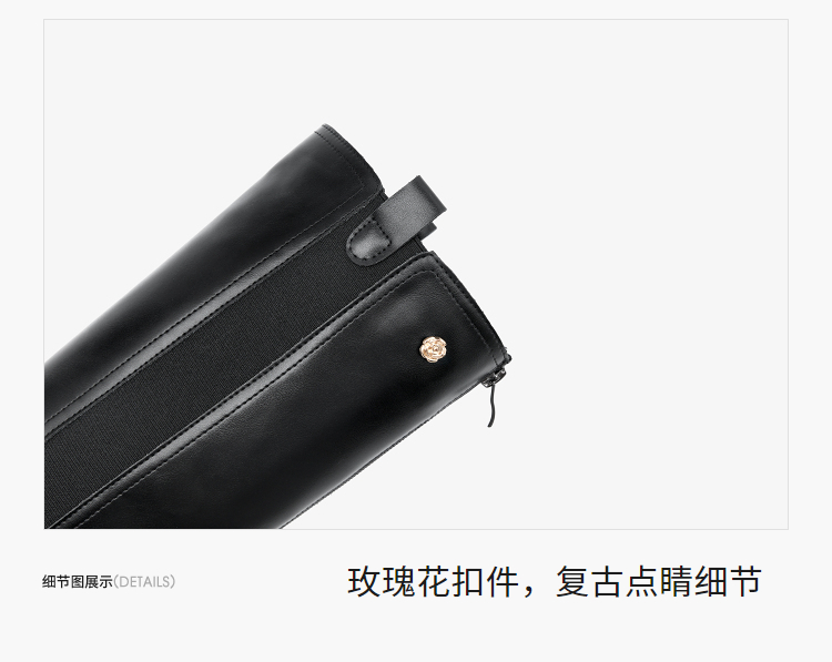 西遇法式长筒靴女新款秋冬山茶花显瘦高筒长靴平底黑色骑士靴V3547549