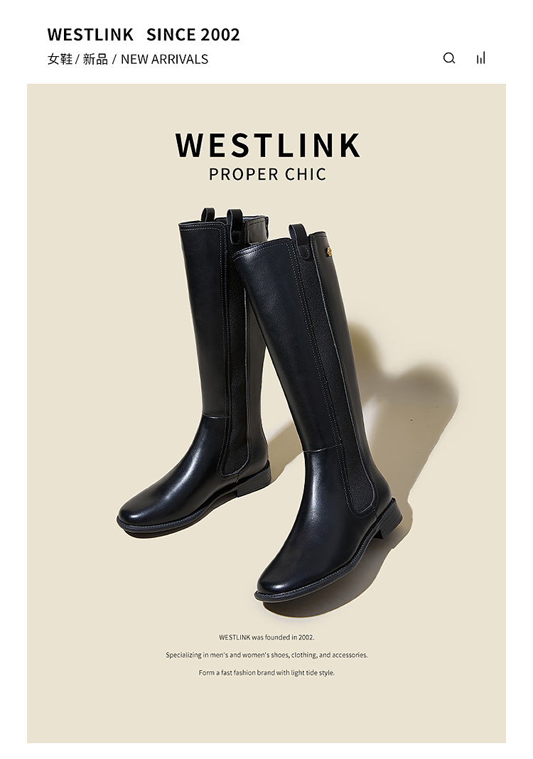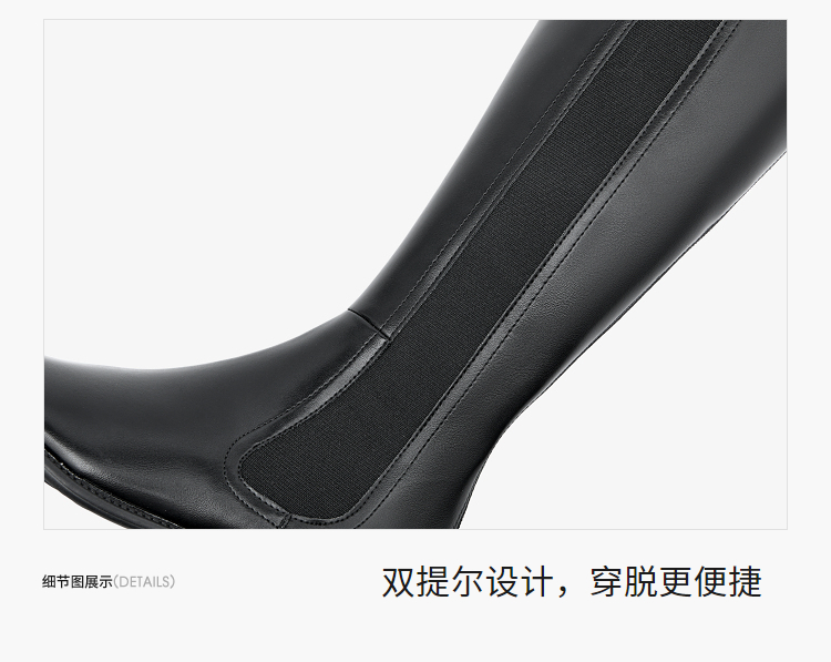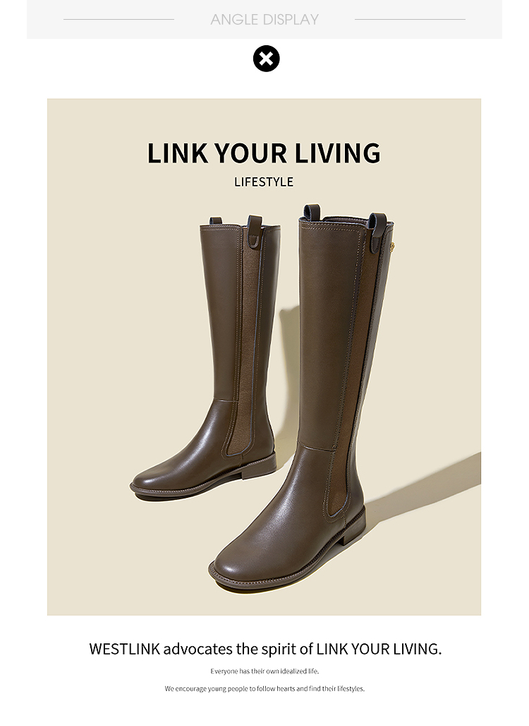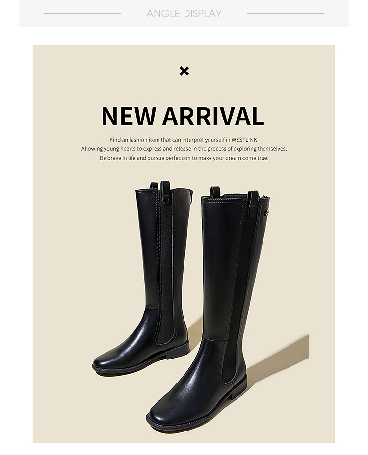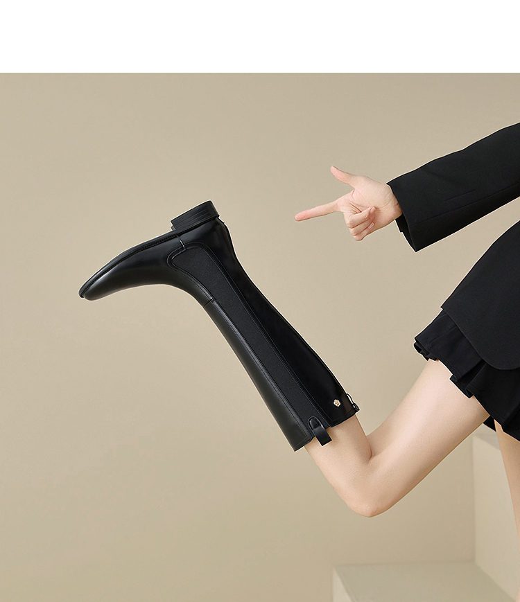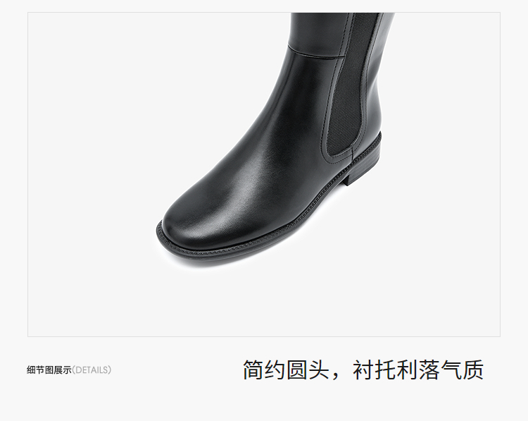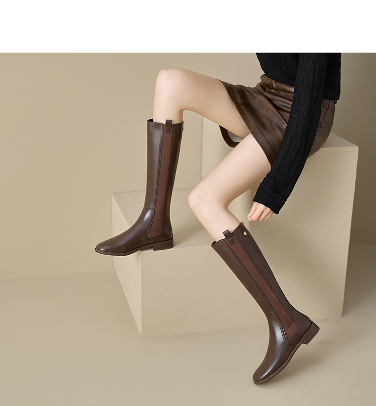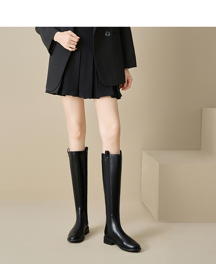 西遇法式长筒靴女新款秋冬山茶花显瘦高筒长靴平底黑色骑士靴V3547549