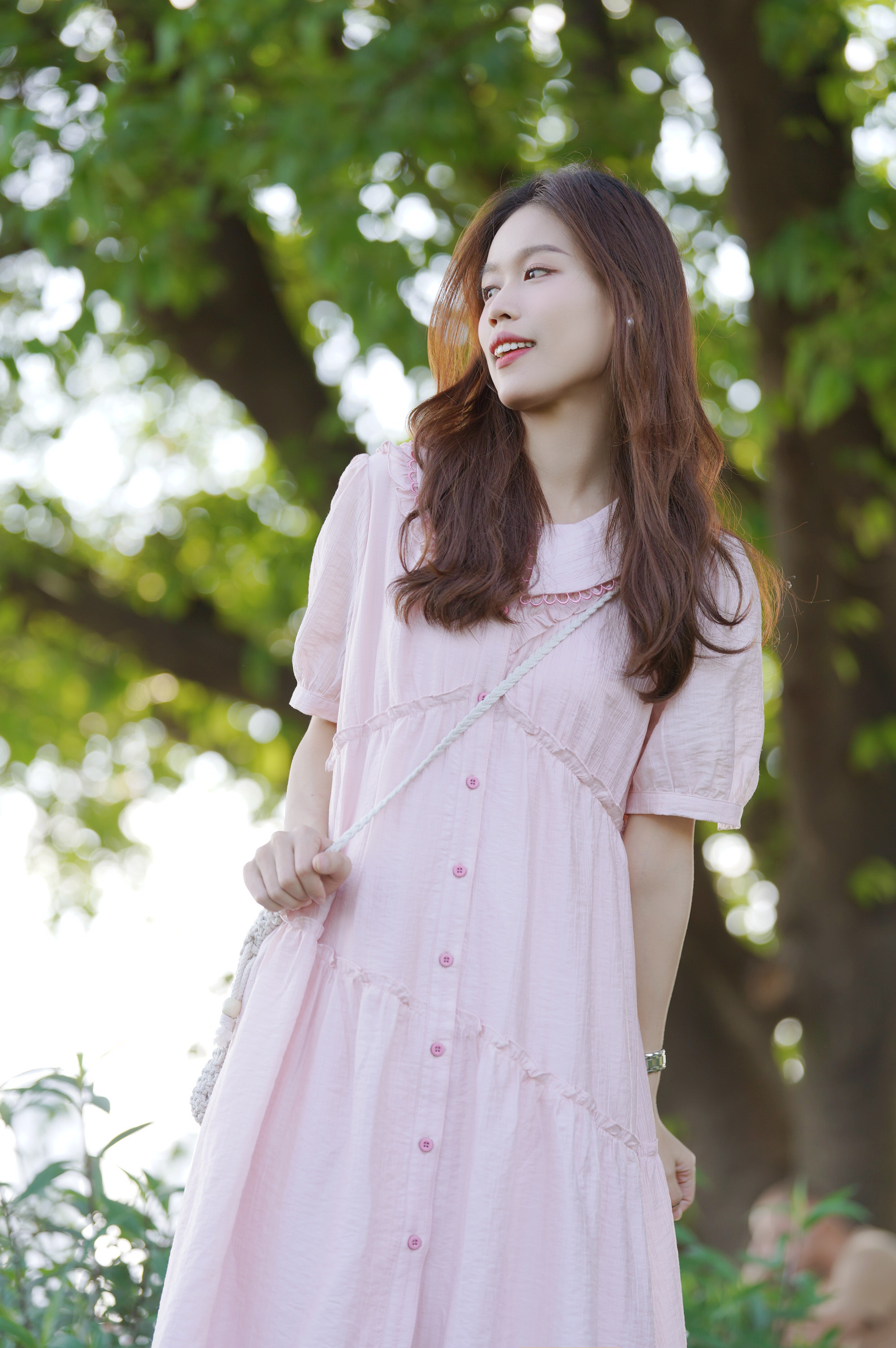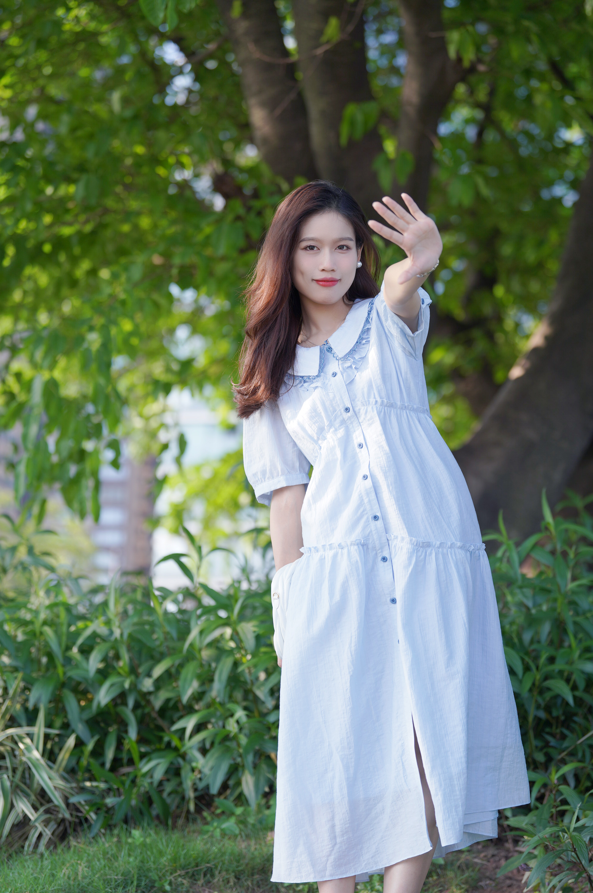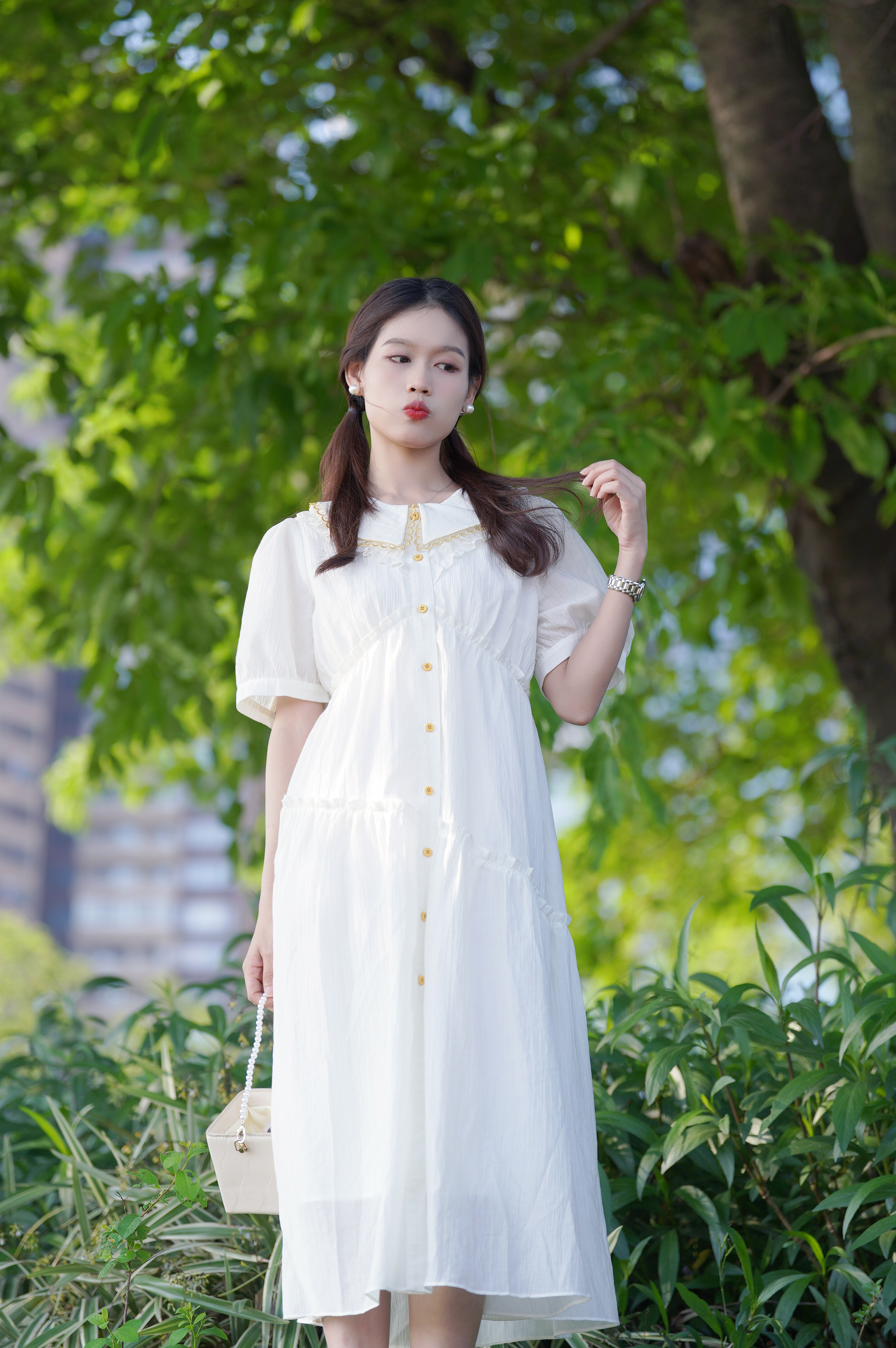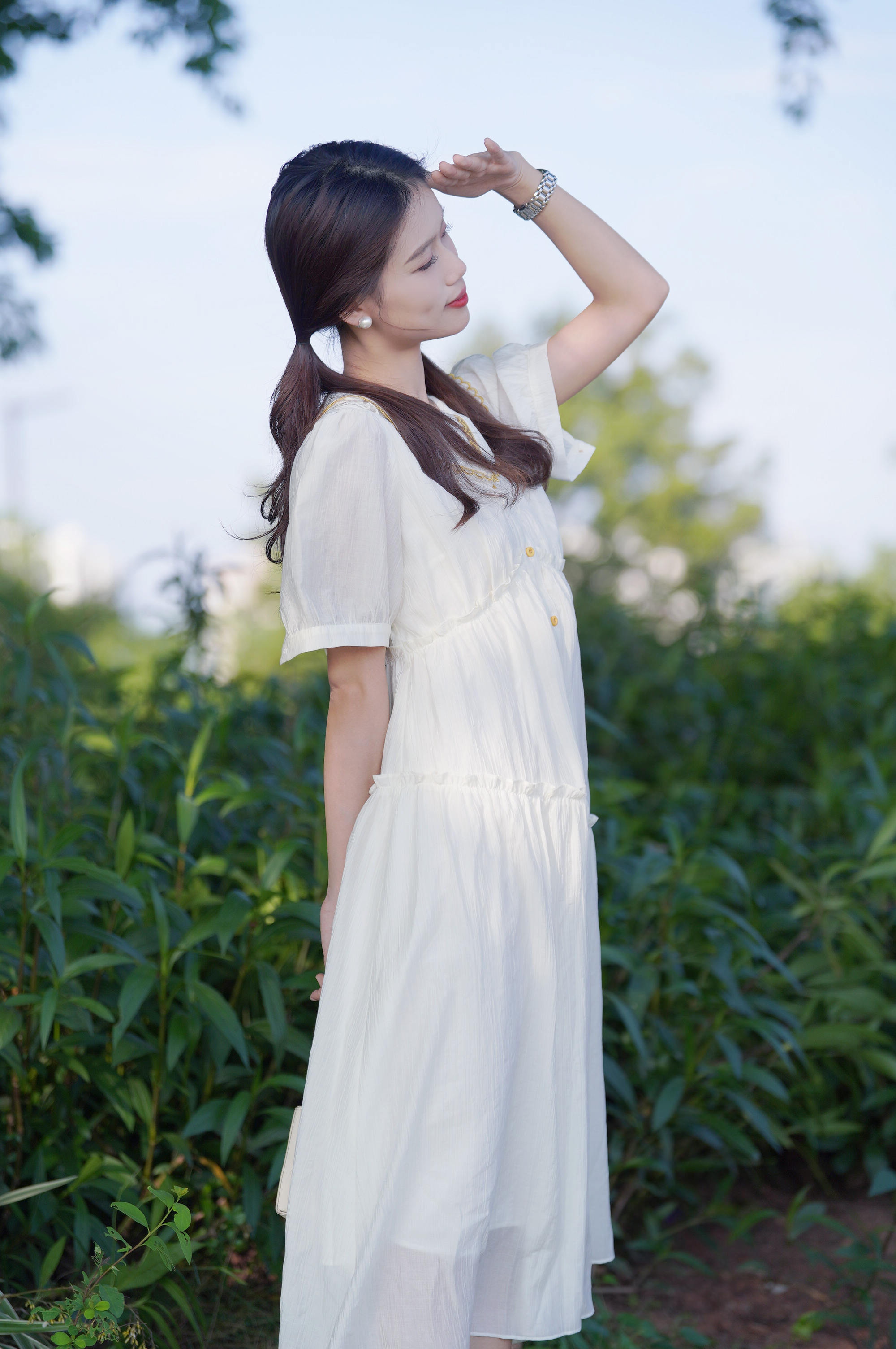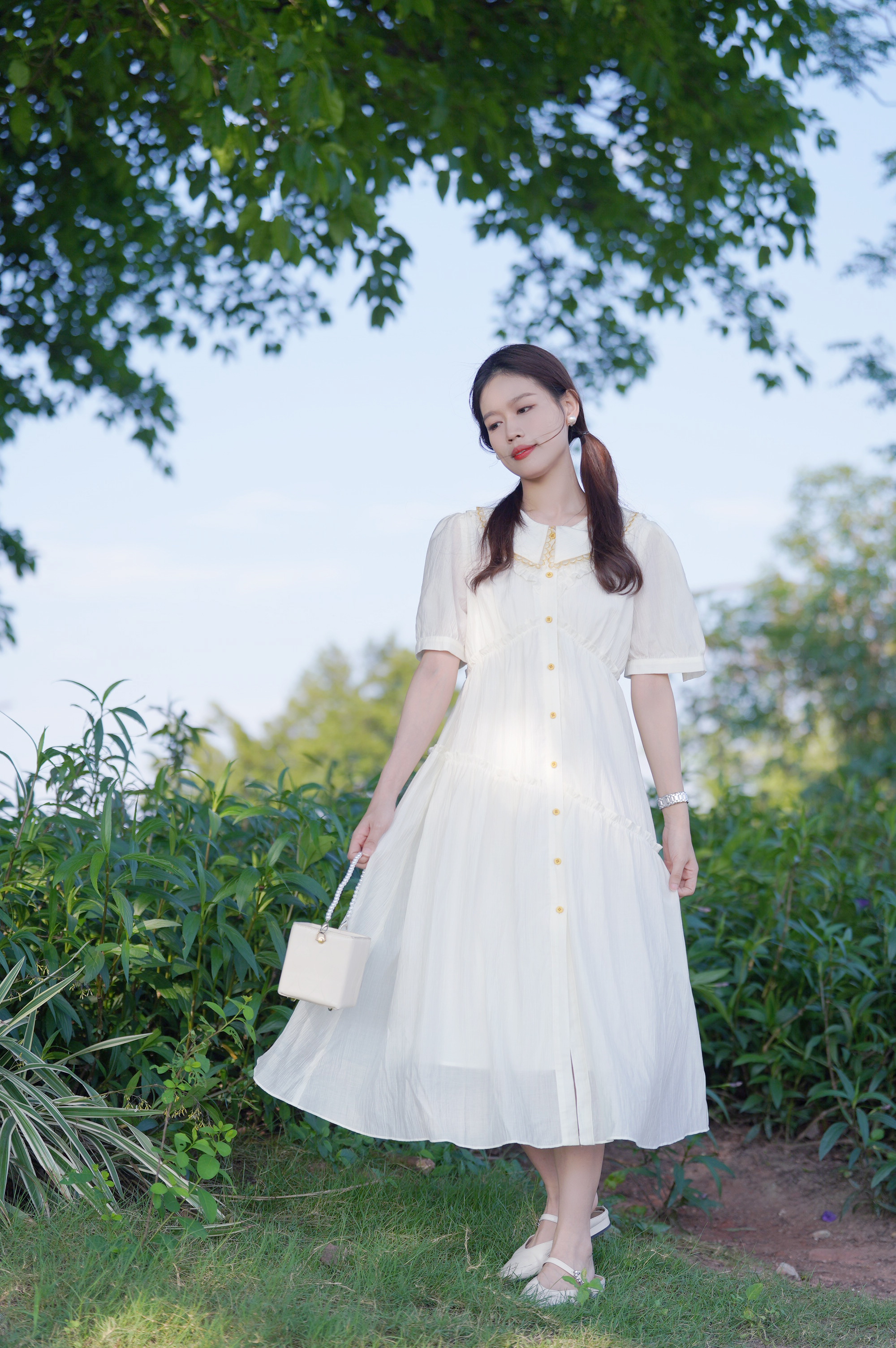两三事停在云边短袖款娃娃领春夏连衣裙法式风度假松弛感慵懒风