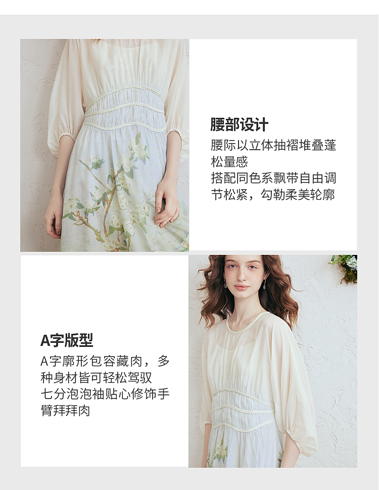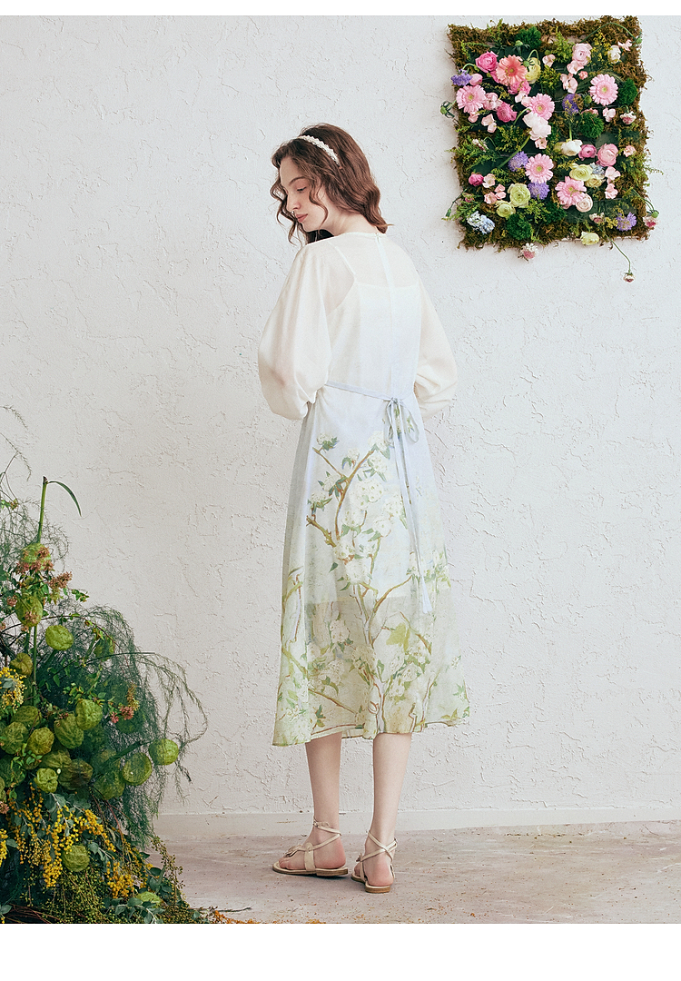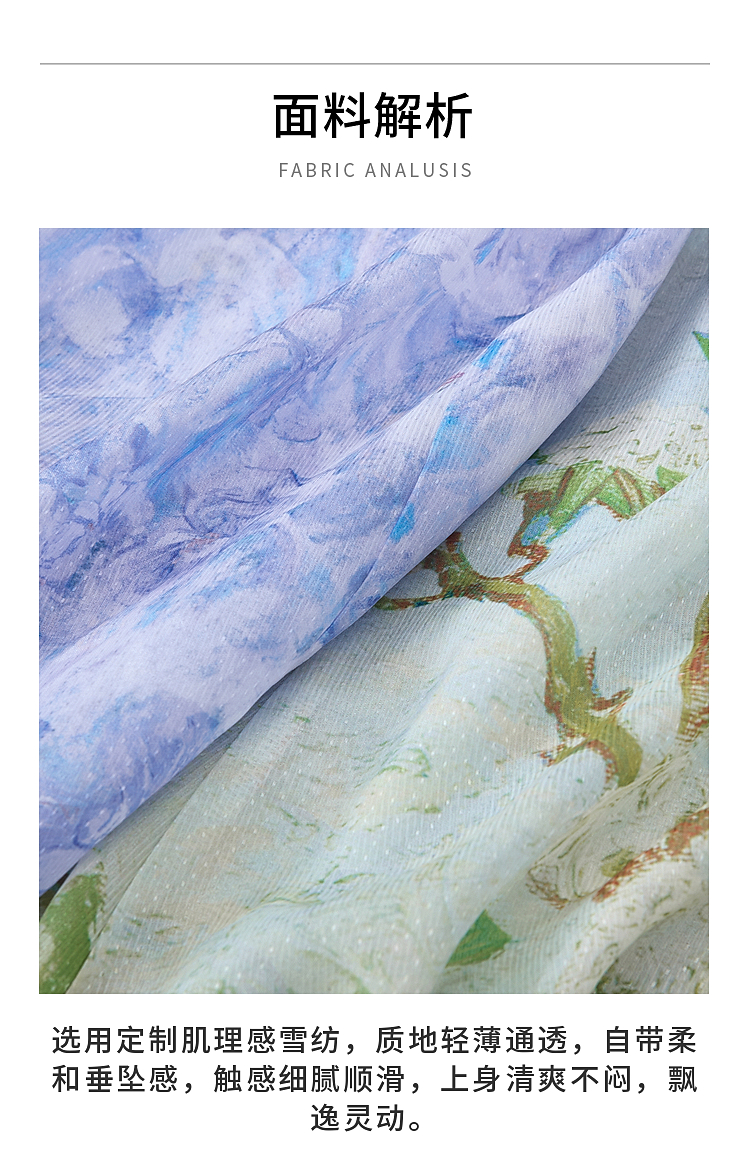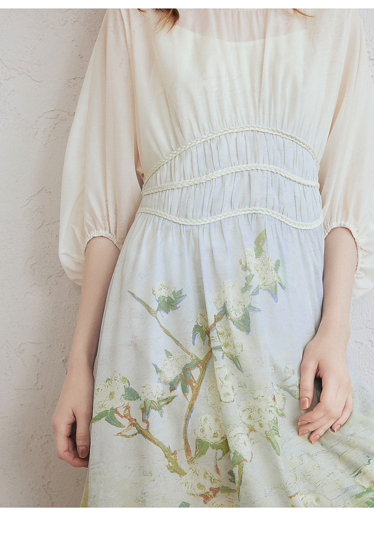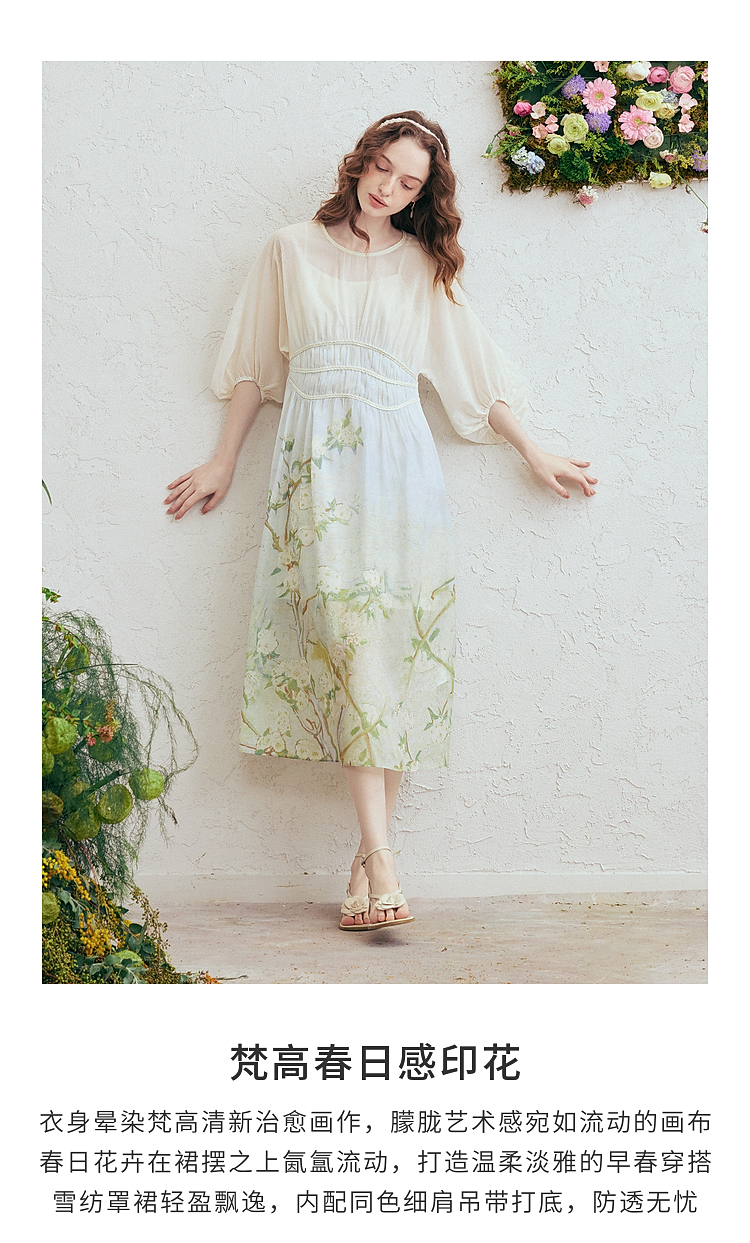 两三事梵高文艺 爱意漫游 2026春季新款绑带两件套印花雪纺连衣裙