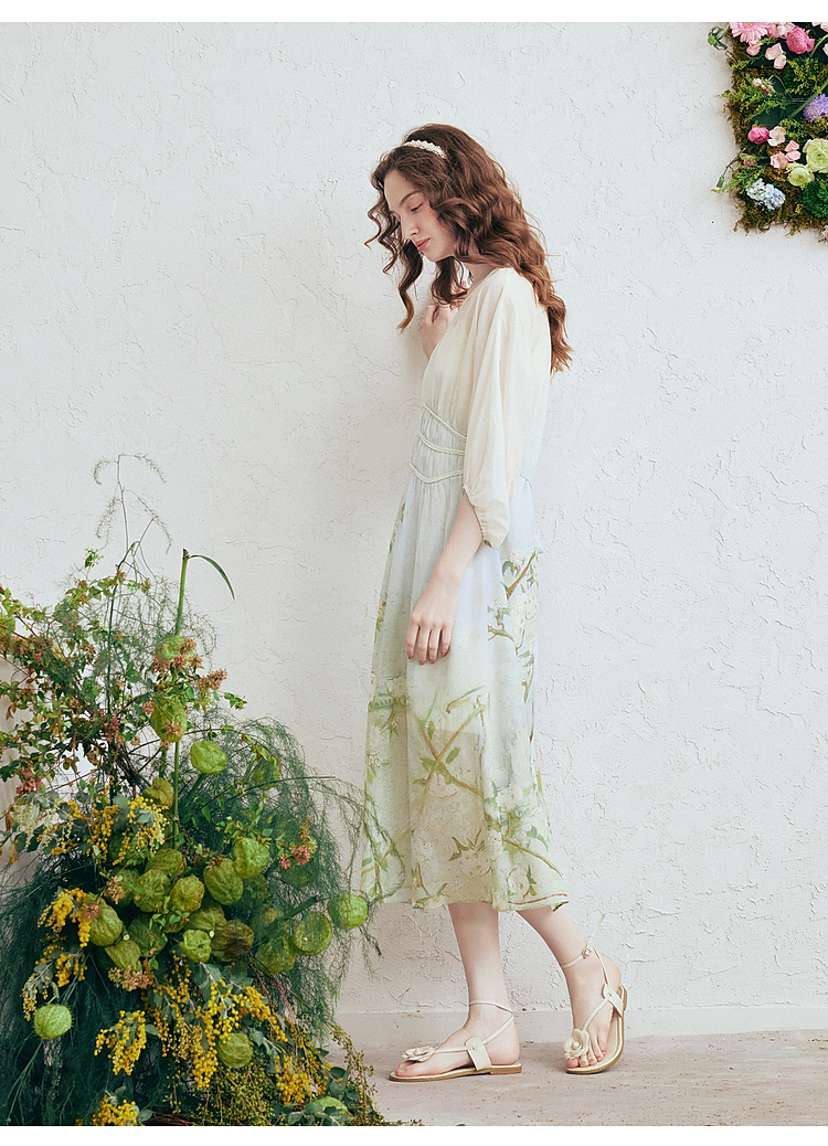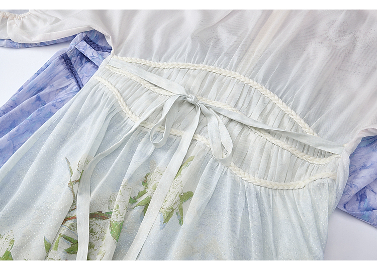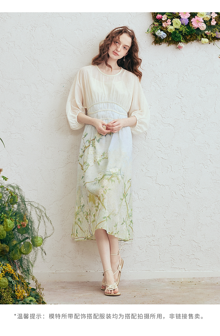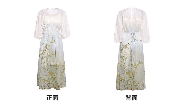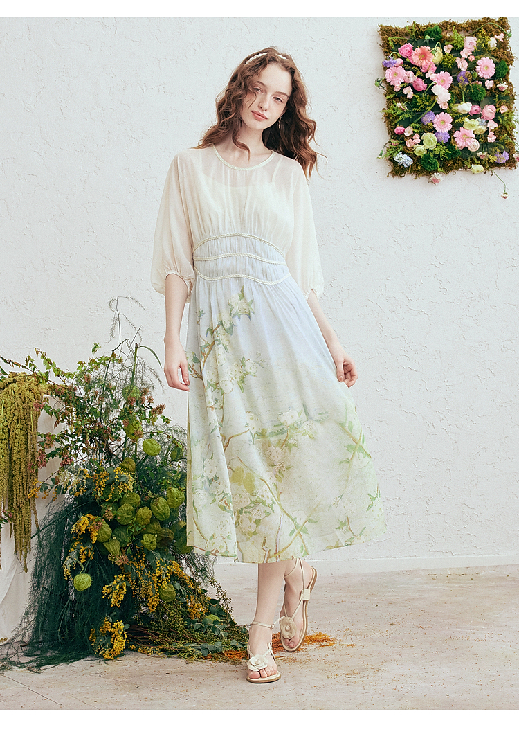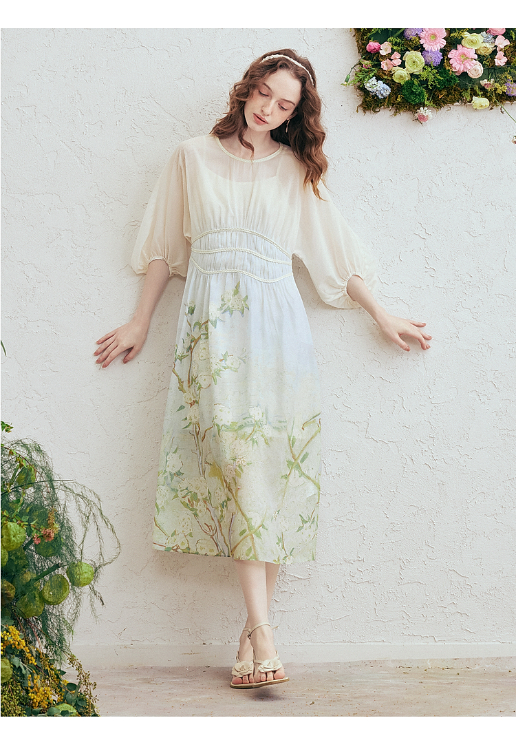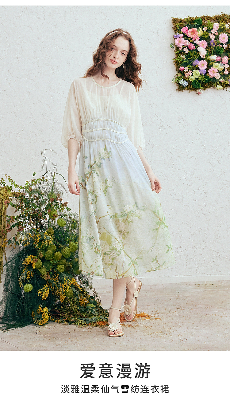 两三事梵高文艺 爱意漫游 2026春季新款绑带两件套印花雪纺连衣裙