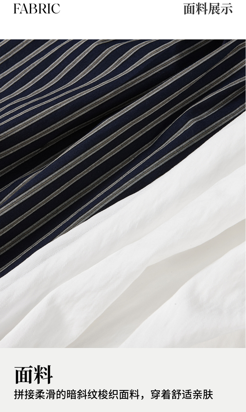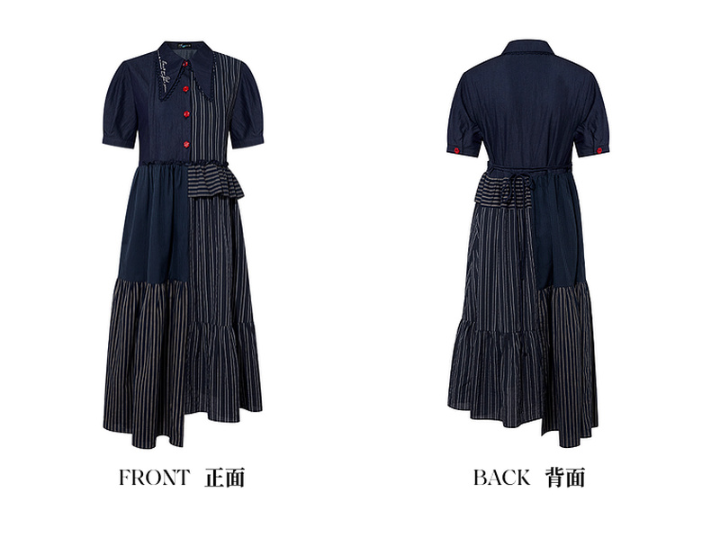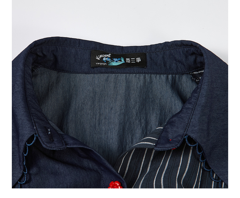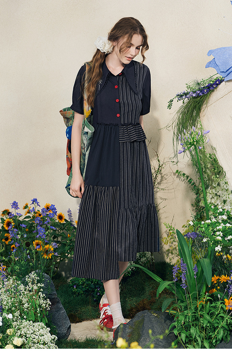 两三事梵高文艺暮夜星火2025夏季新款复古条纹拼接刺绣翻领连衣裙