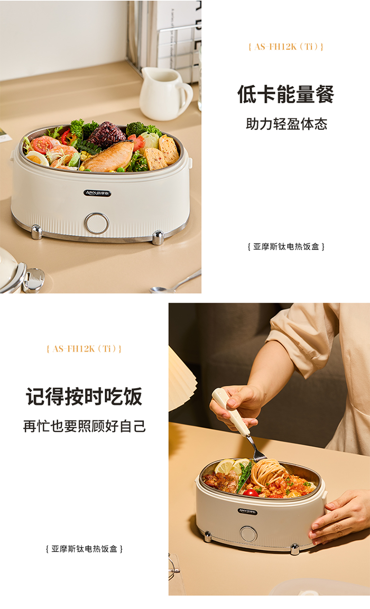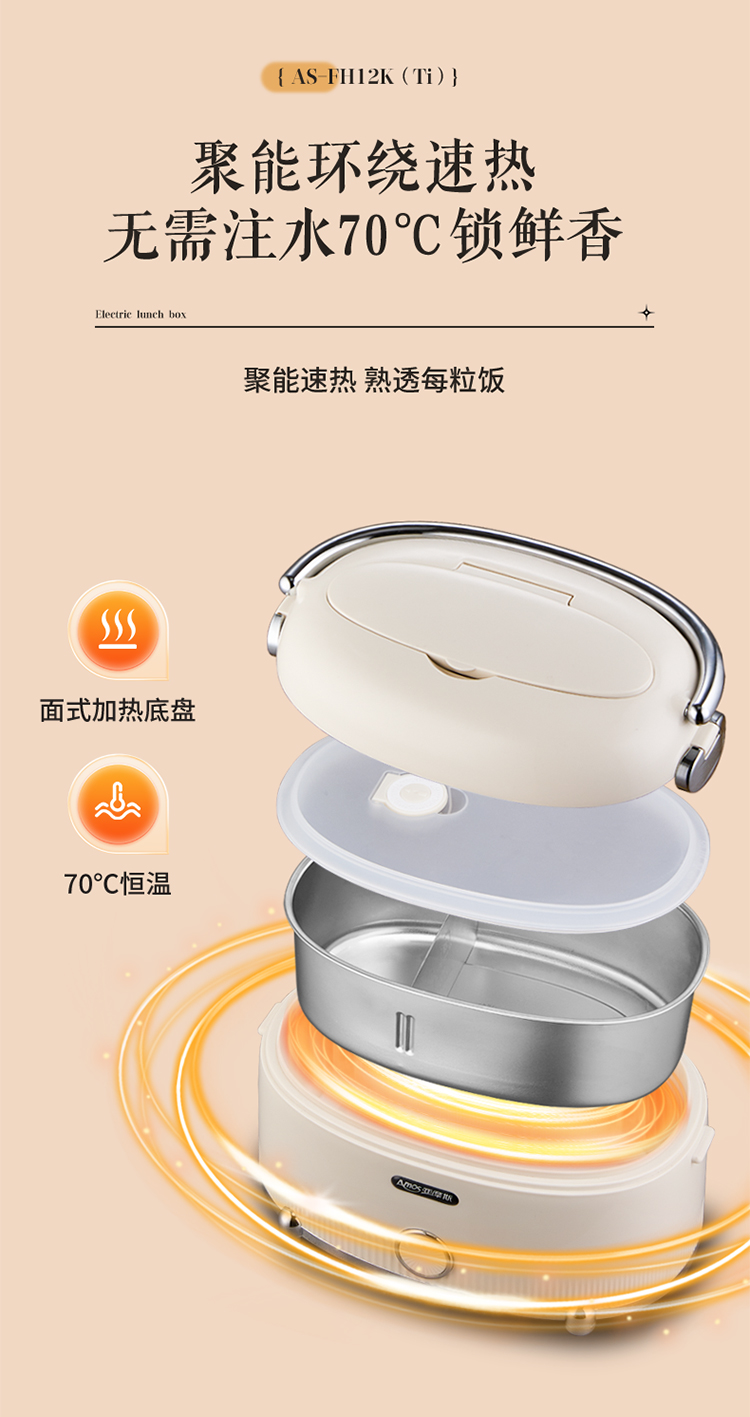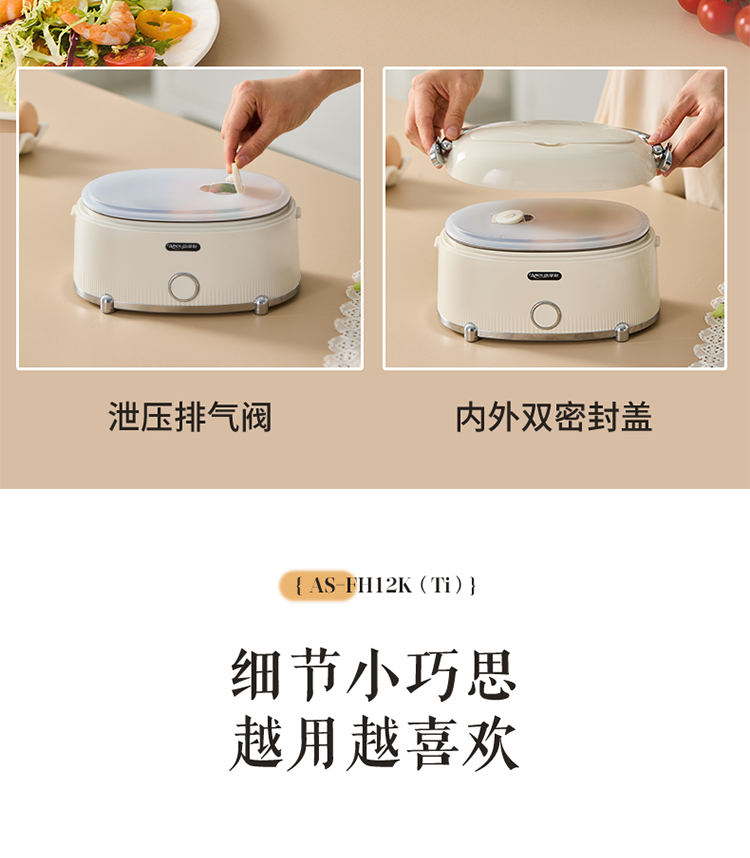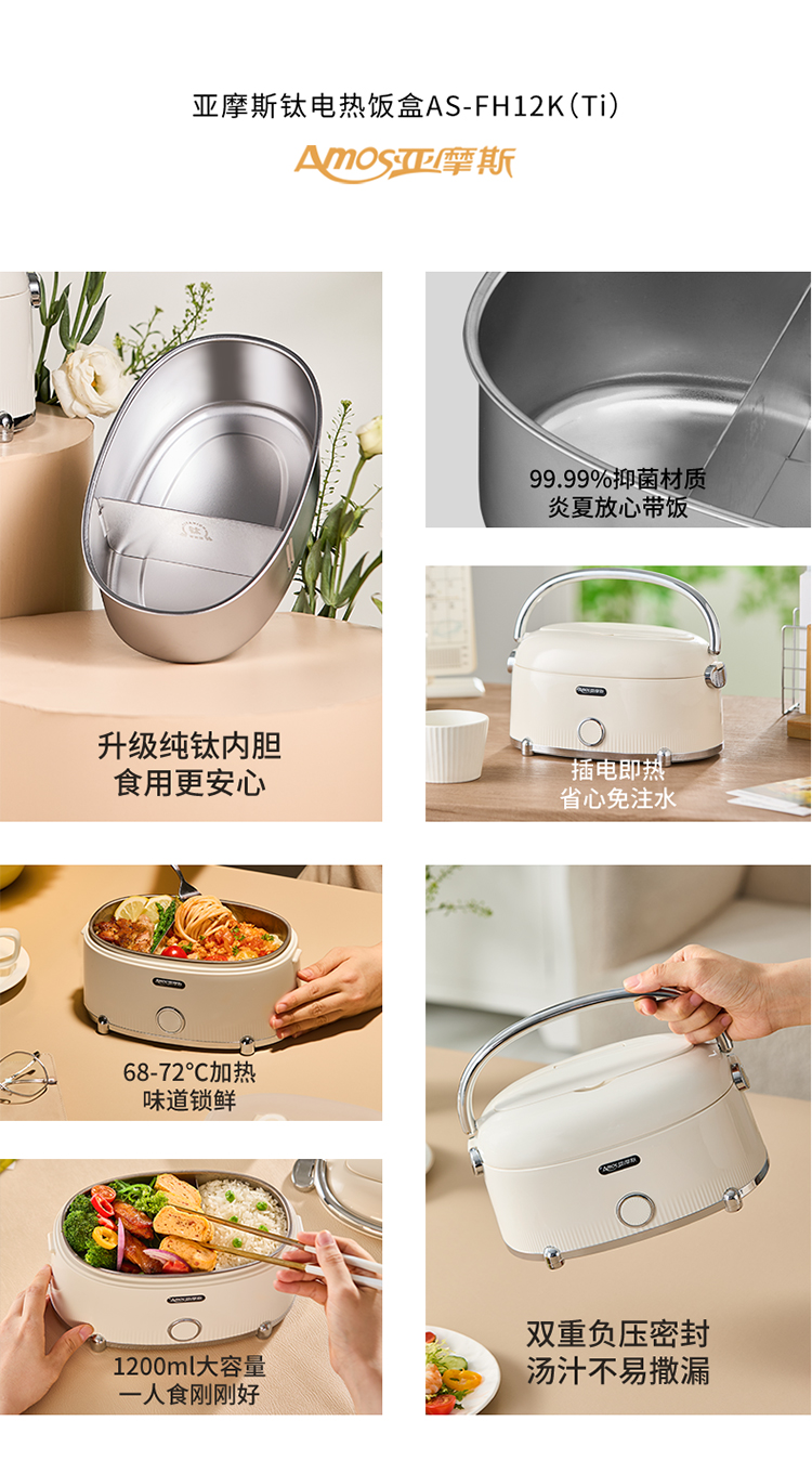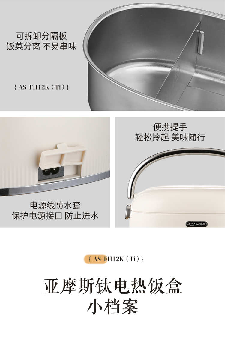 【纯钛内胆 免注水速热】亚摩斯电子饭盒AS-FH12K(Ti)