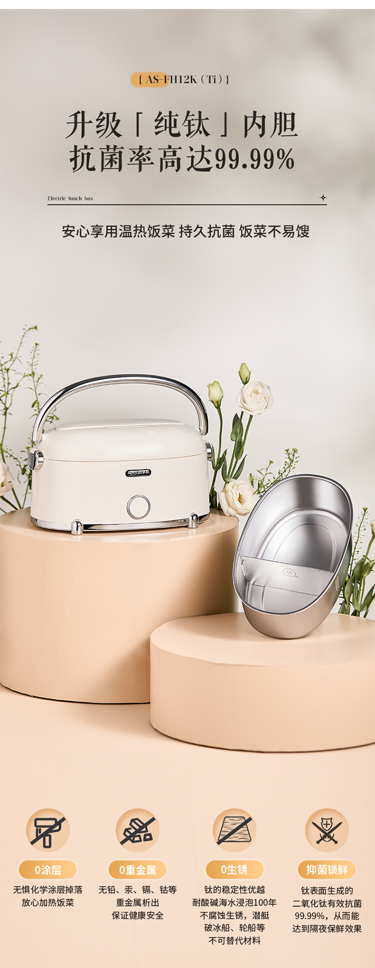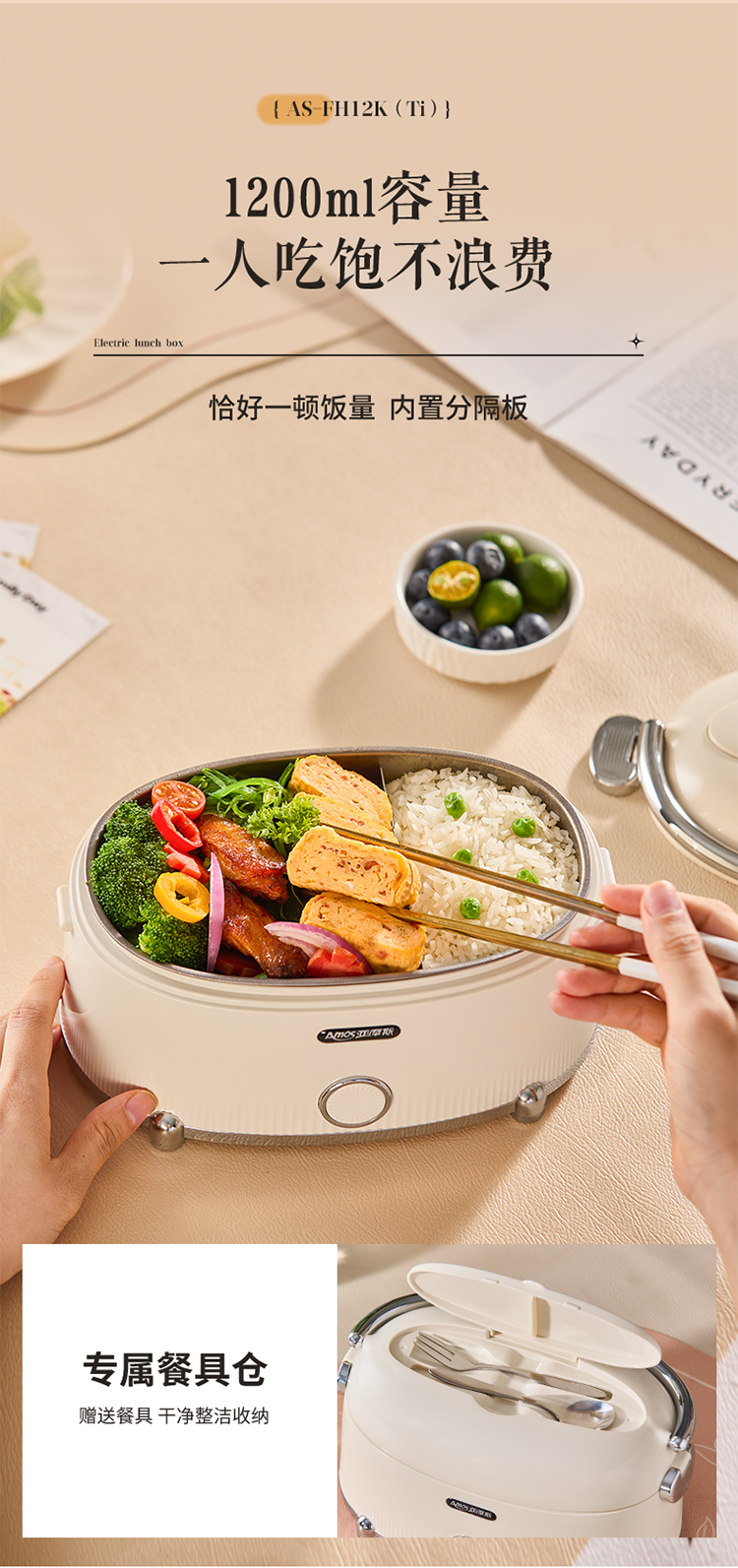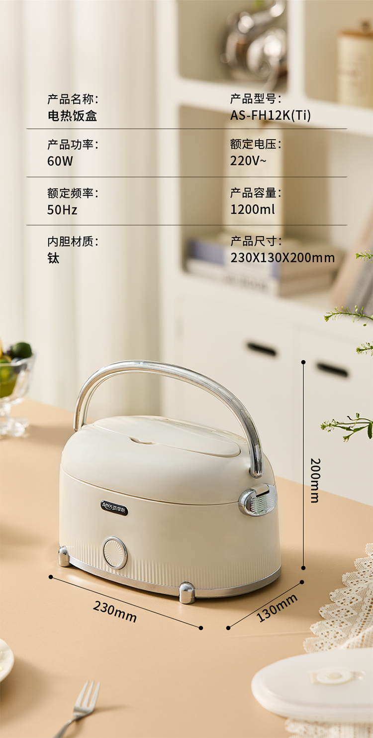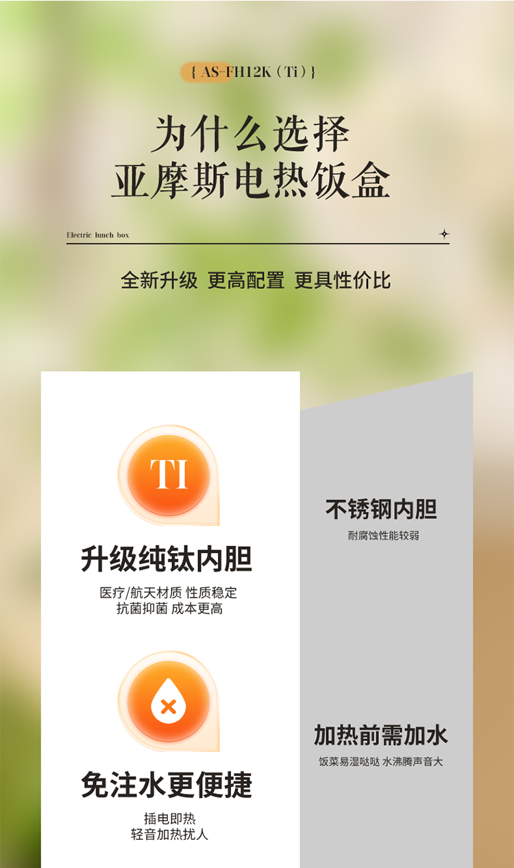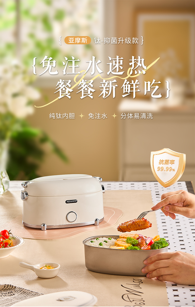 【纯钛内胆 免注水速热】亚摩斯电子饭盒AS-FH12K(Ti)