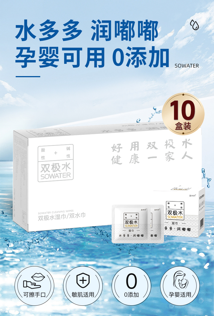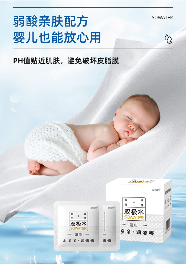 【会员商城】双极水湿巾双水巾0酒精安全不刺激孕童可用12包/盒独立装10盒装