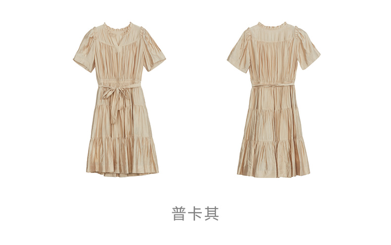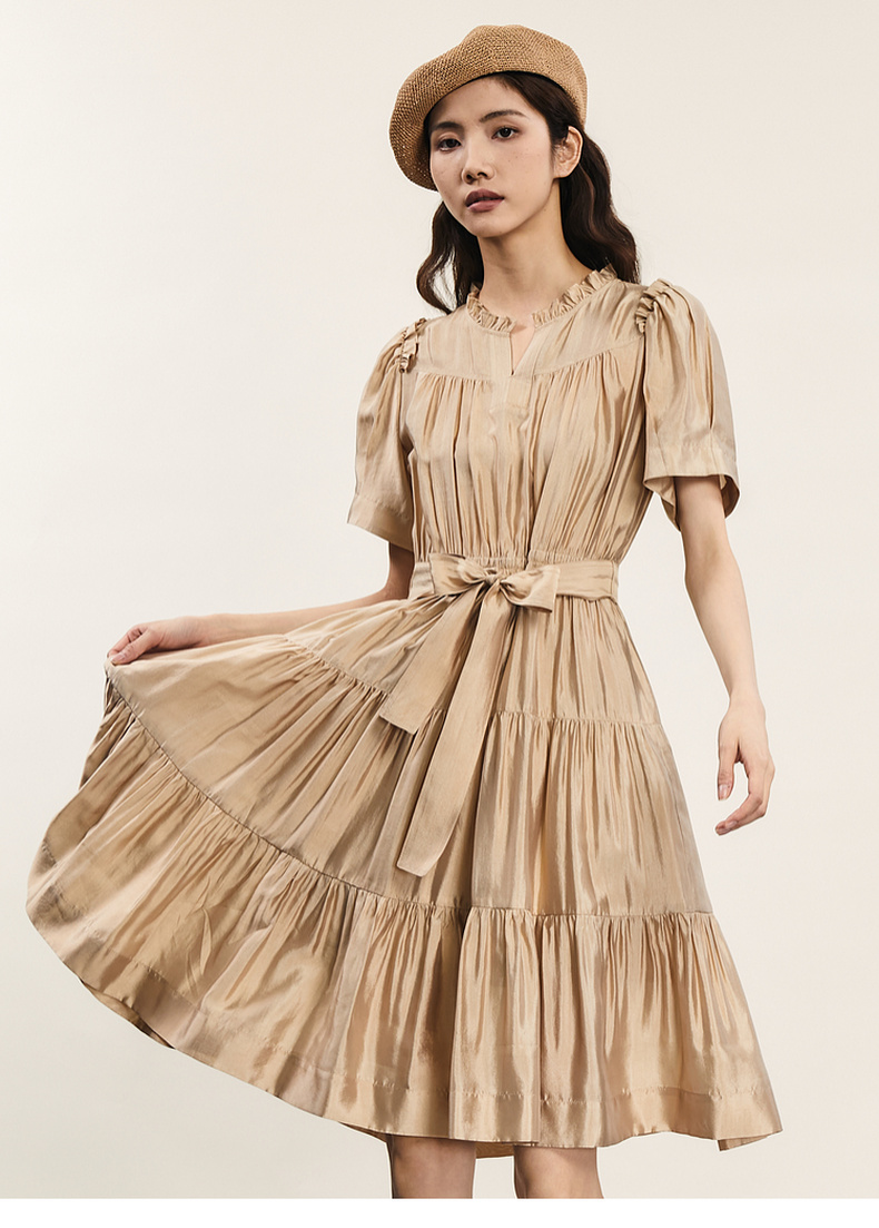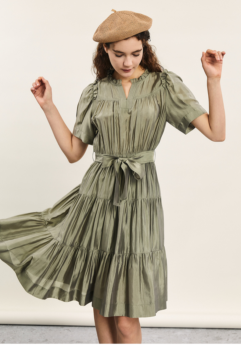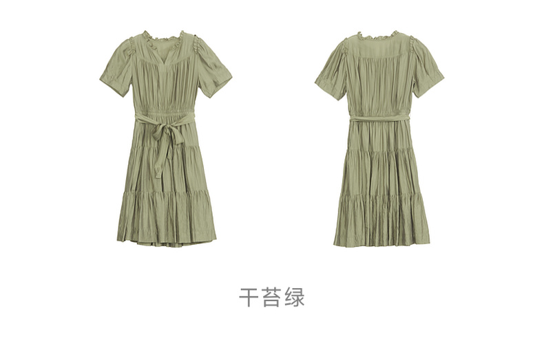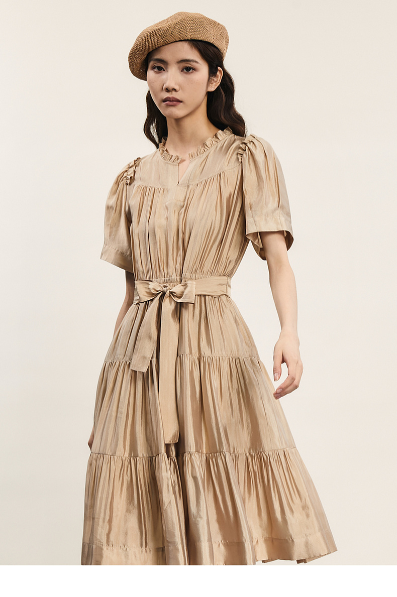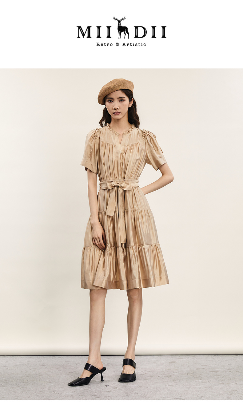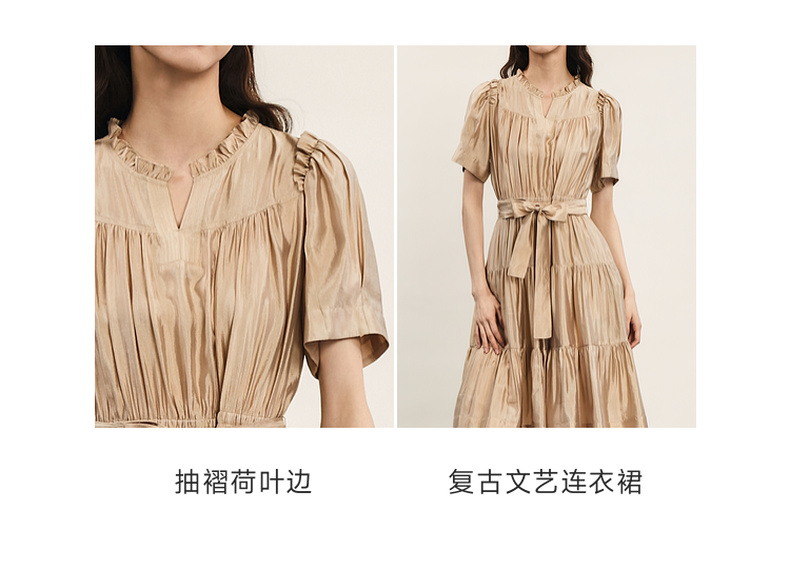 谜底荷叶边连衣裙2024夏季新品复古文艺风中长裙配腰带242ML0564